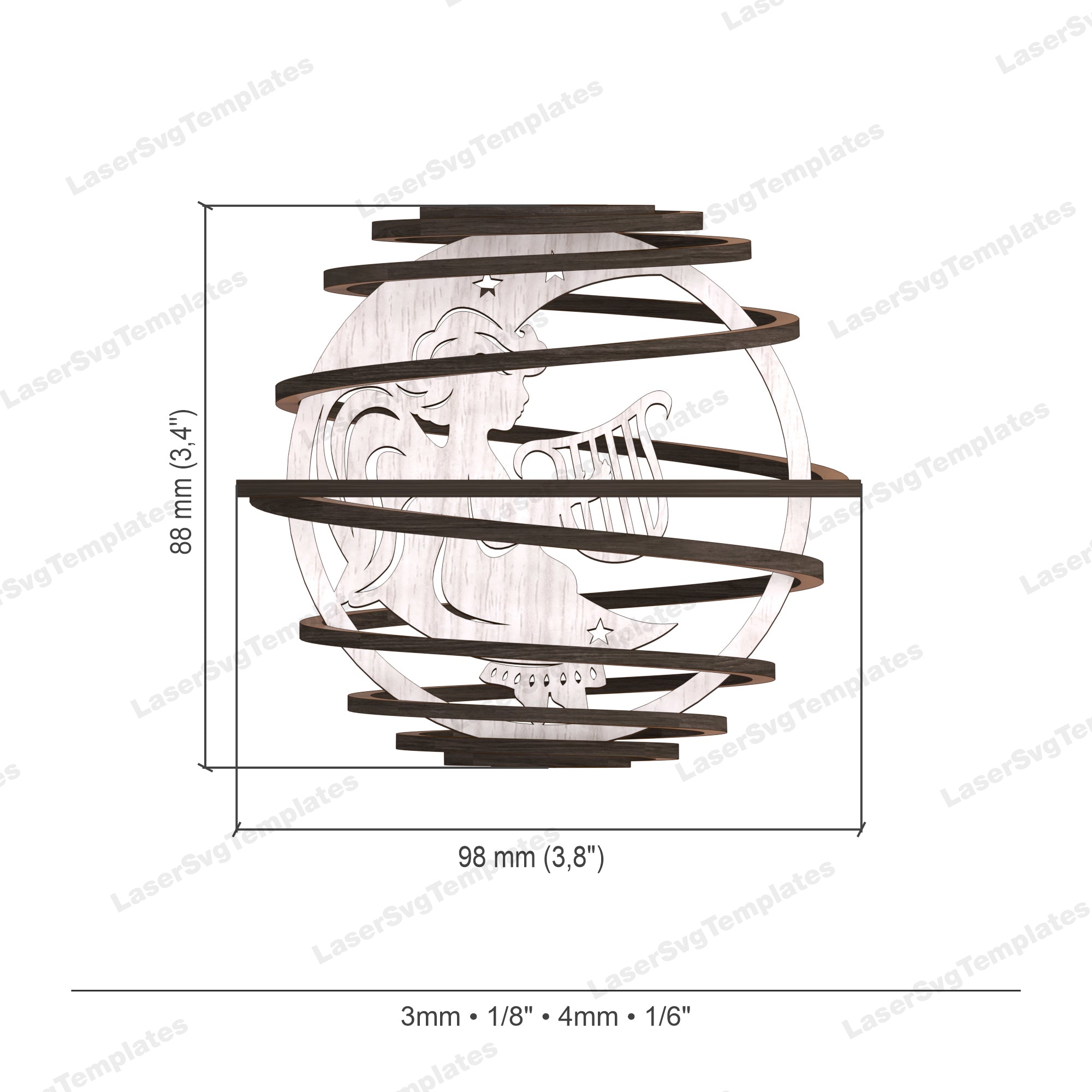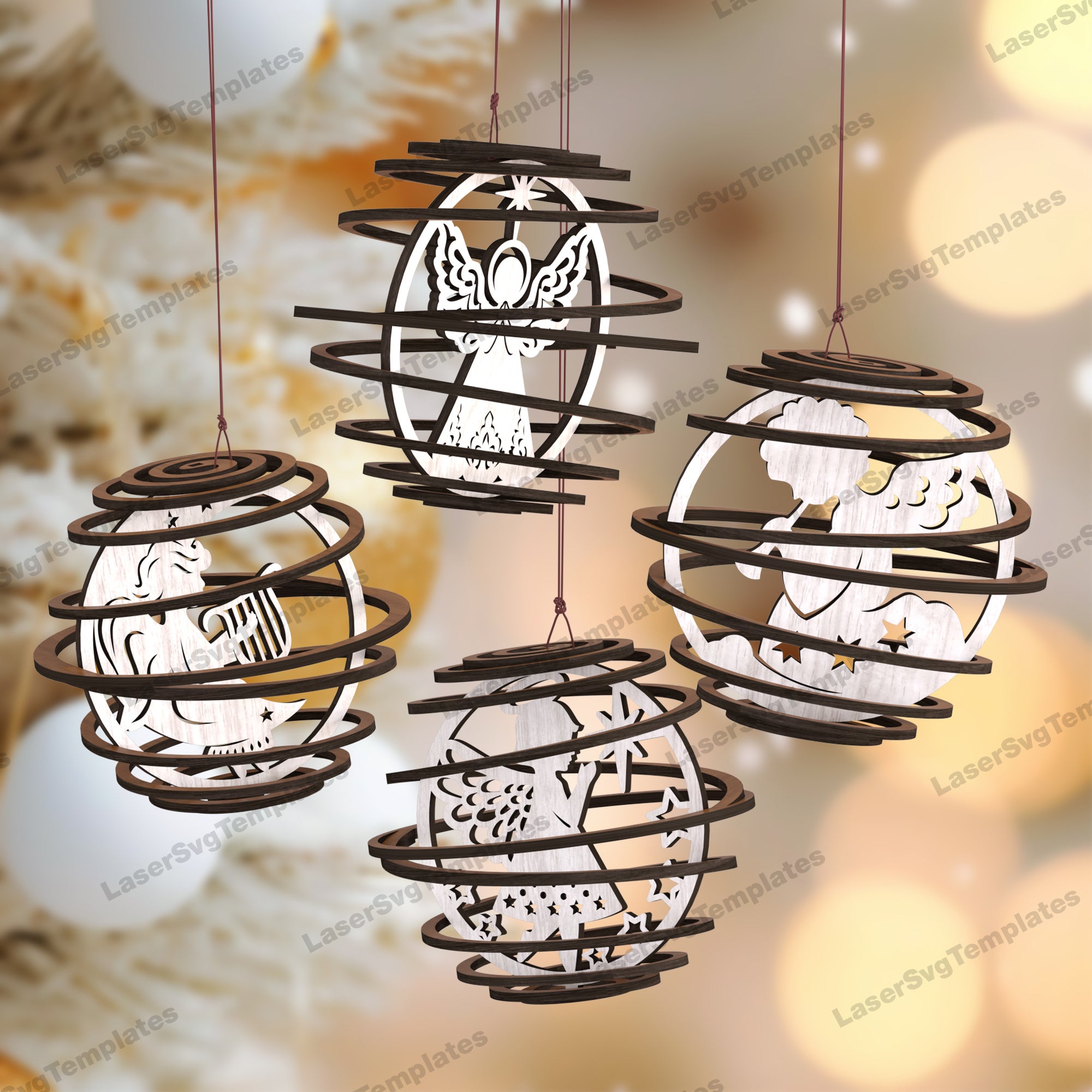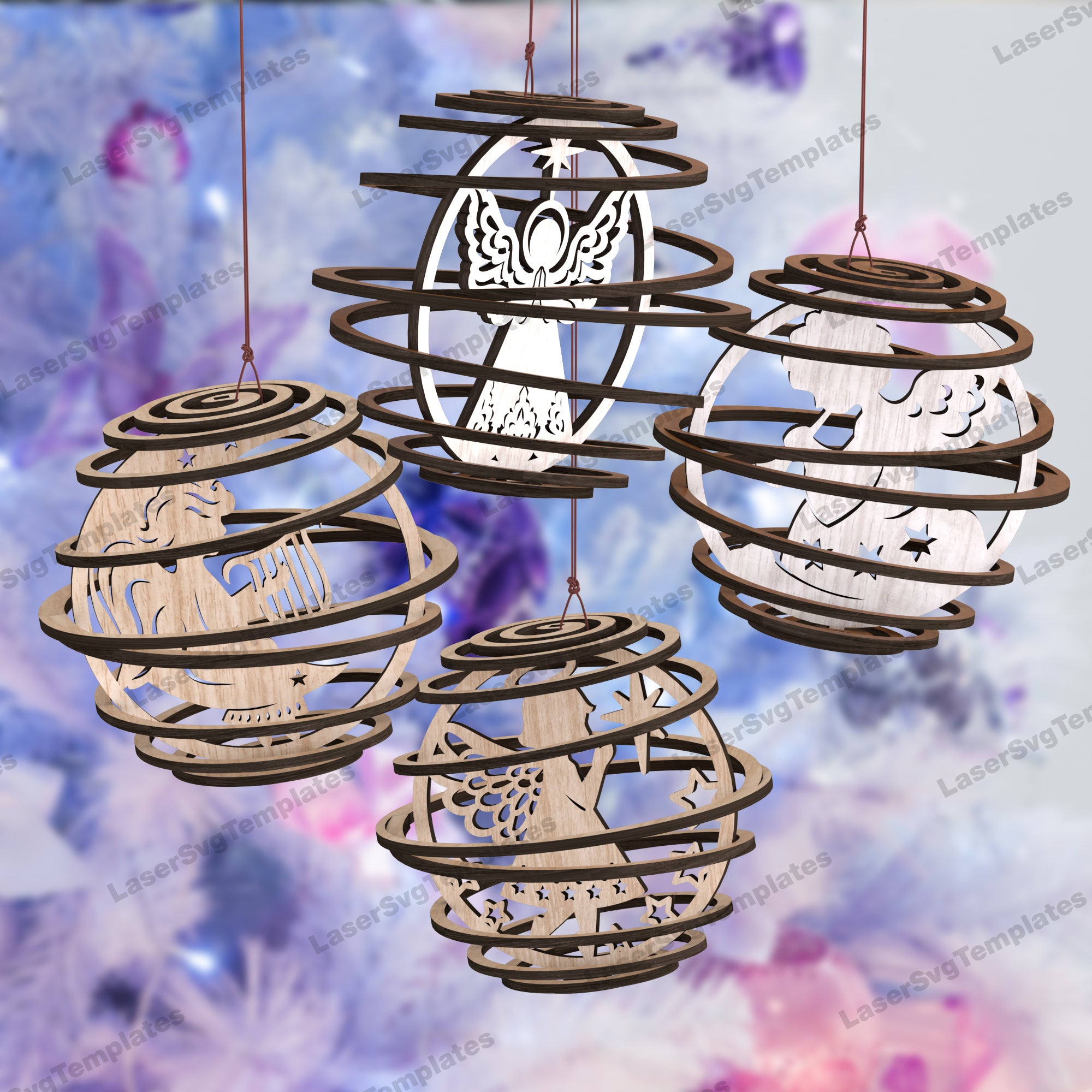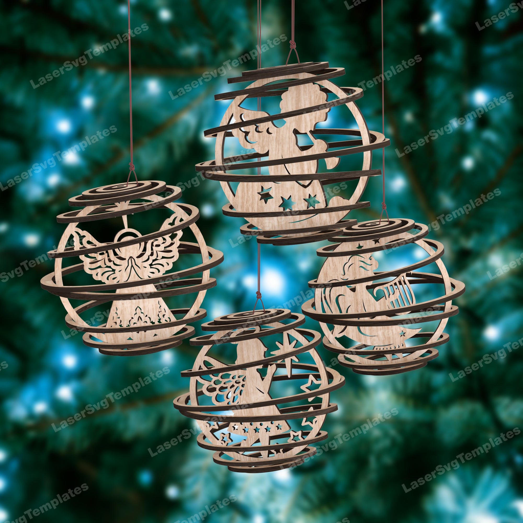 Spiral Angel Christmas tree ball ornaments laser cut svg file