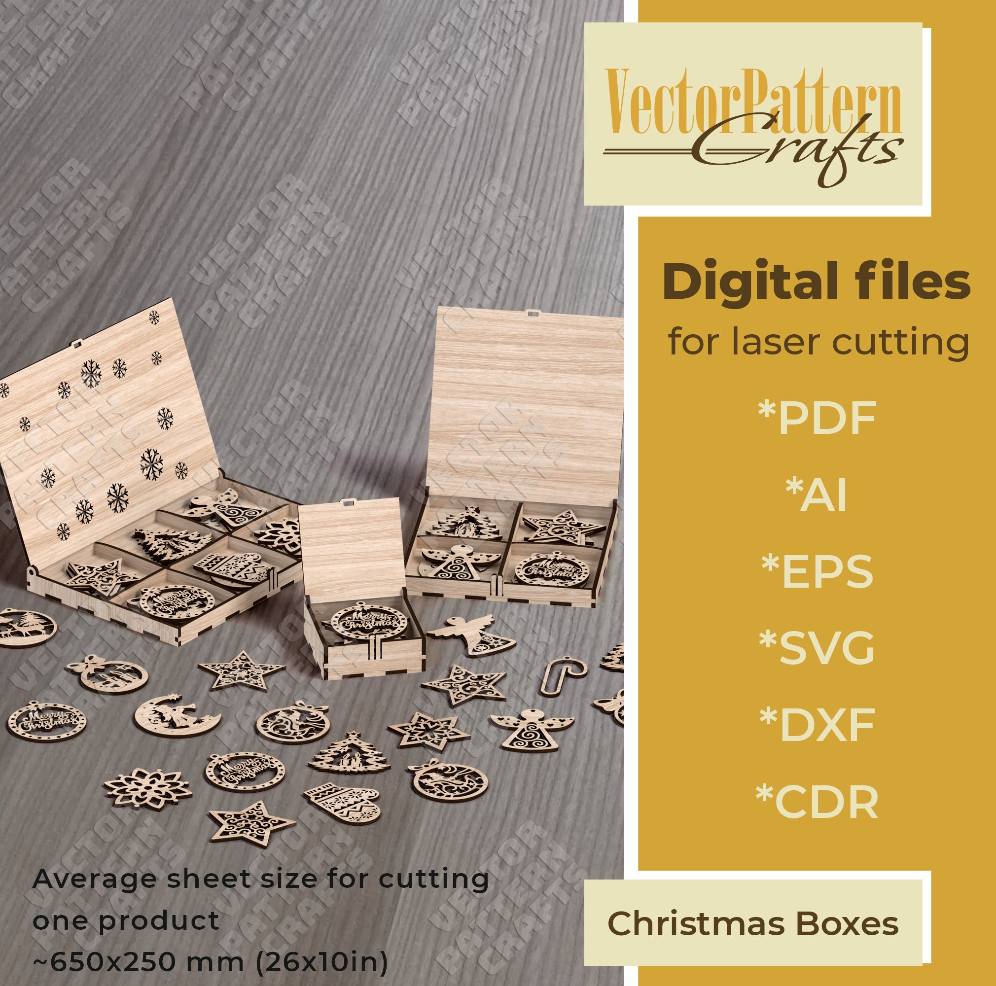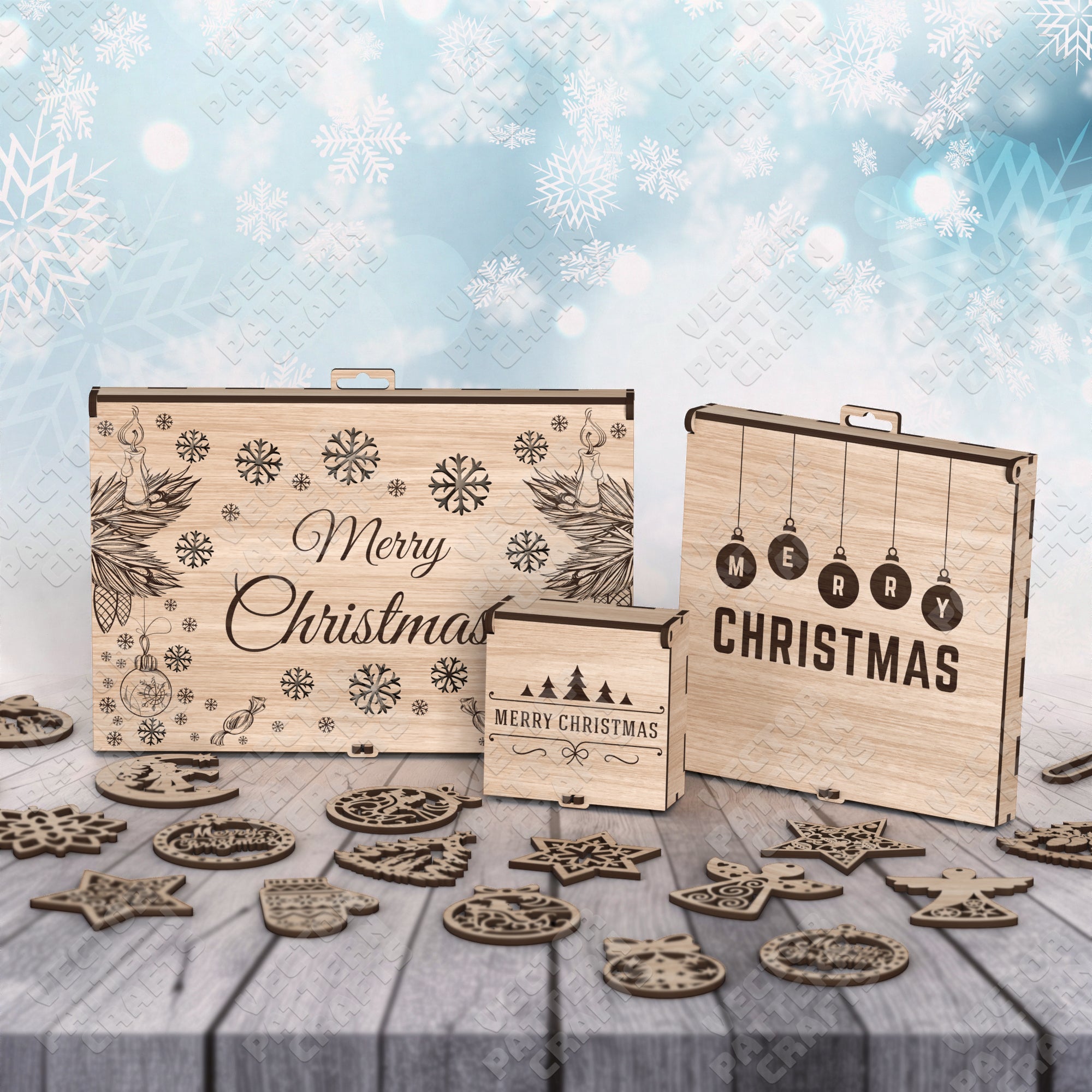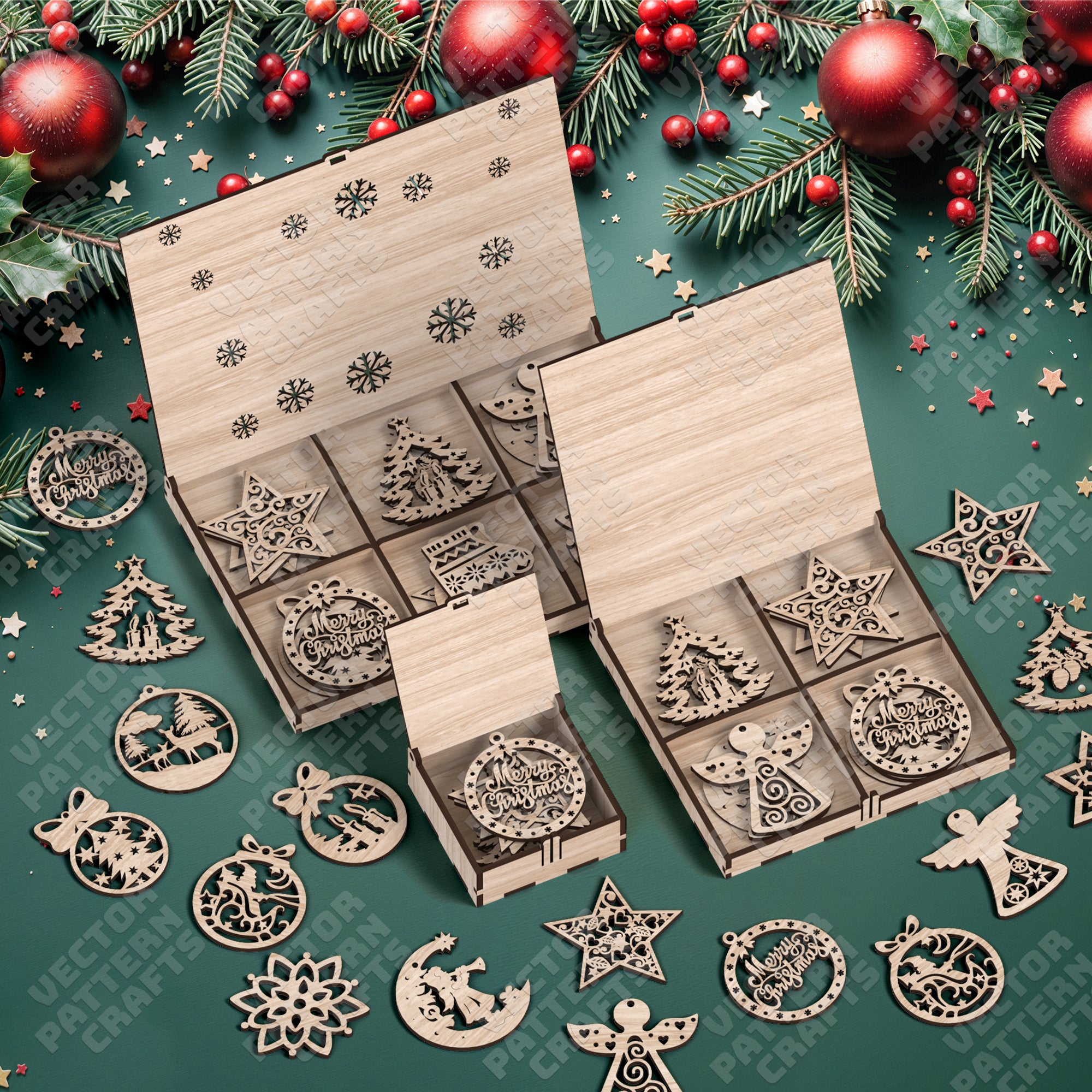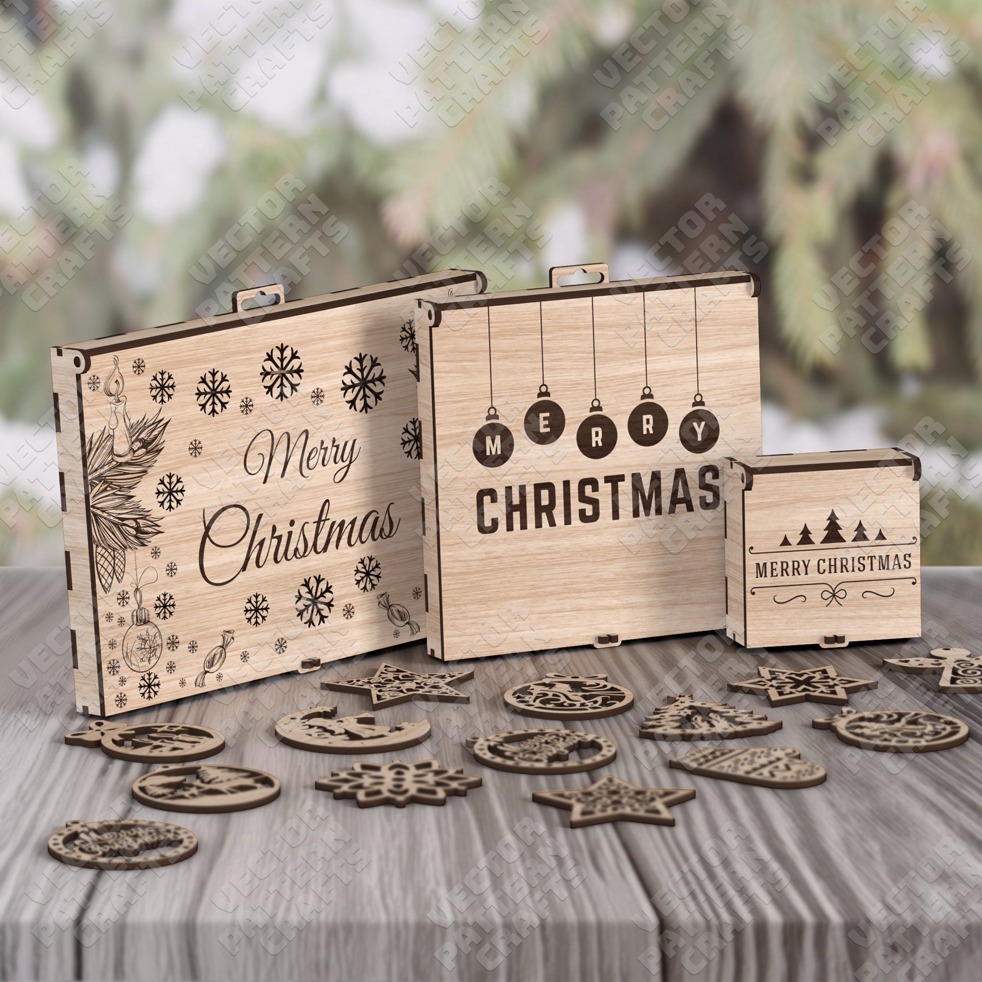 Christmas tree ornaments gift boxes bundle laser cut svg file