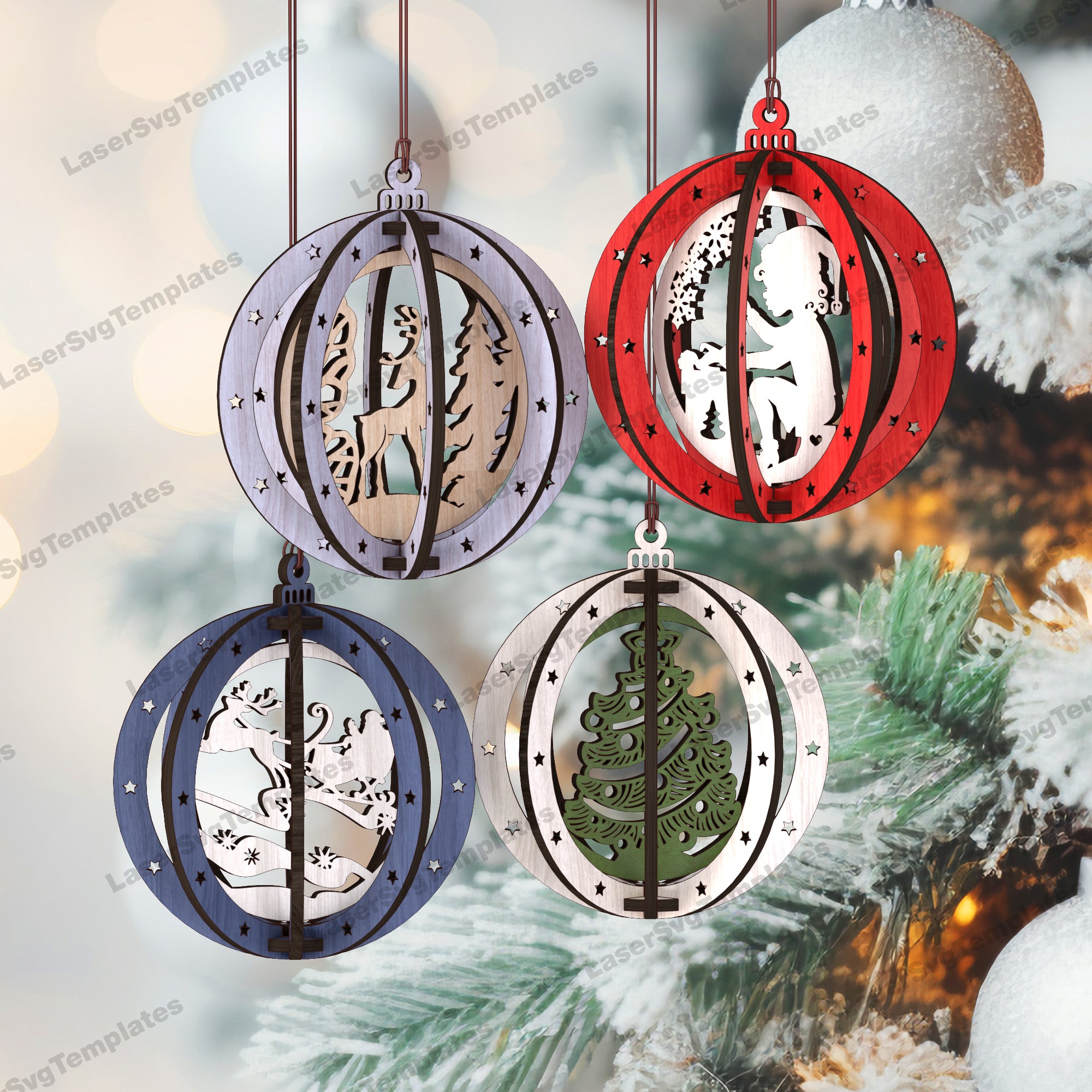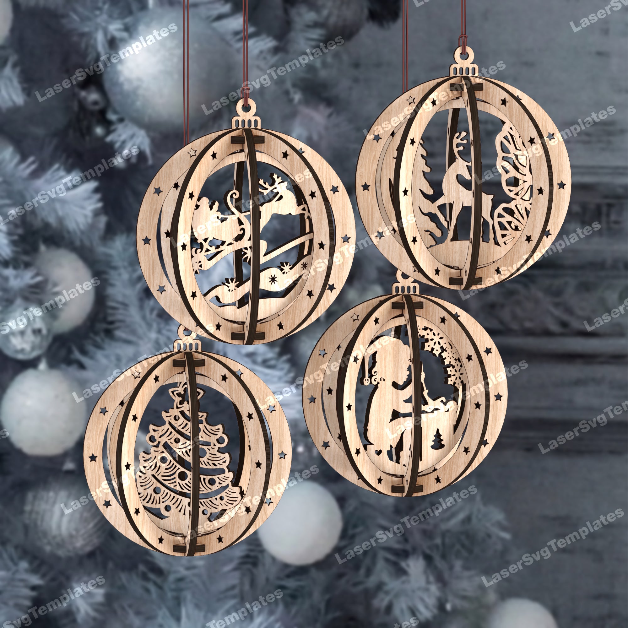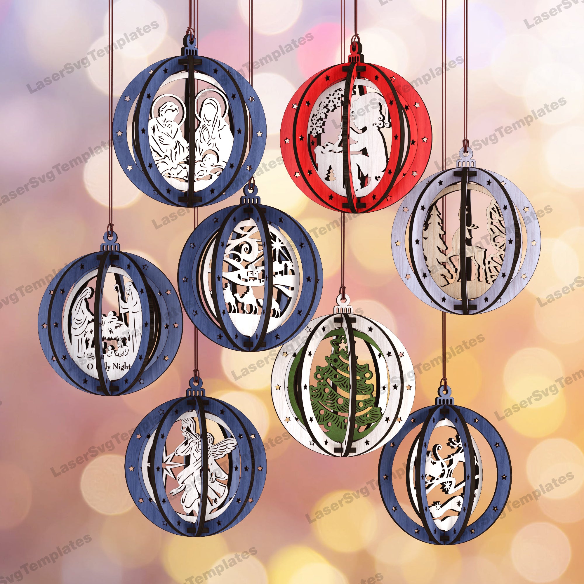 Christmas tree ball ornaments 8 bundle laser cut svg file