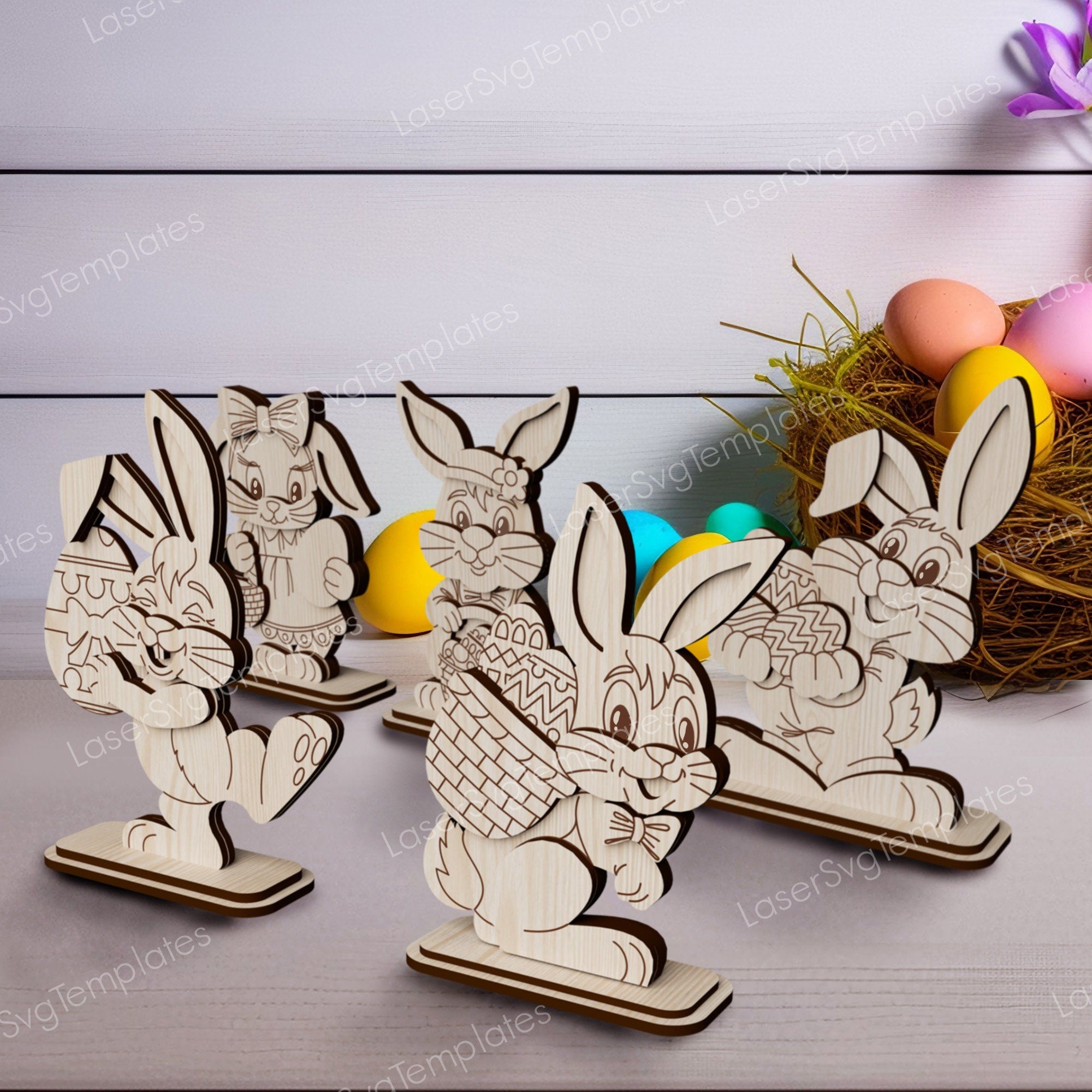 Easter bunny standing table decoration 5 bundle laser cut svg file