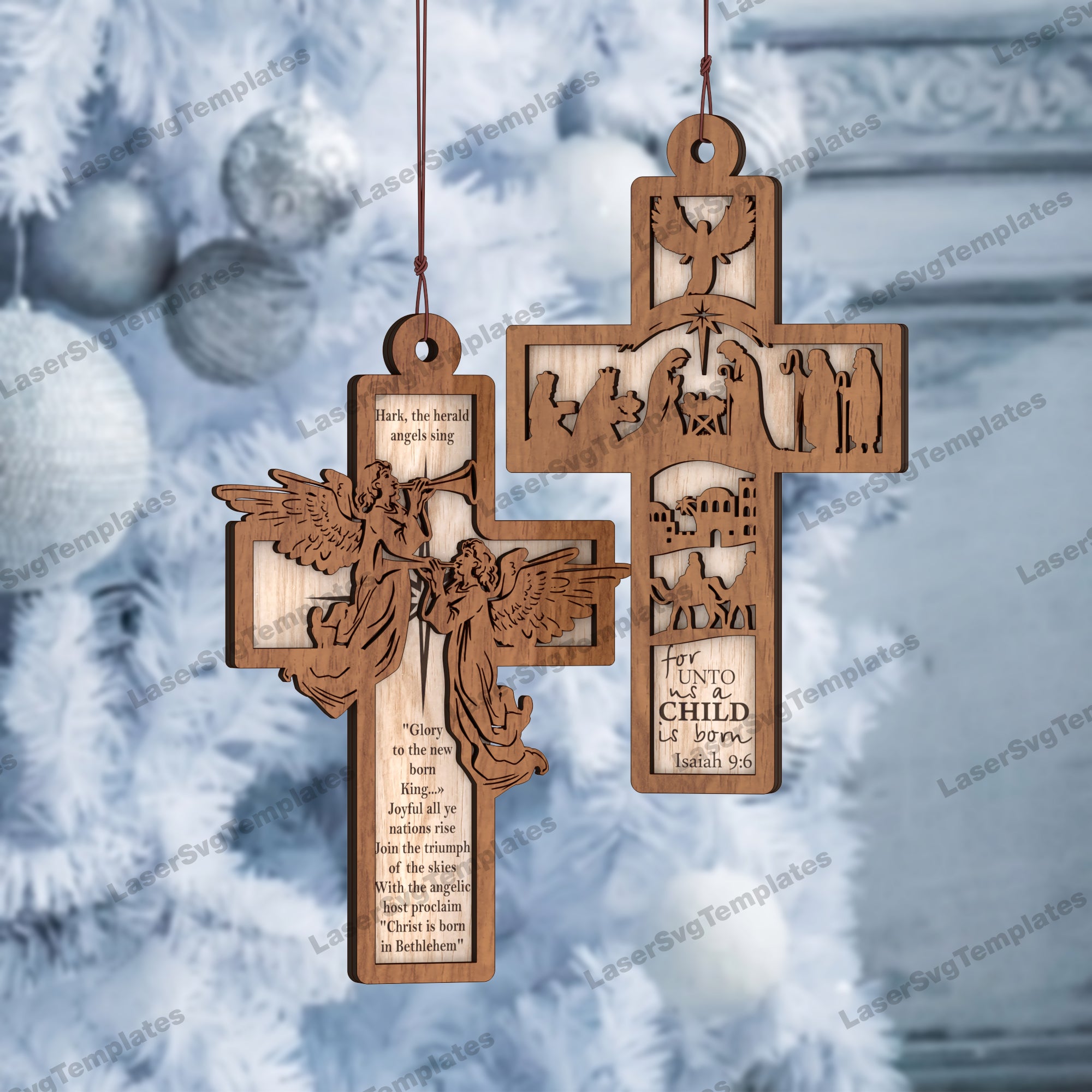 — Nativity tree cross ornaments bundle laser cut svg file