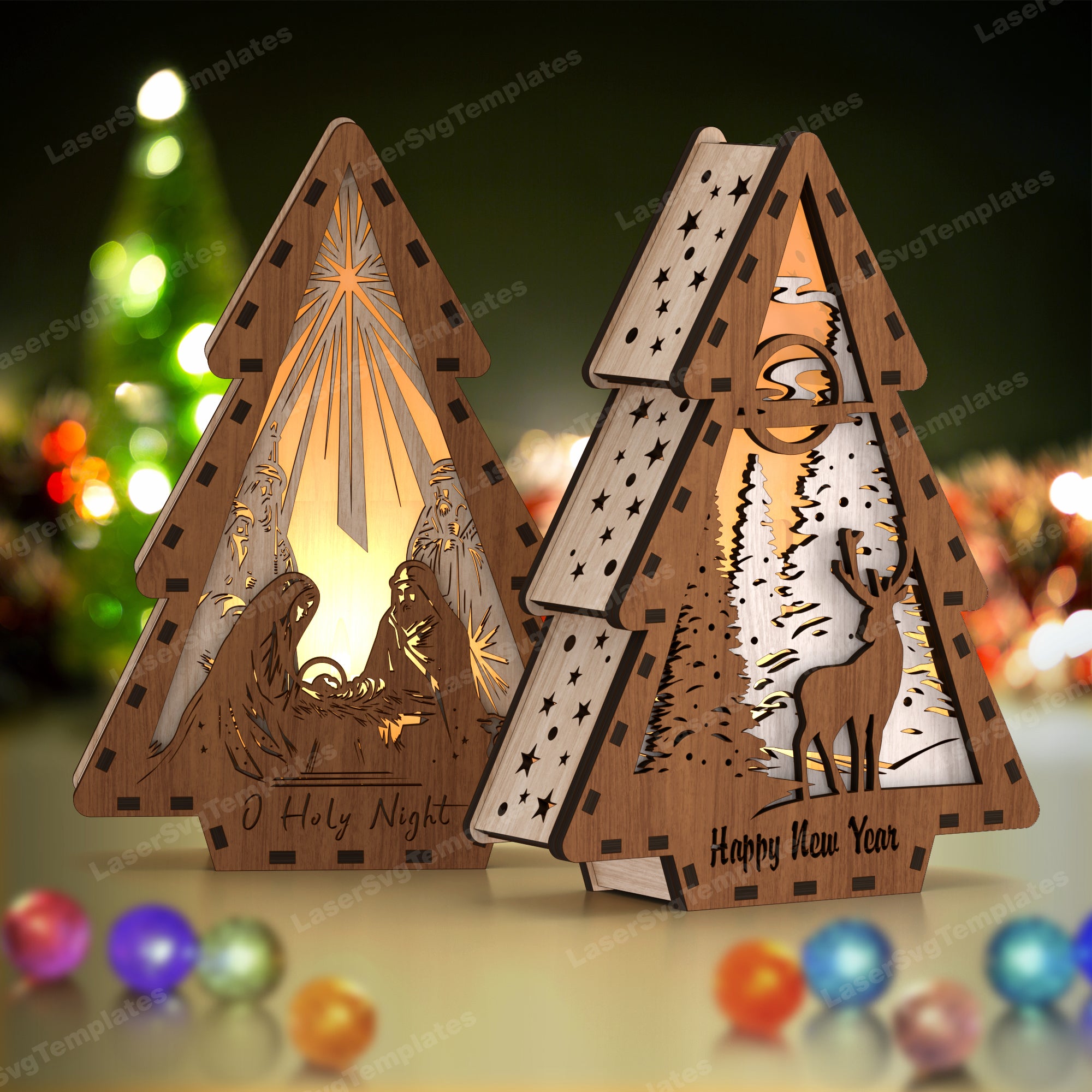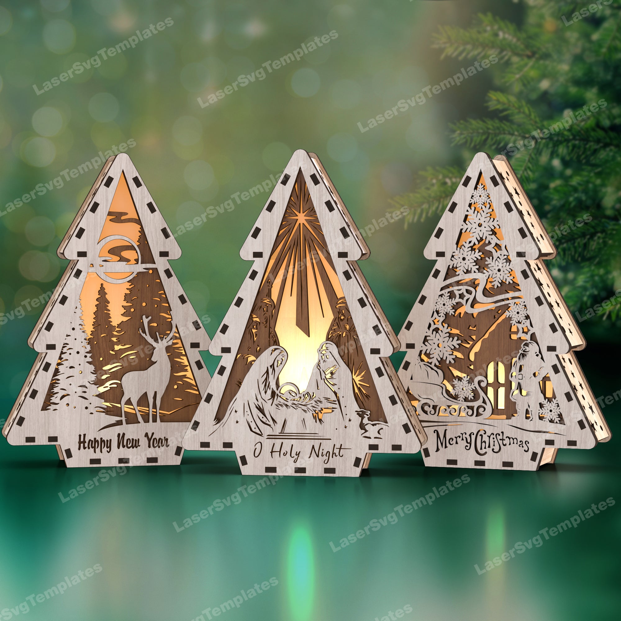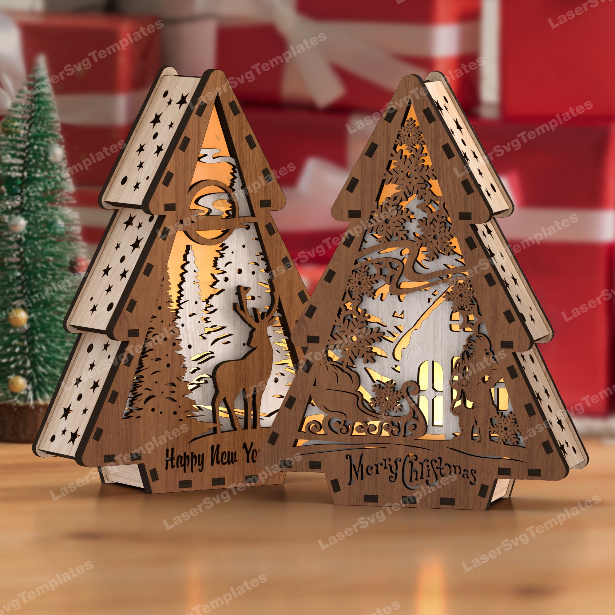 Christmas Santa deer night table lamp 3 bundle laser cut svg file