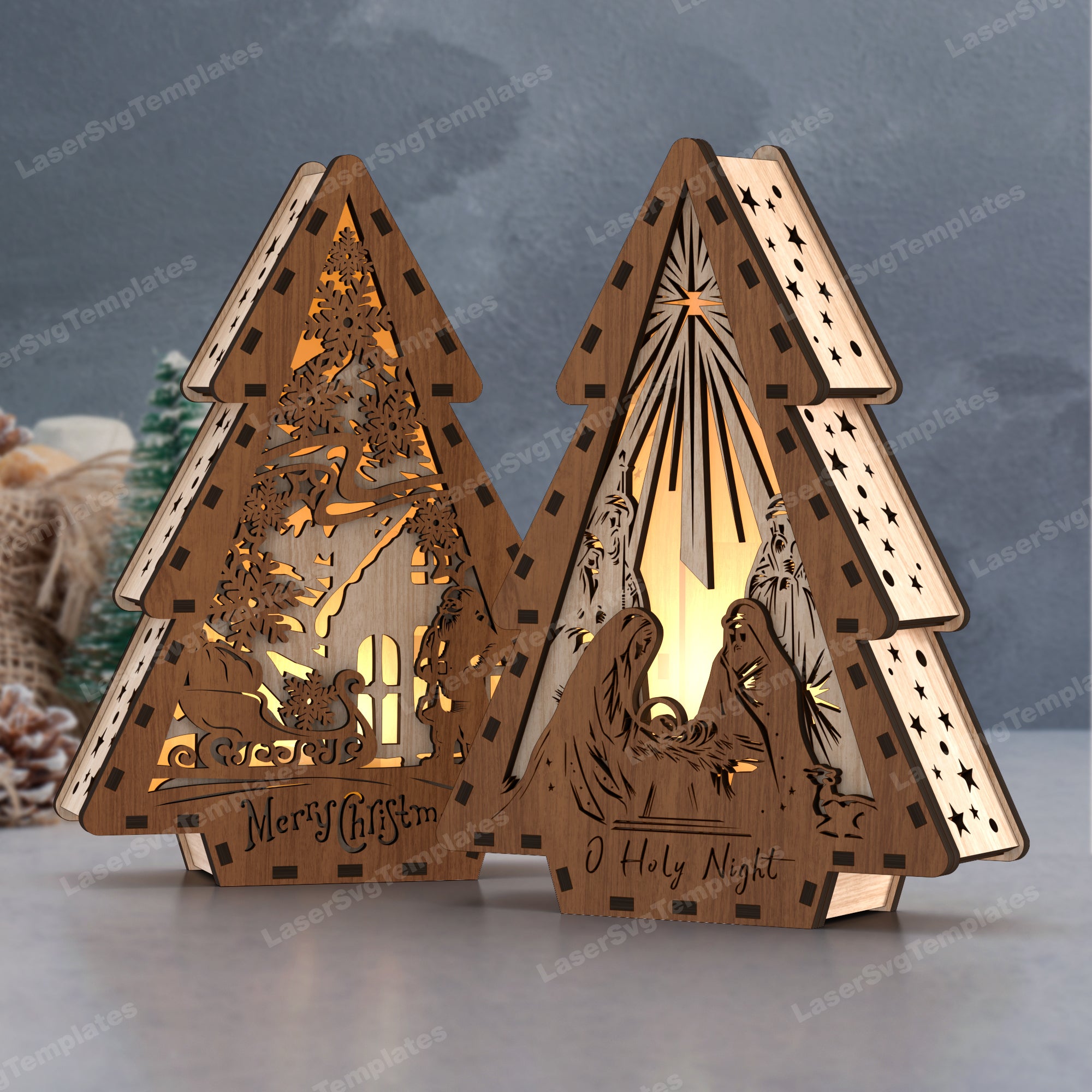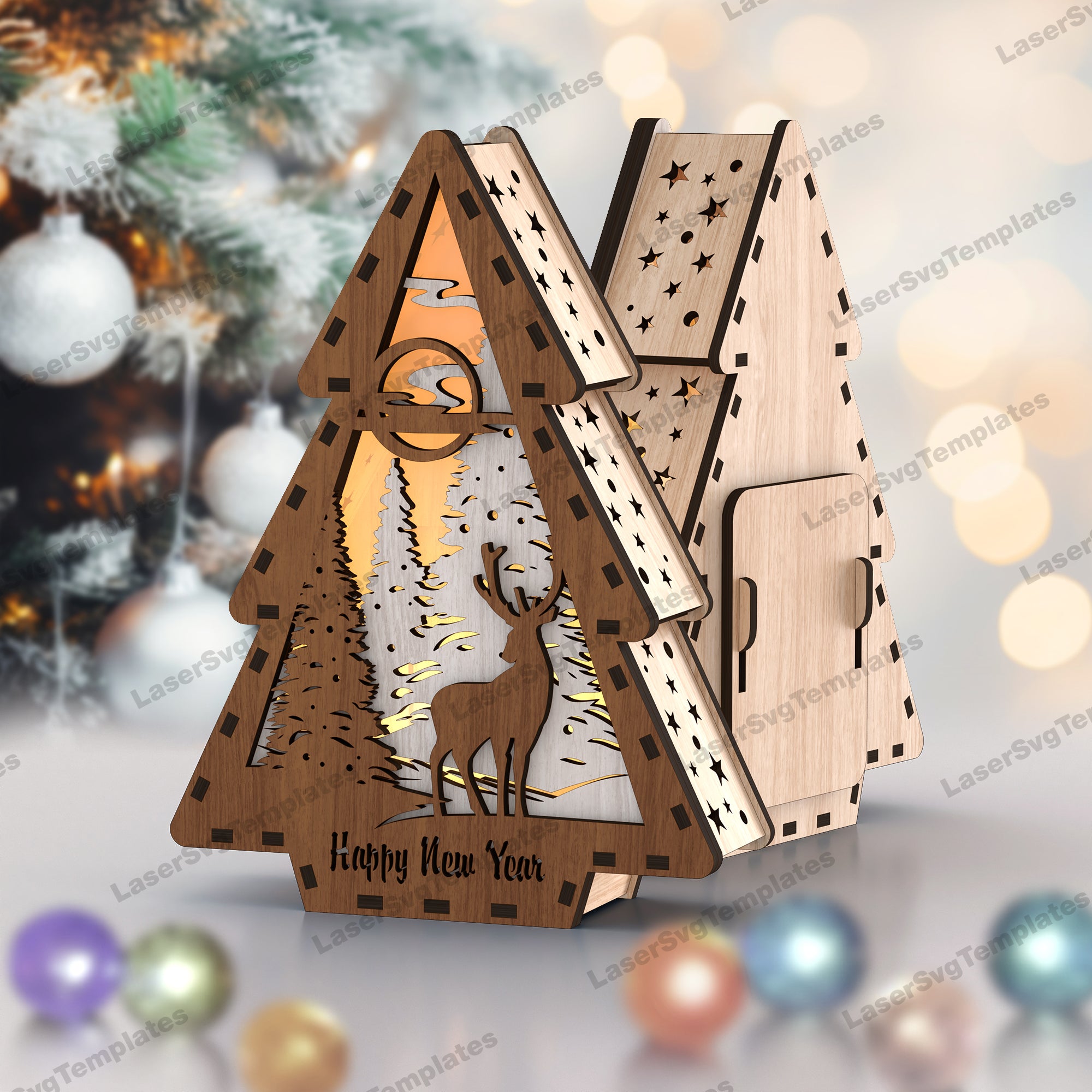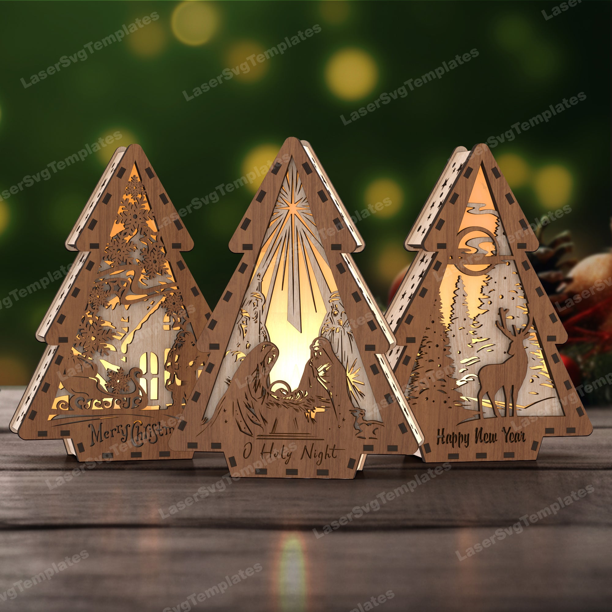 Christmas Santa deer night table lamp 3 bundle laser cut svg file