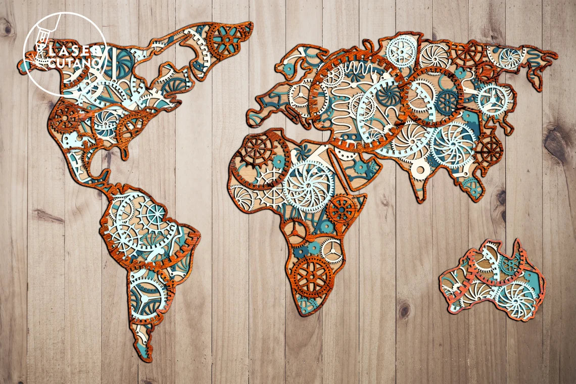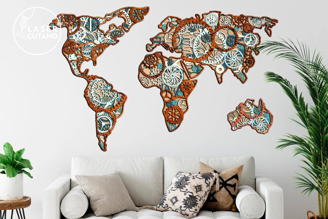 WORLD MAP multilayer Wall Decor Laser Cut Svg File
