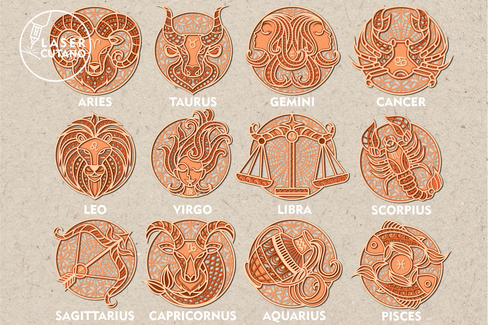 ZODIAC multilayer Wall Decor Laser Cut Svg File