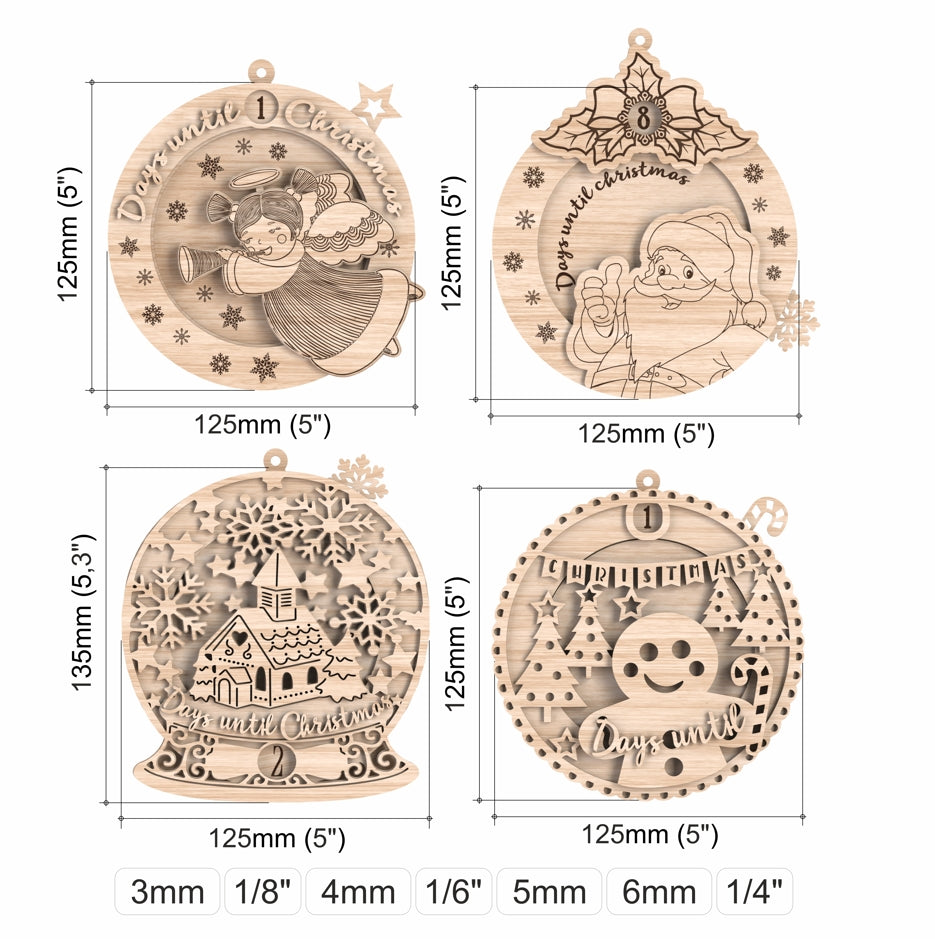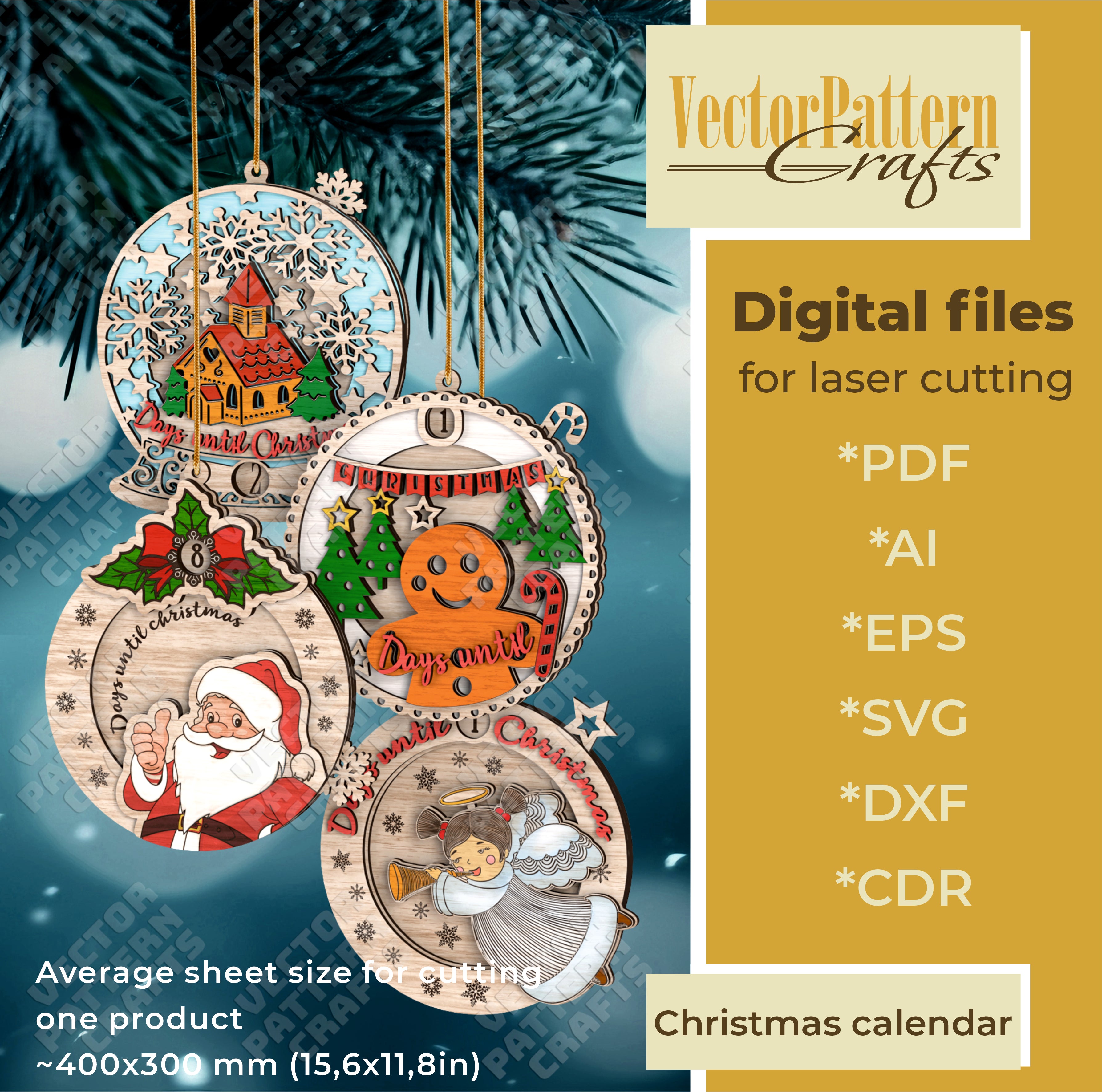 Christmas Countdown Calendar ornament 4 bundle laser cut svg file