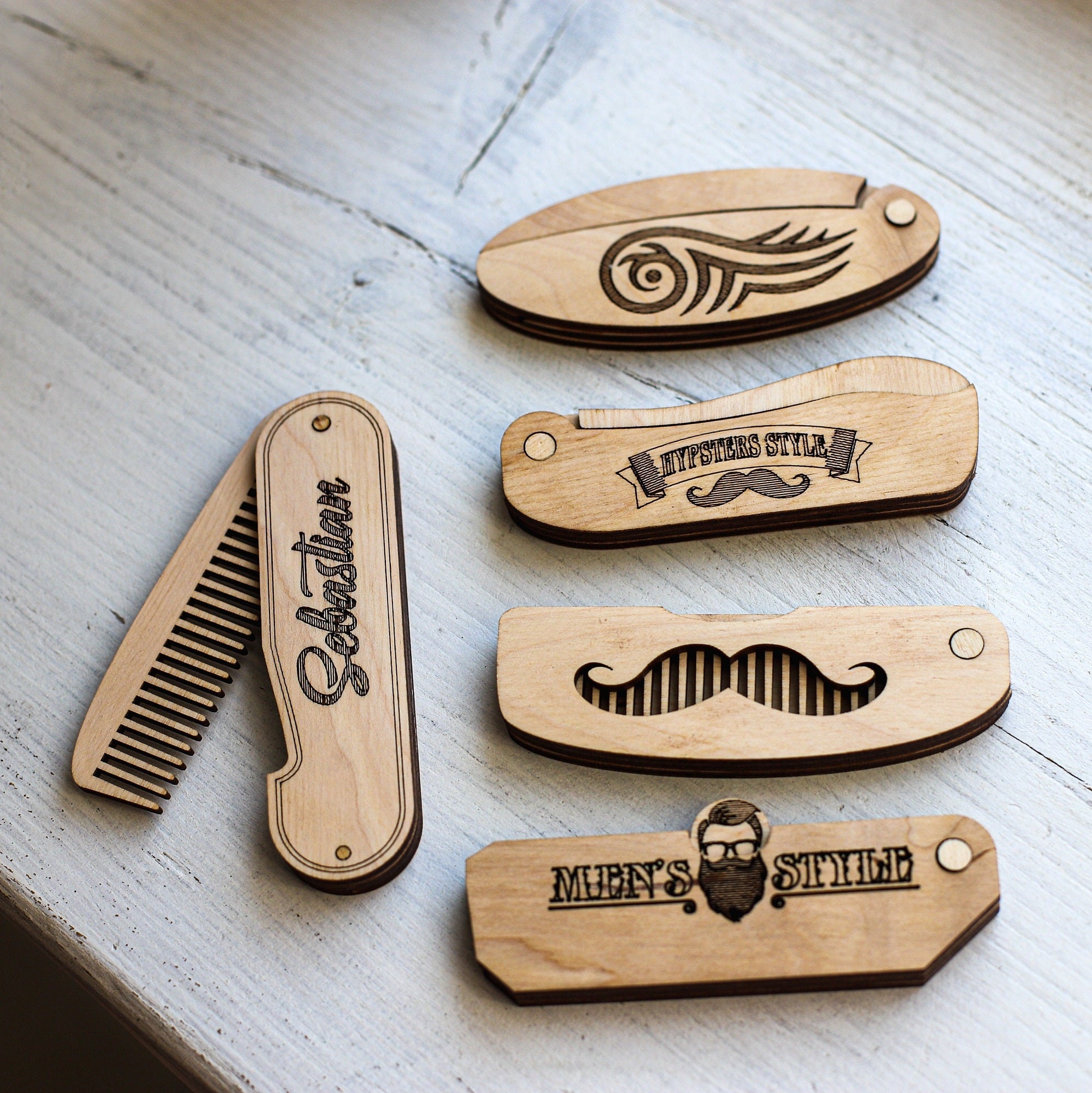 Laser cut wooden combs 5 bundle svg file