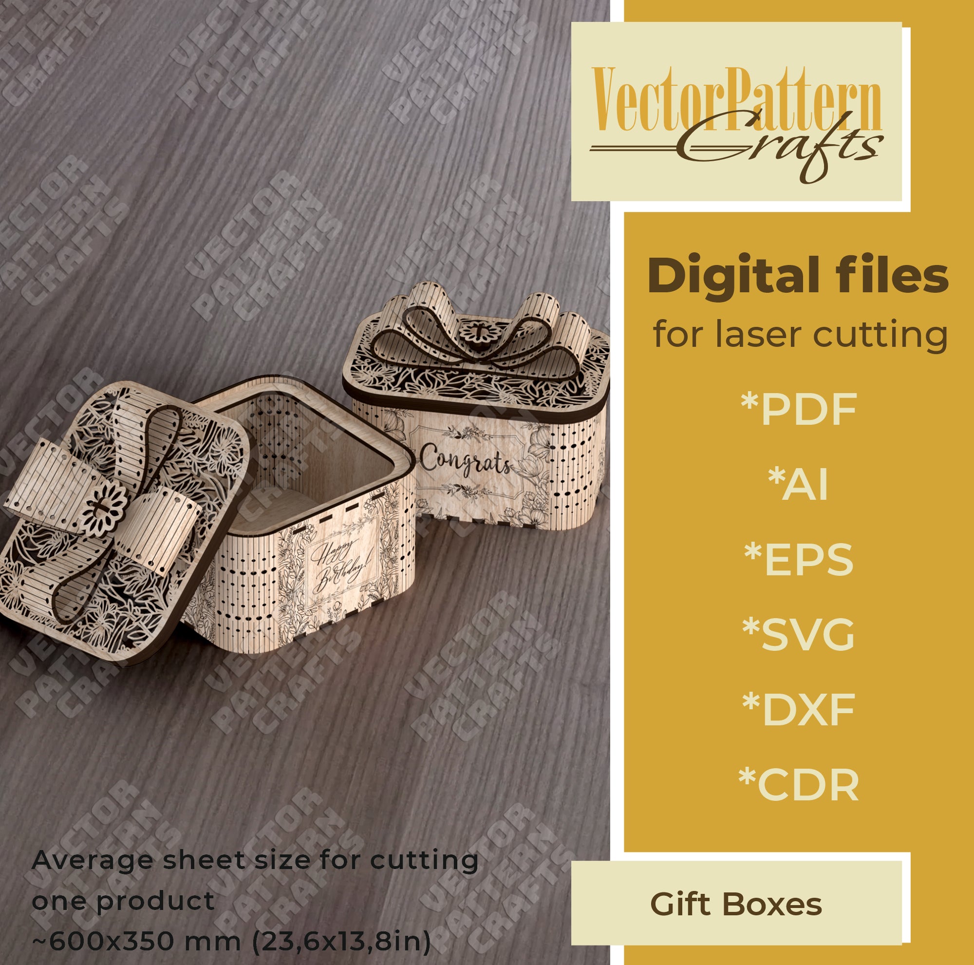 Decorative gift bottle wine box 6 bundle laser cut svg file