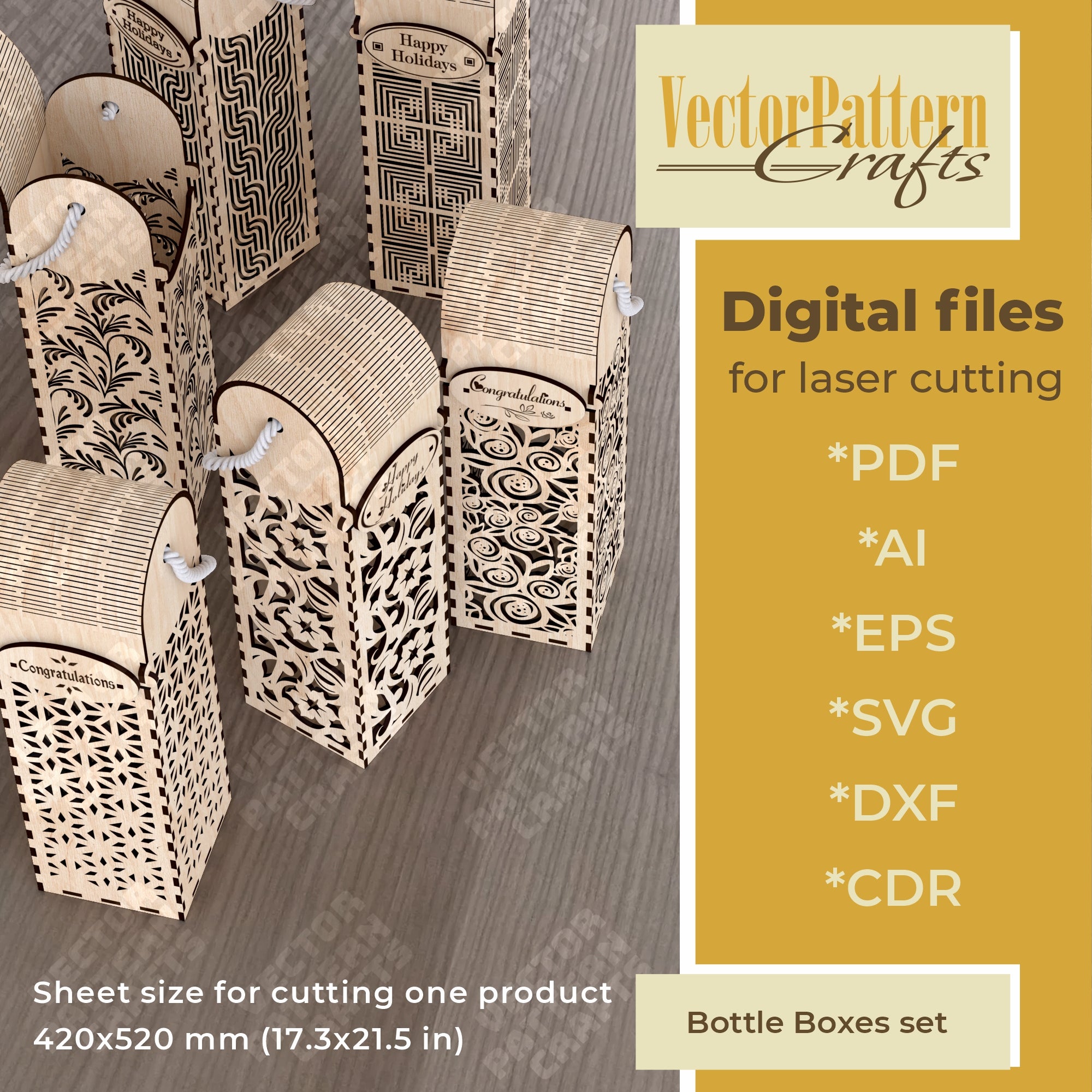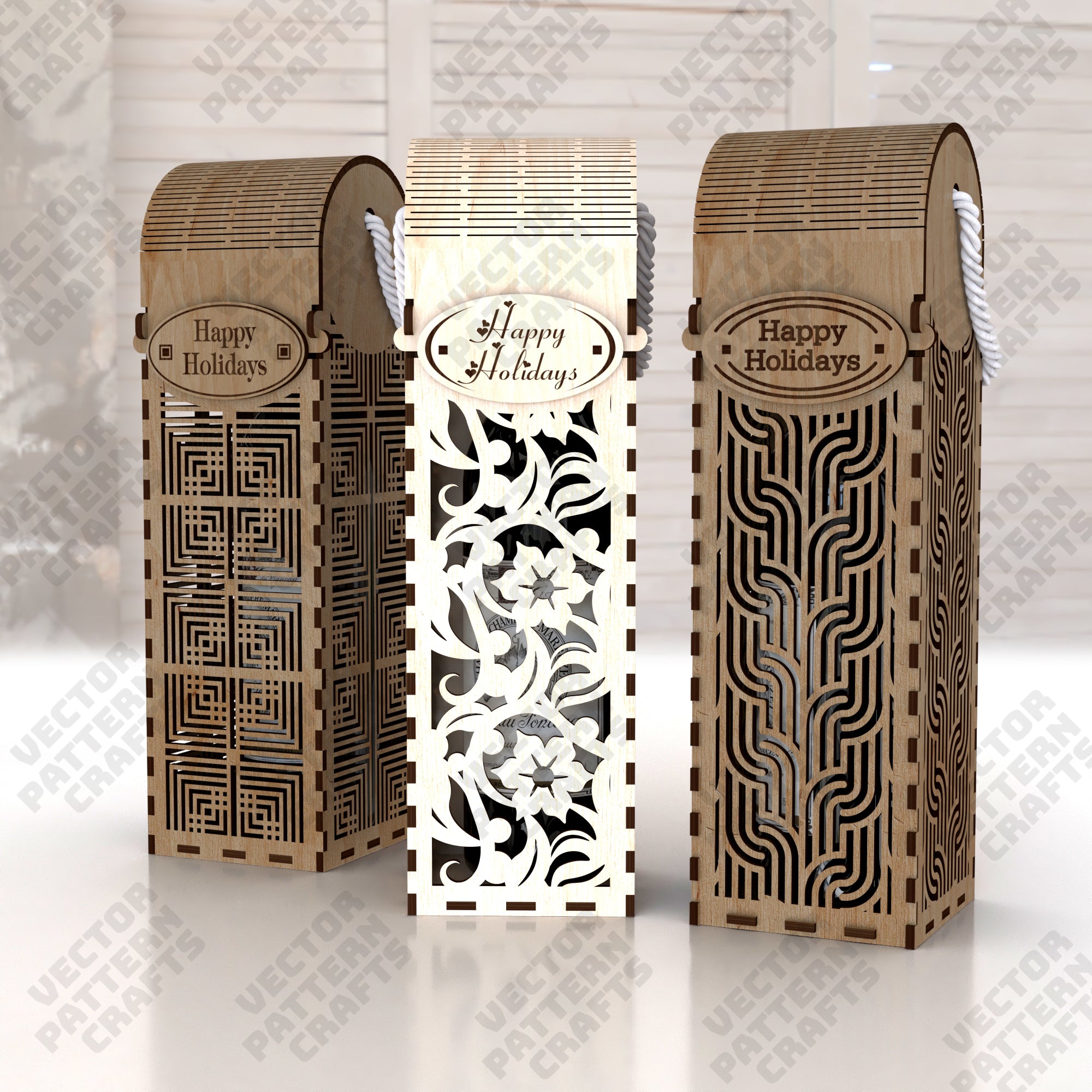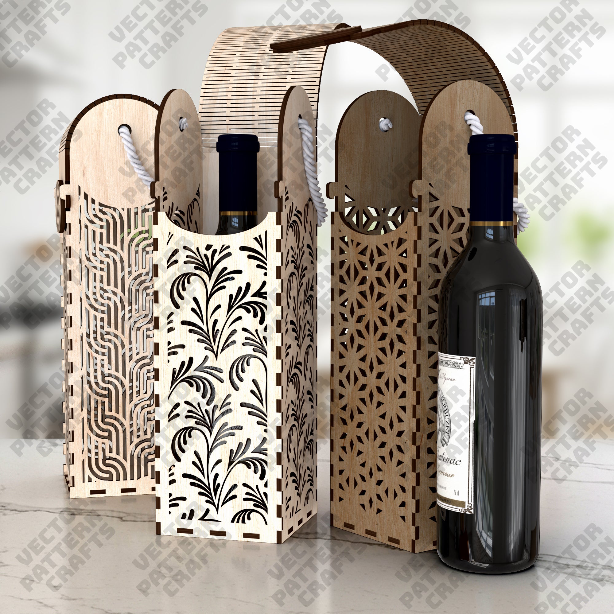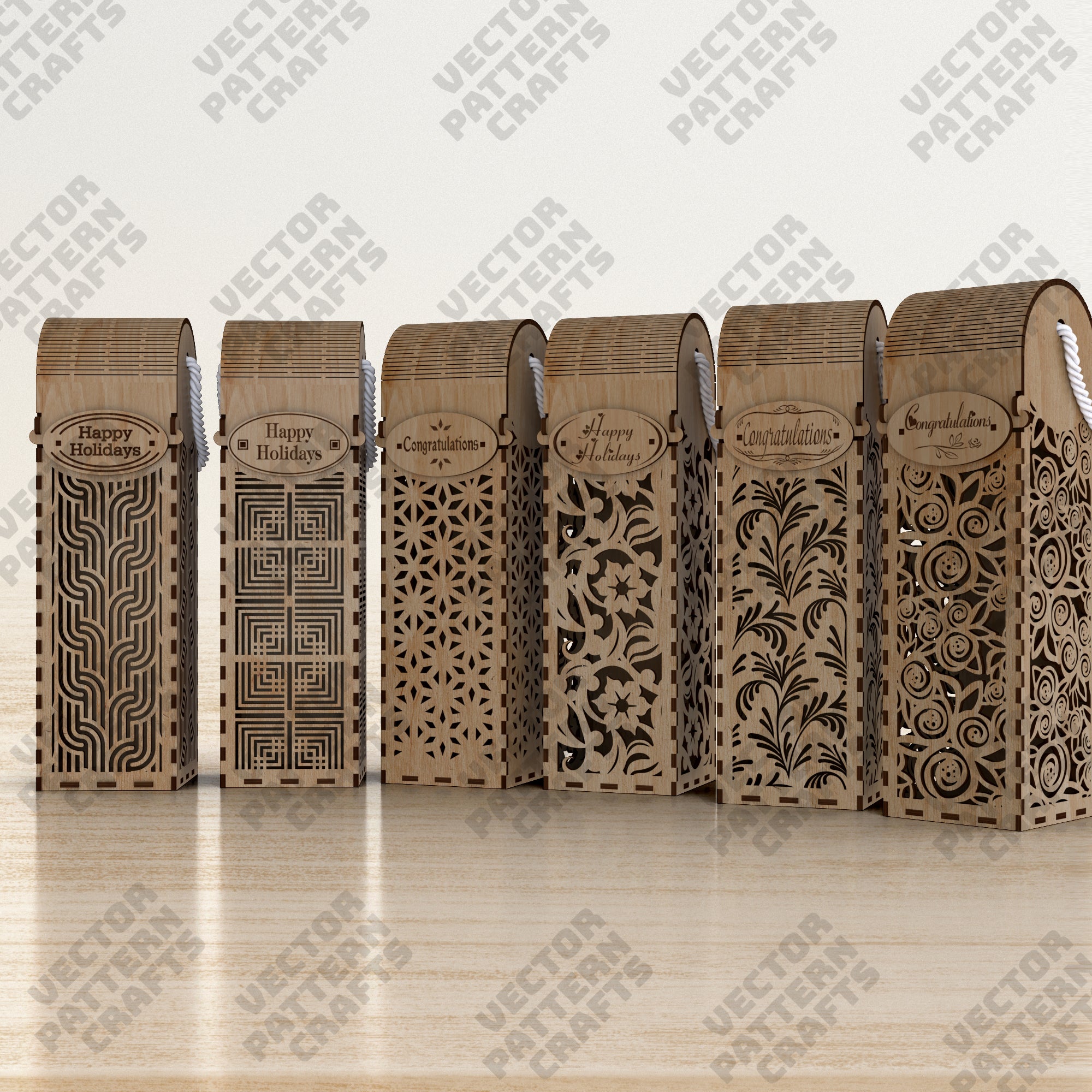 Decorative gift bottle wine box 6 bundle laser cut svg file