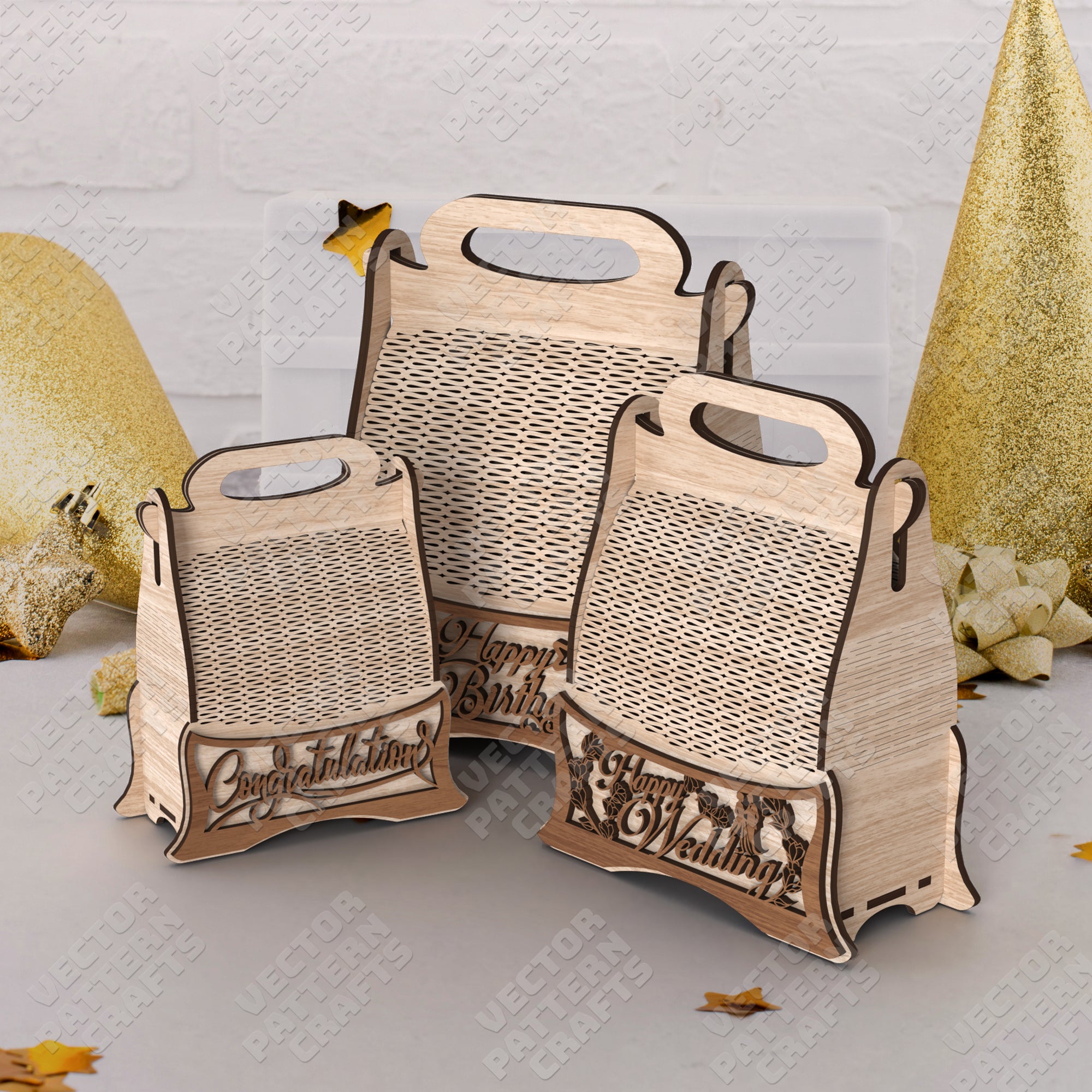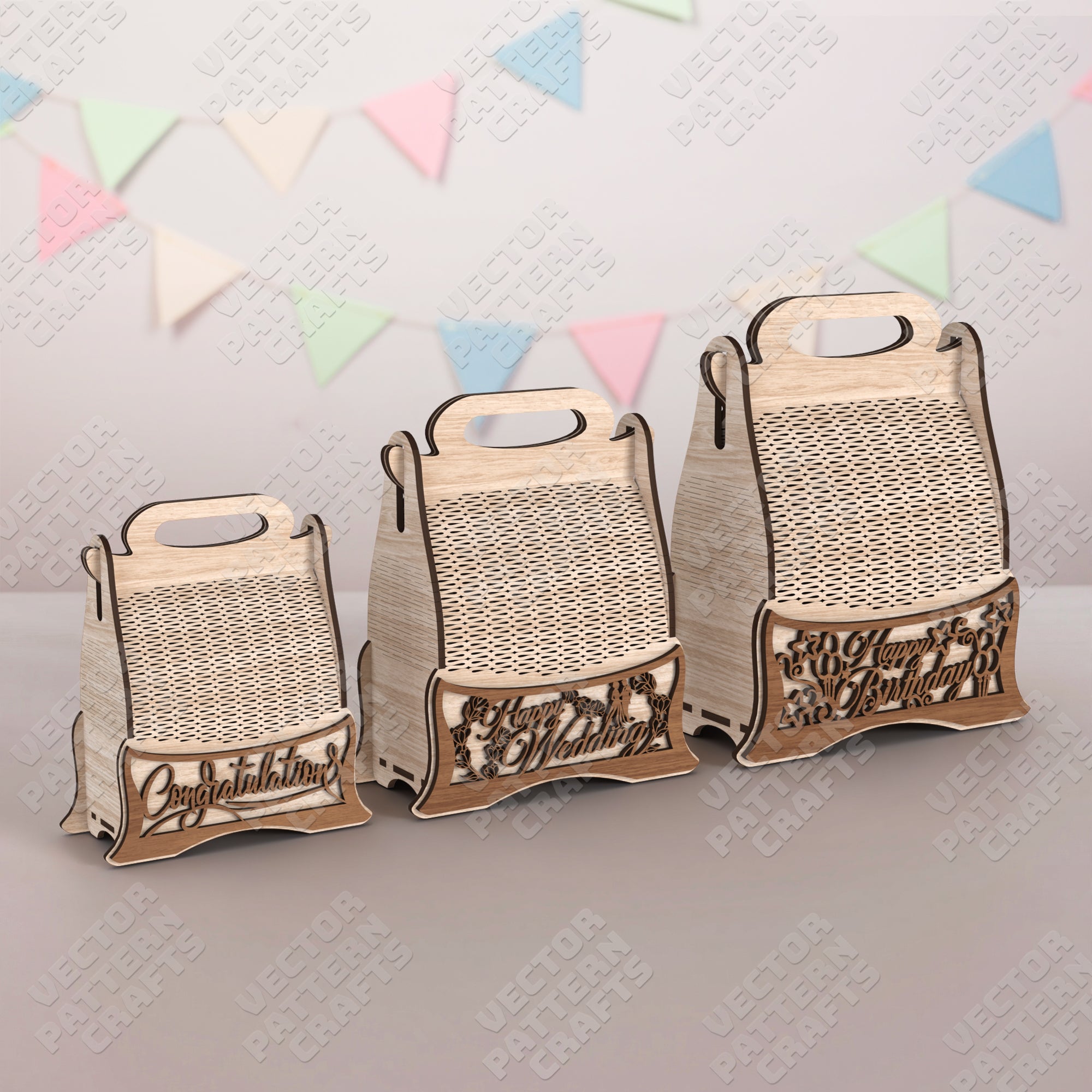 Wooden gift package box 3 set laser cut svg file