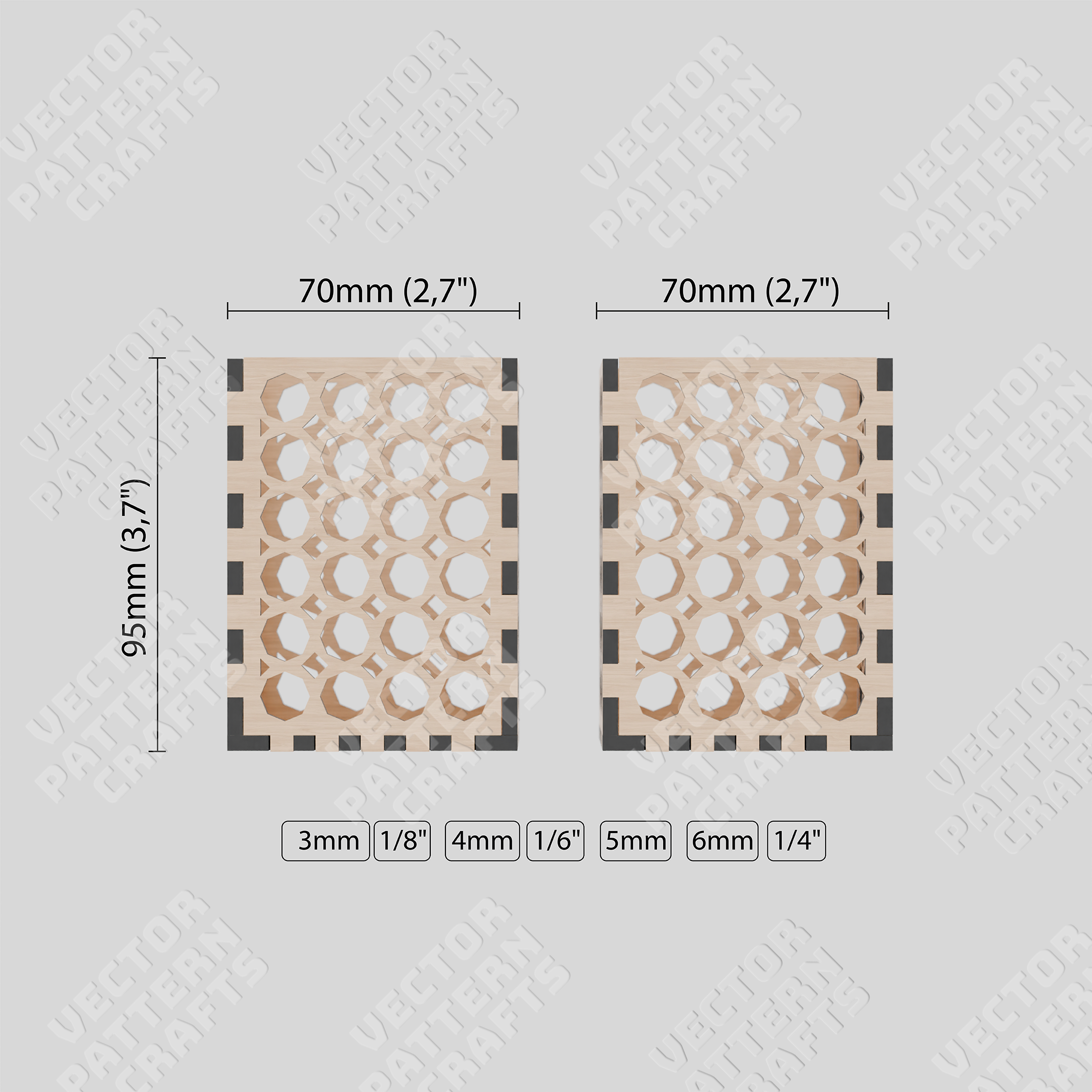 This file is specifically optimized for materials with thicknesses of 3 mm, 0.125 ", 4 mm, 0.166 ",5mm, 6mm and 0.25 " offering great flexibility for various projects and preferences. ๐