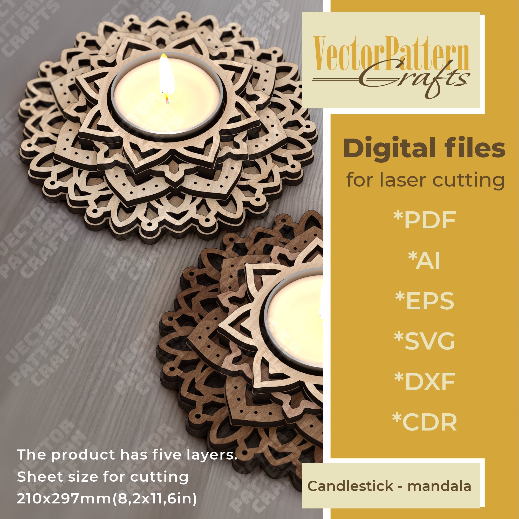 Wooden mandala candle holder laser cut svg file