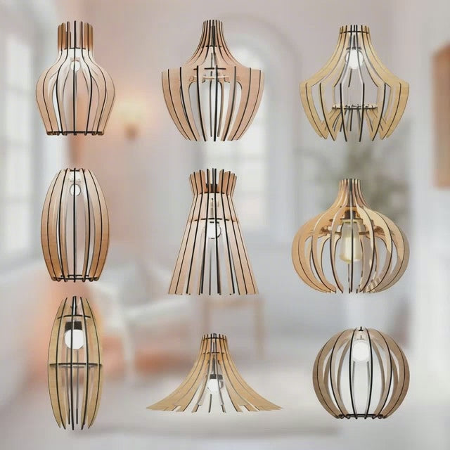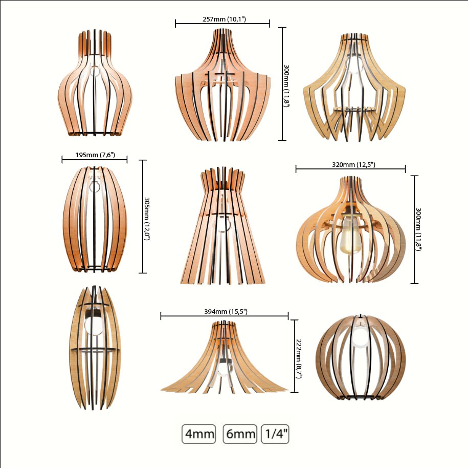 Decorative wooden chandelier lamp 9 bundle laser cut svg file