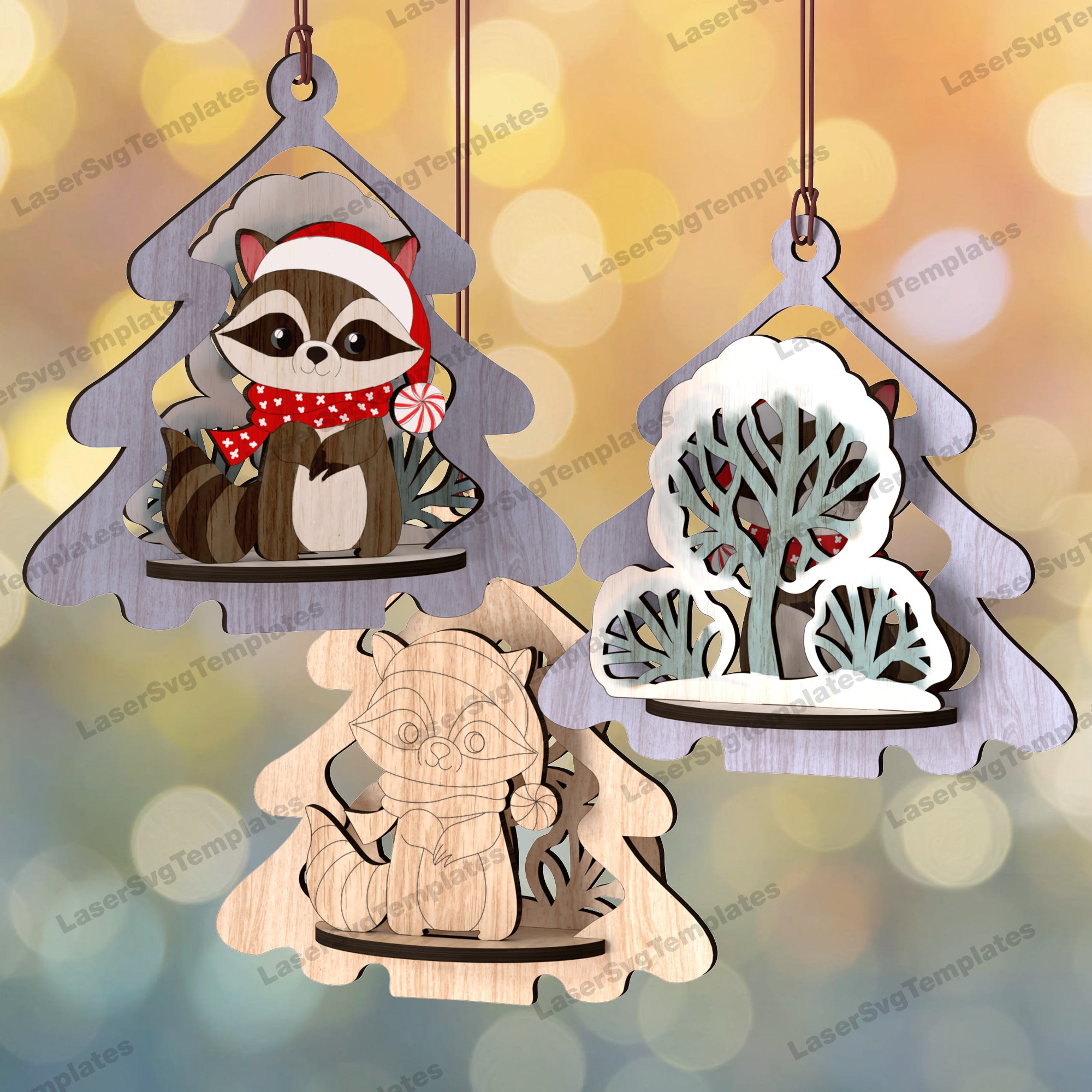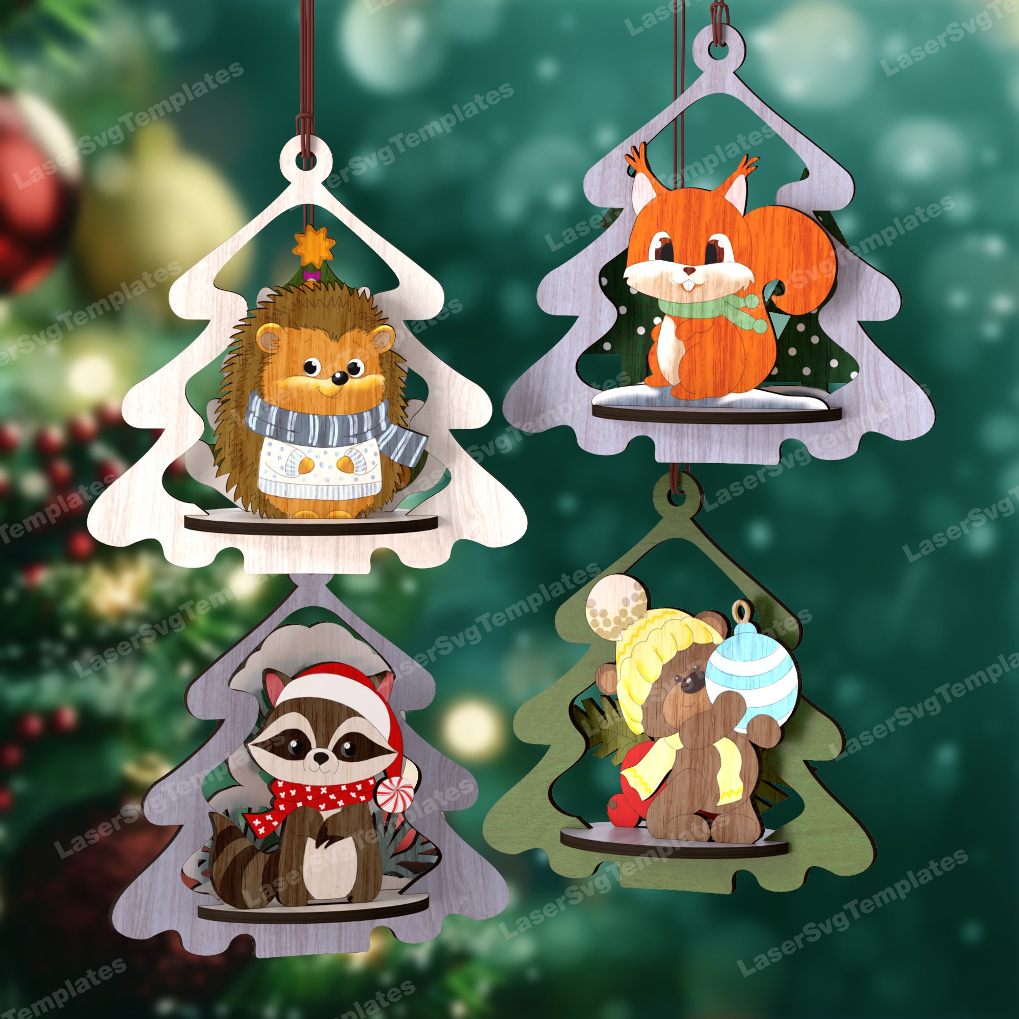 — Laser cut 3D Christmas animals tree ball ornaments svg file