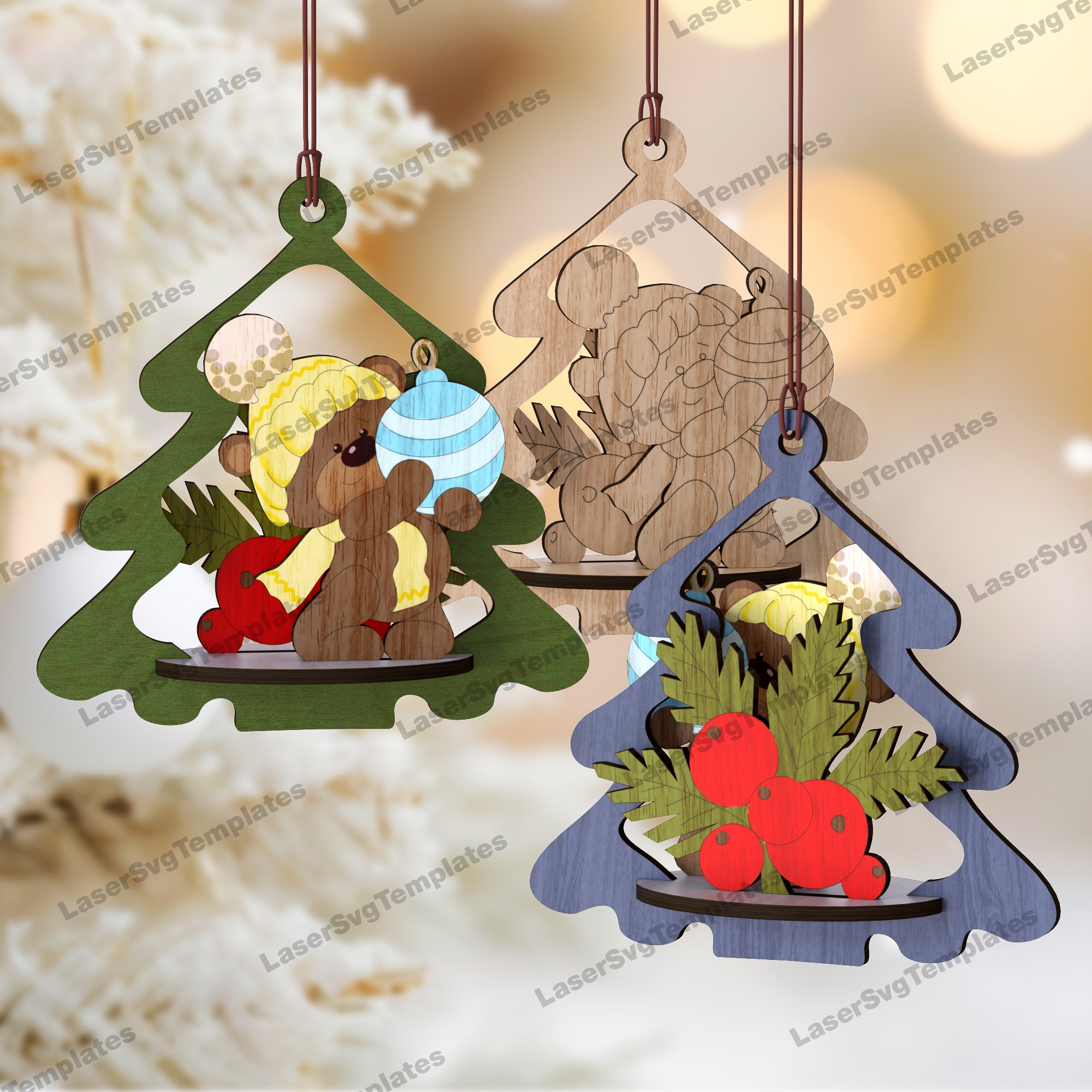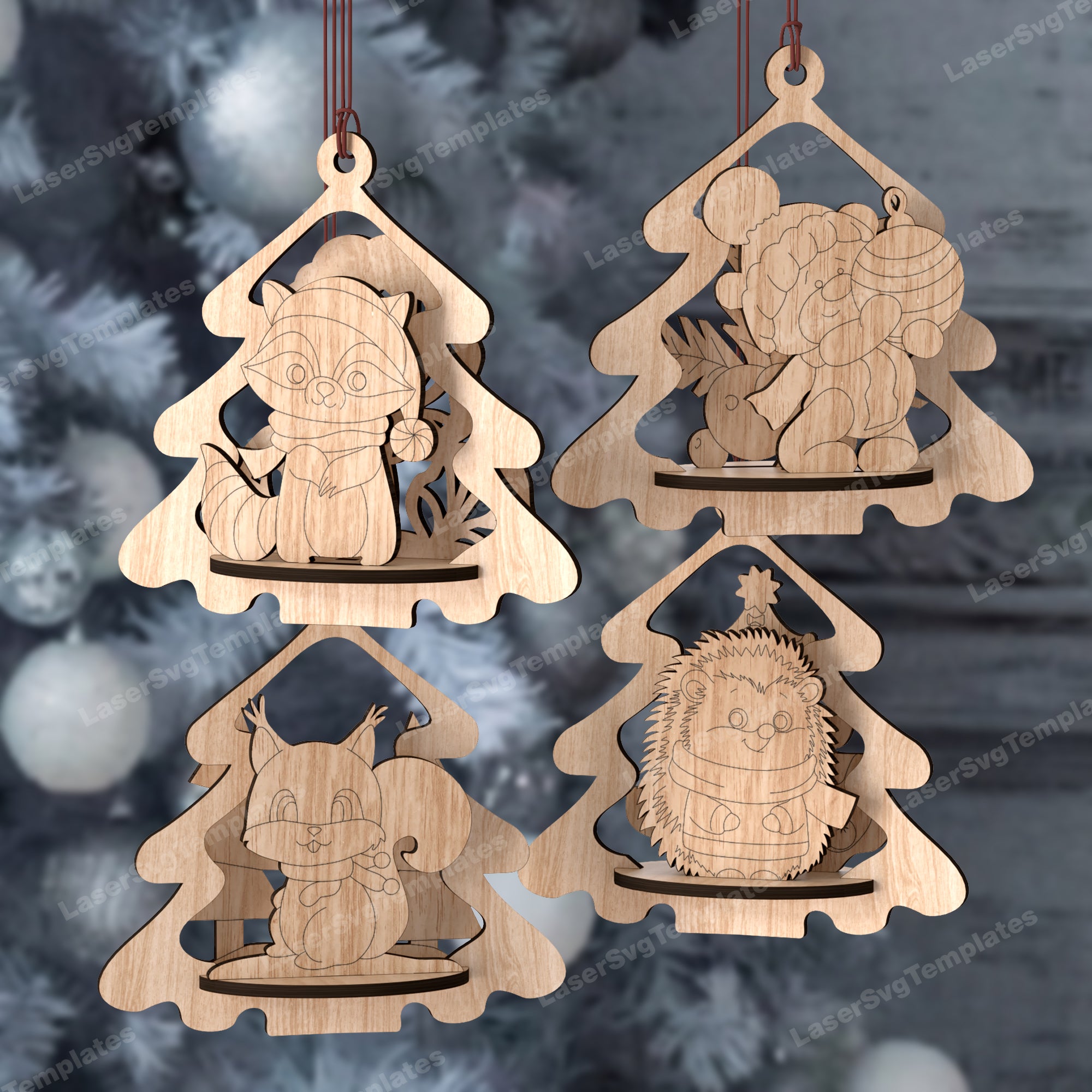 Laser cut 3D Christmas animals tree ball ornaments svg file