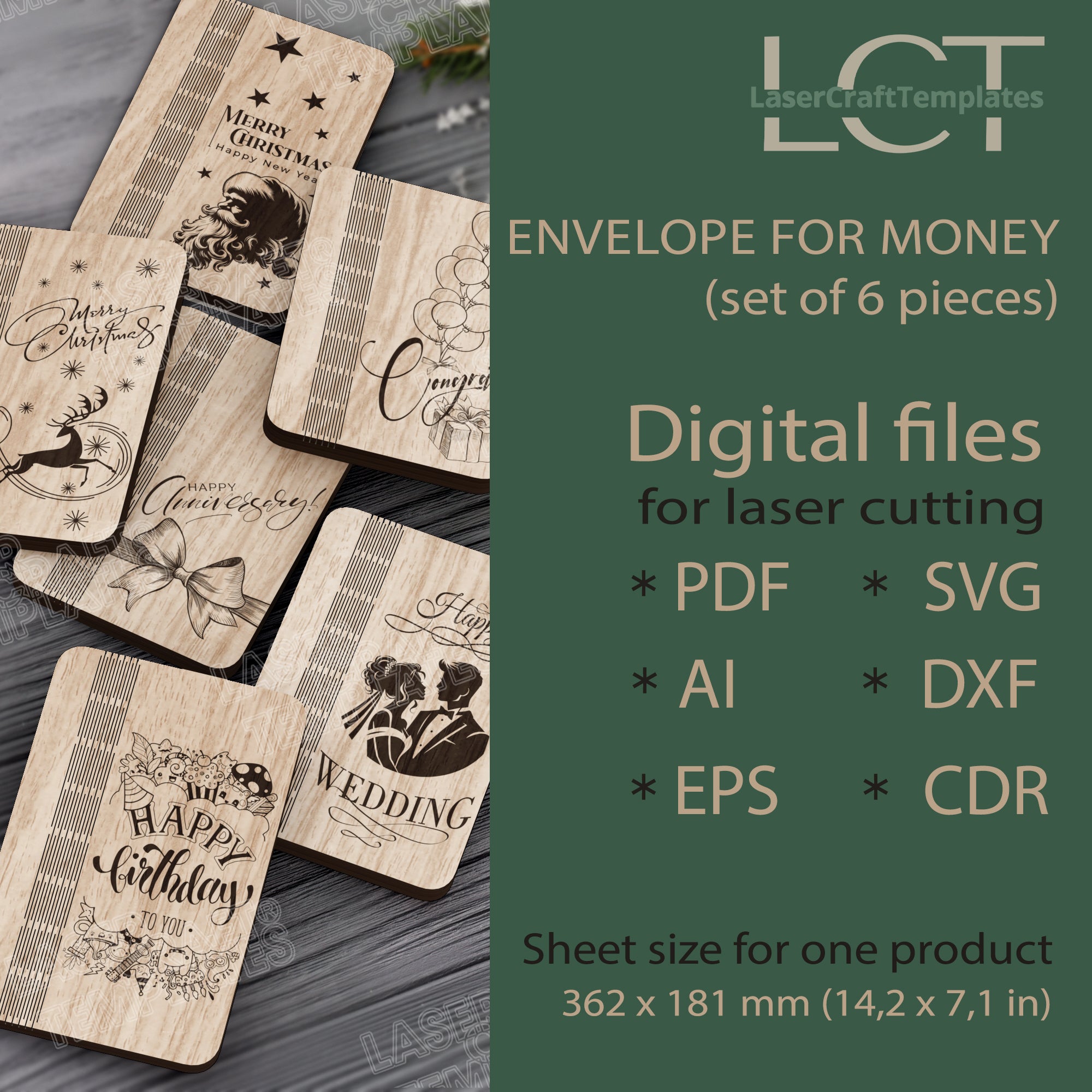 Christmas Envelope for money 6 bundle svg laser cutting file