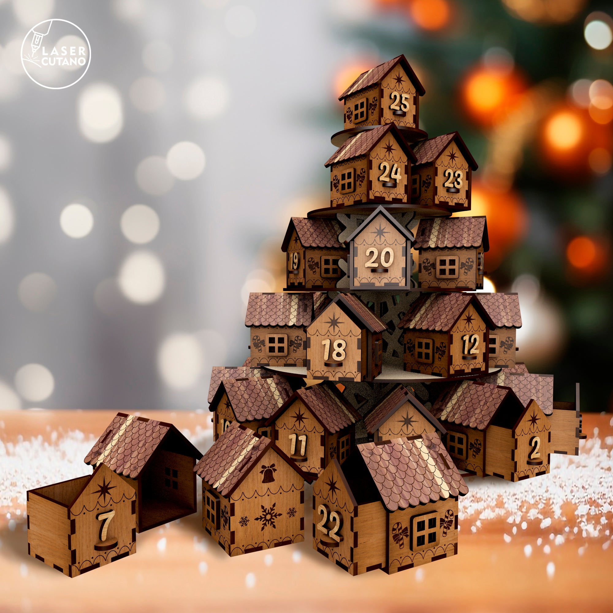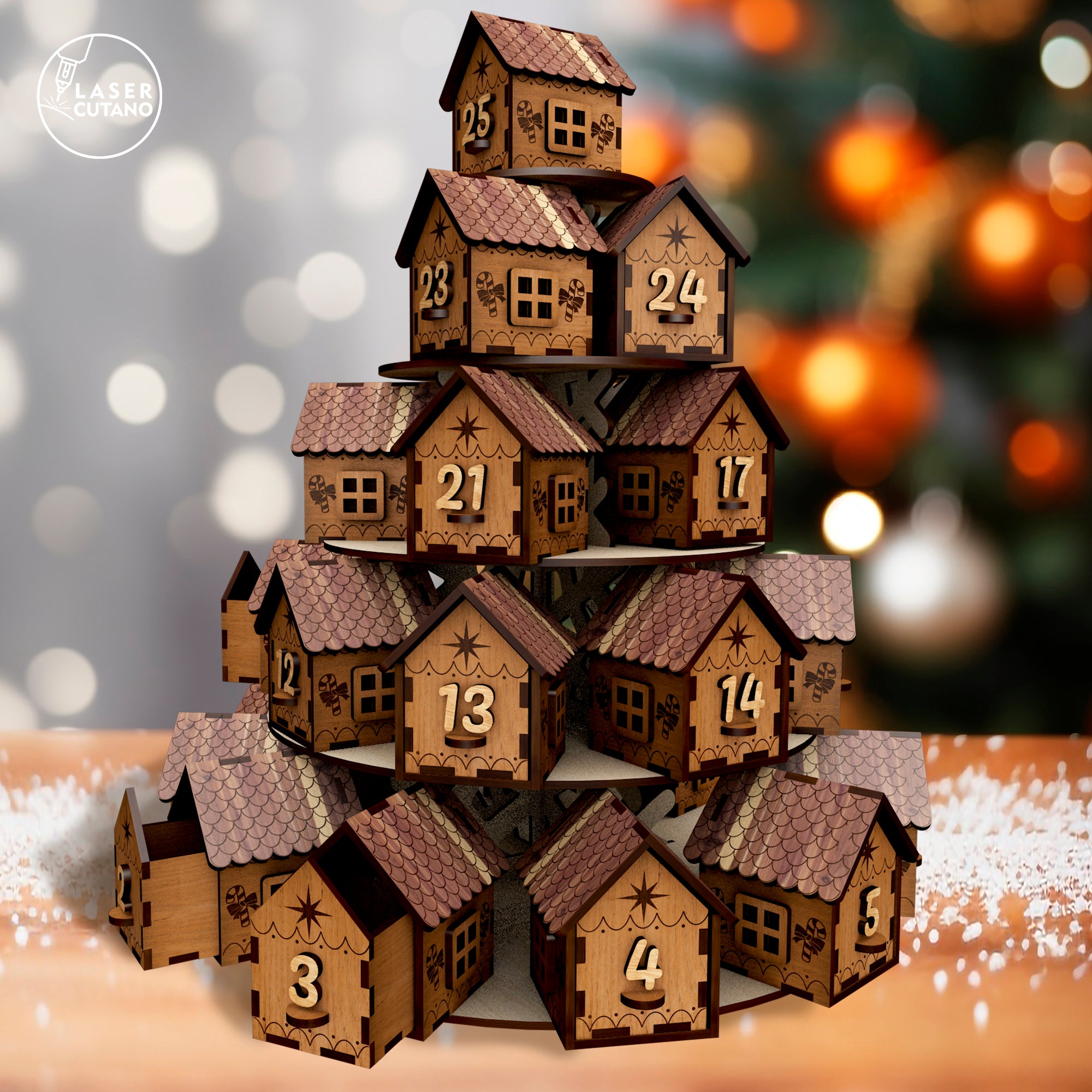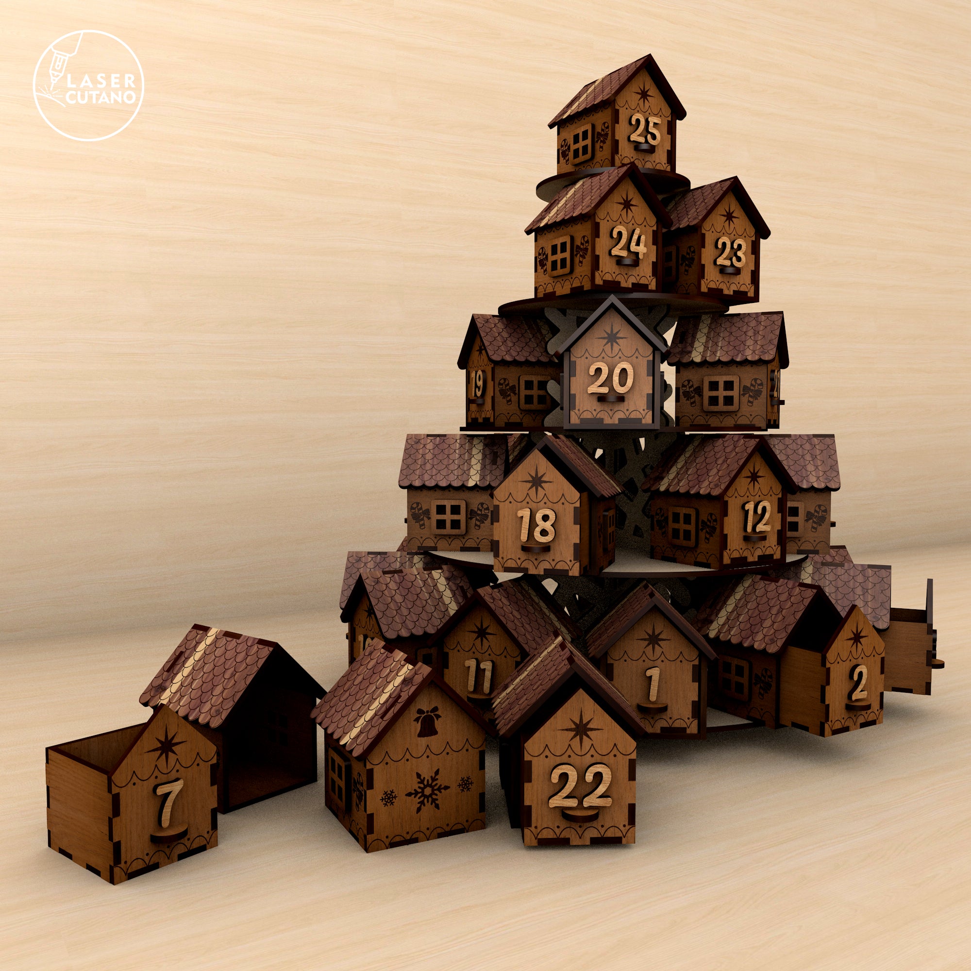 3D Christmas Advent Calendar Houses Laser Cut Svg File