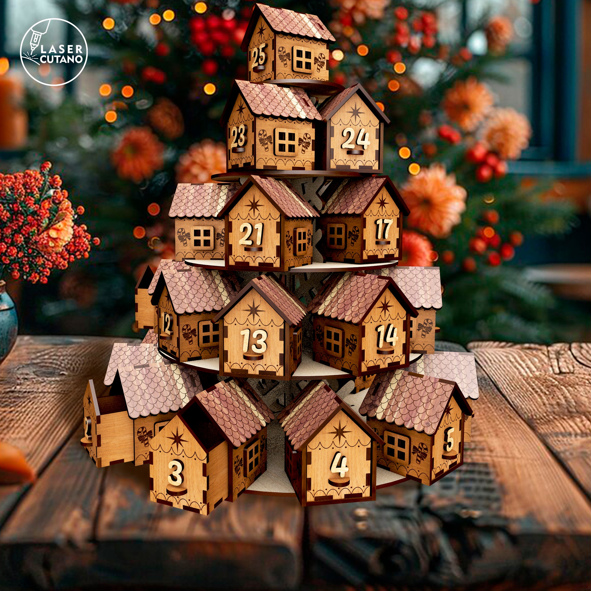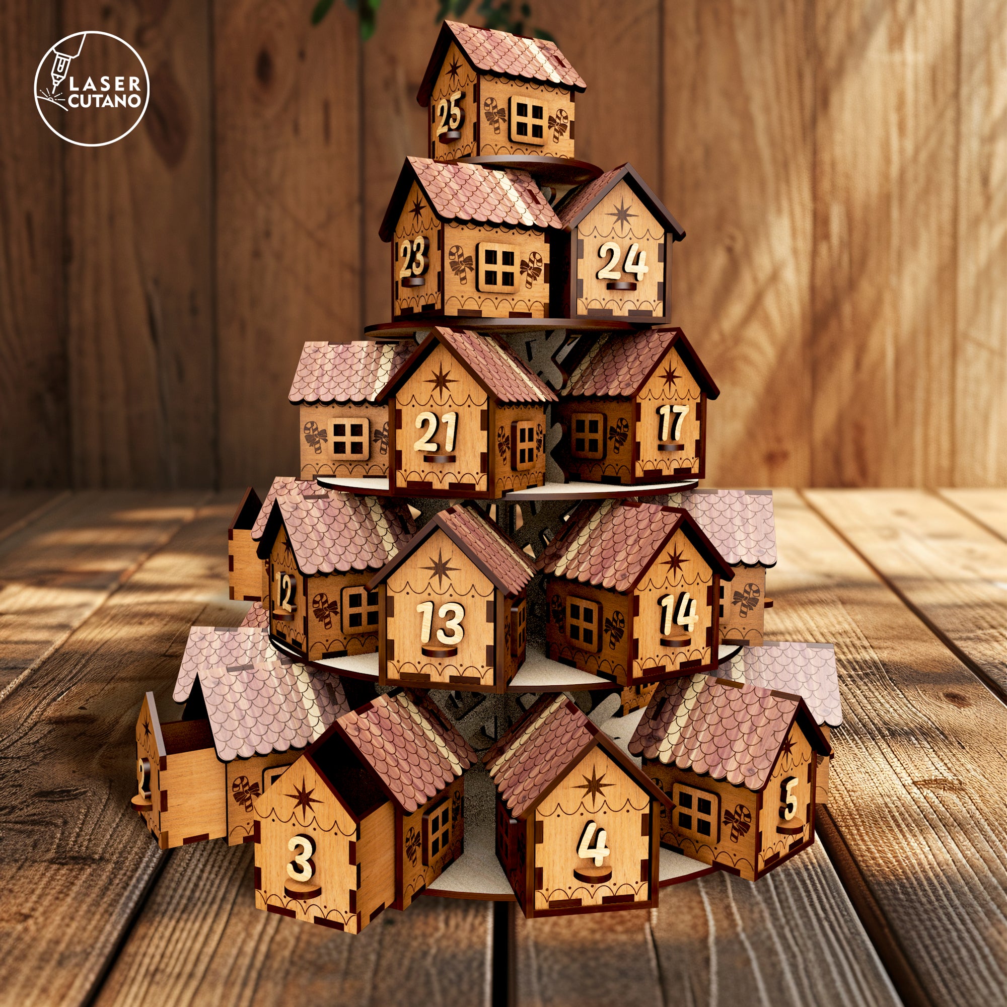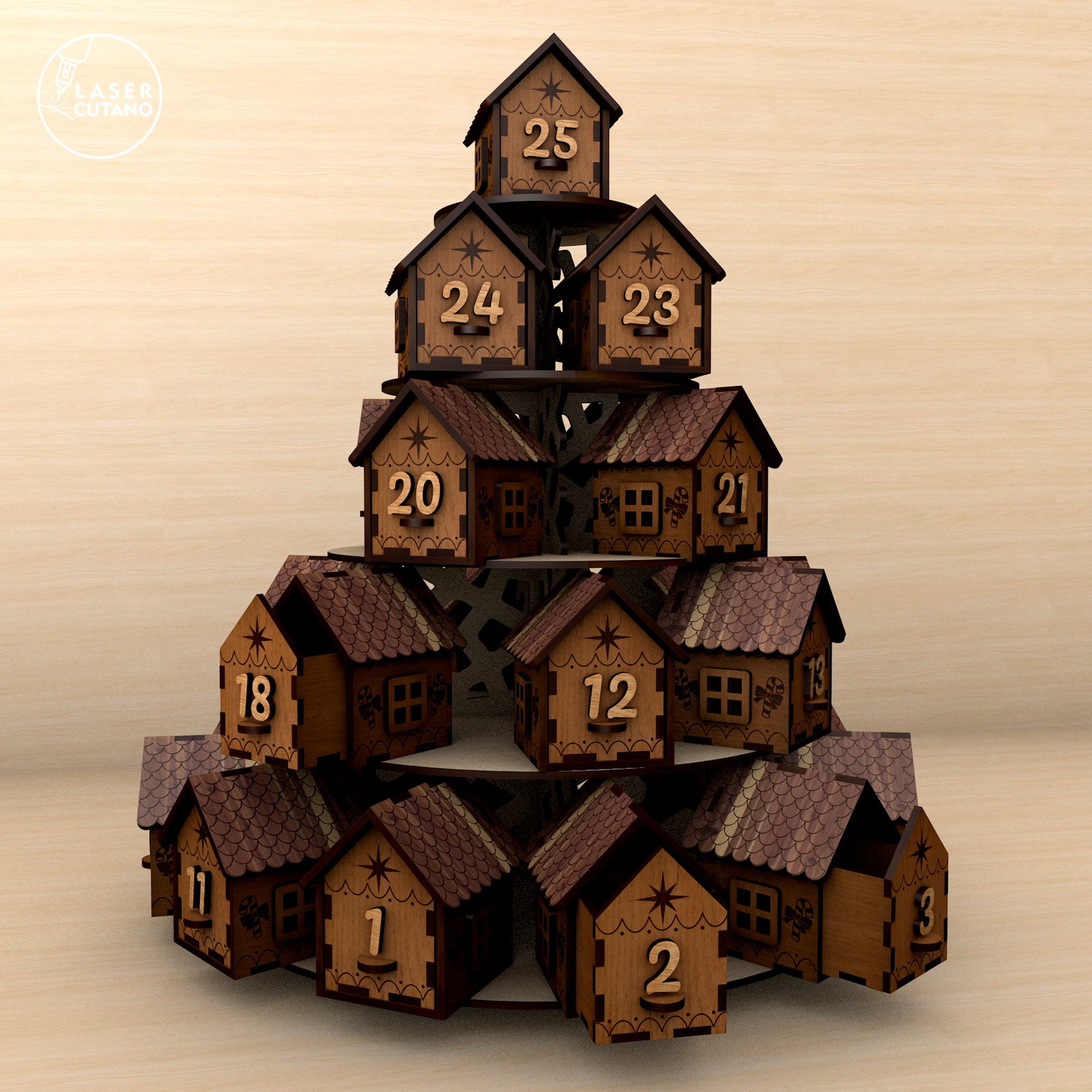 3D Christmas Advent Calendar Houses Laser Cut Svg File