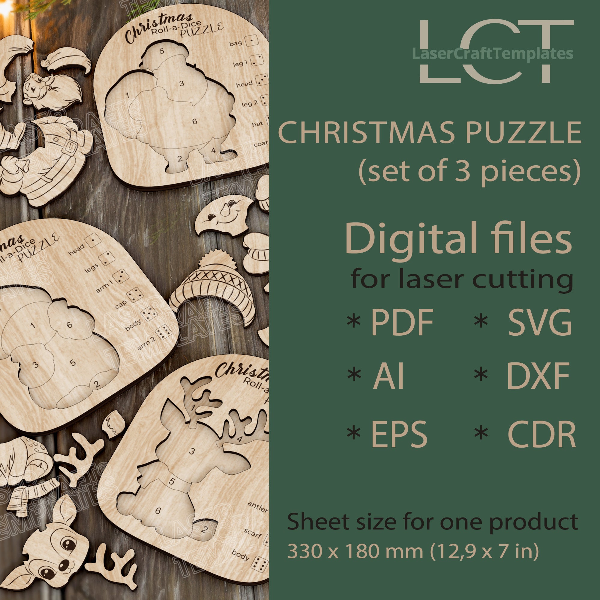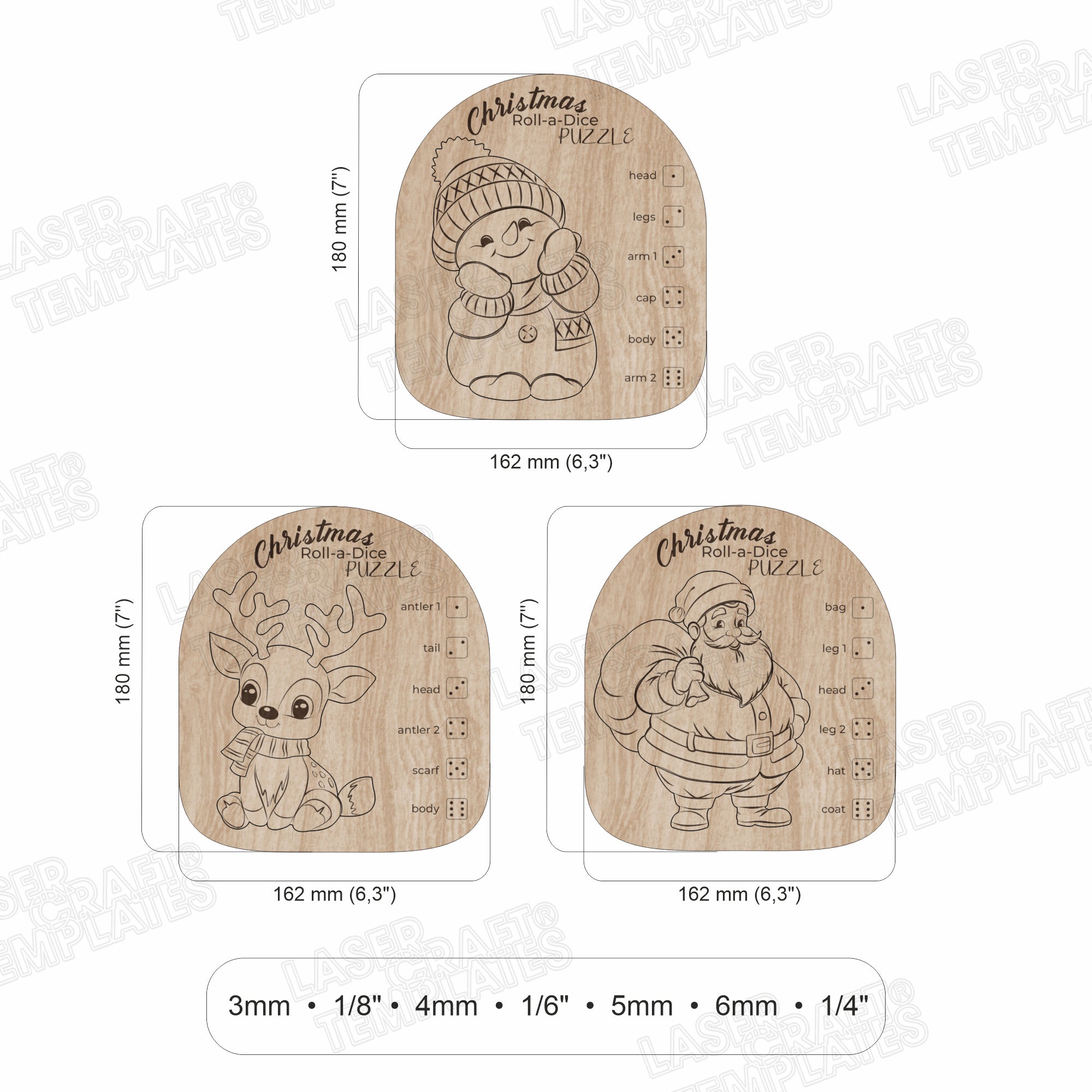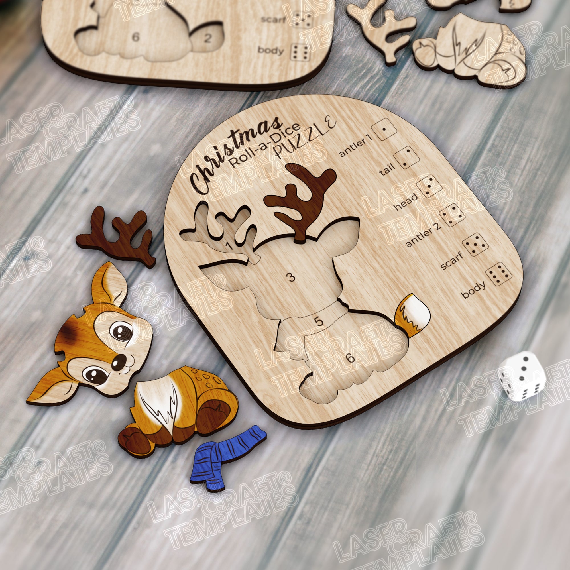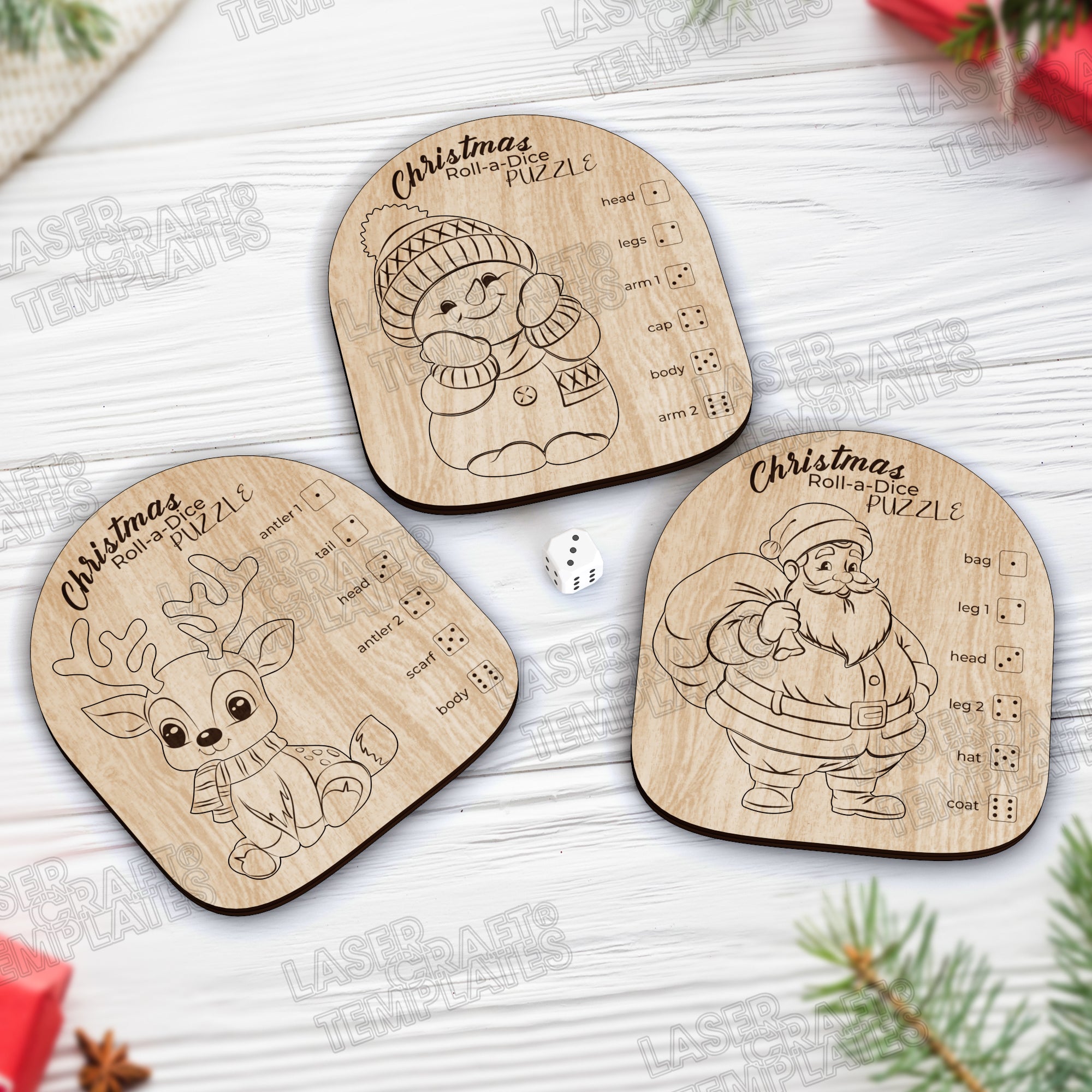 🔹Christmas roll-a-dice puzzle 3 bundle laser cut svg file
