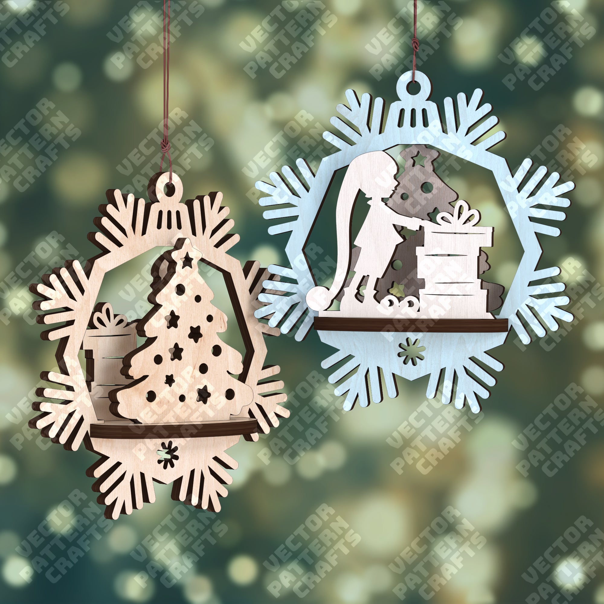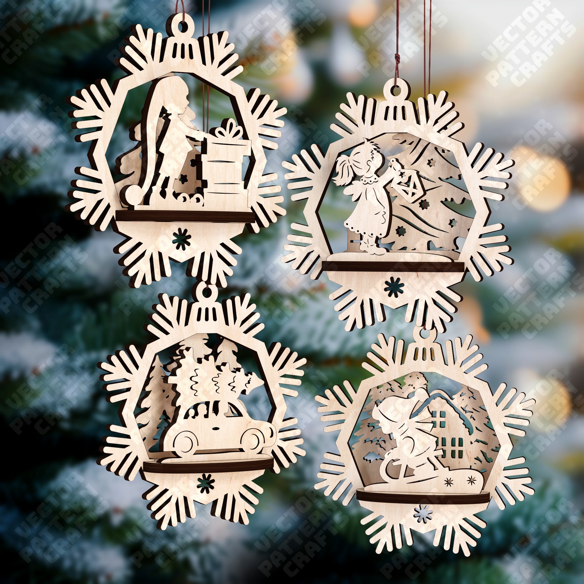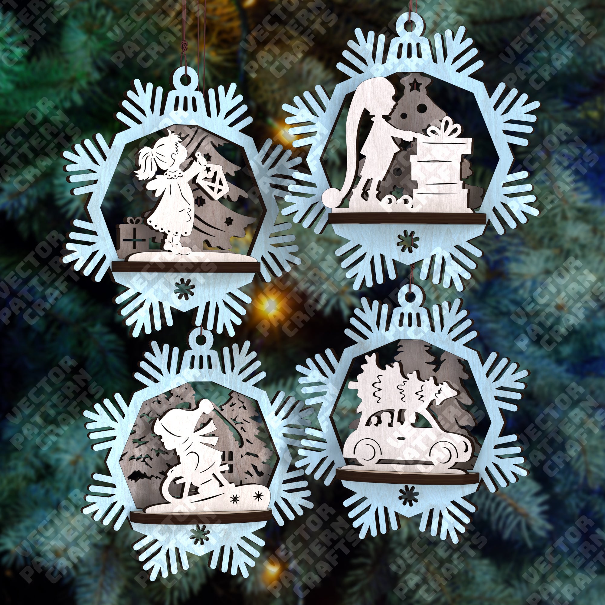 Christmas snowflake ornaments 4 bundle laser cut svg file