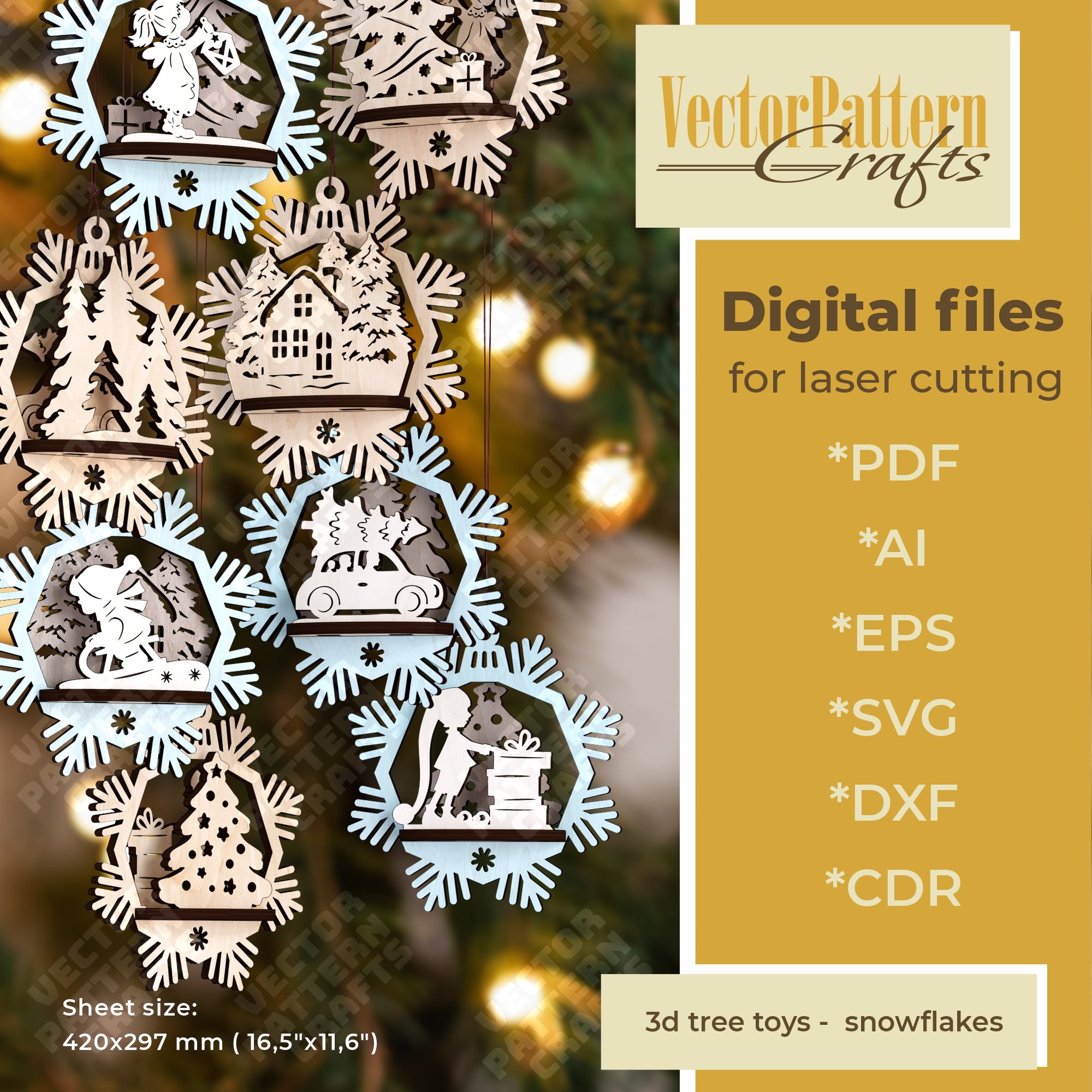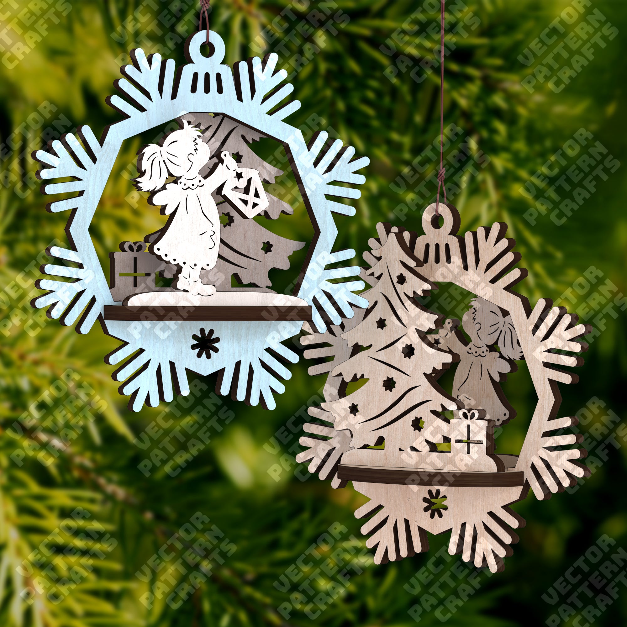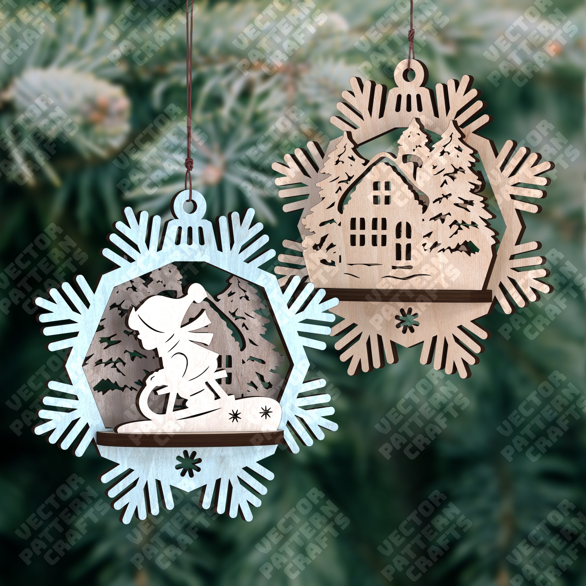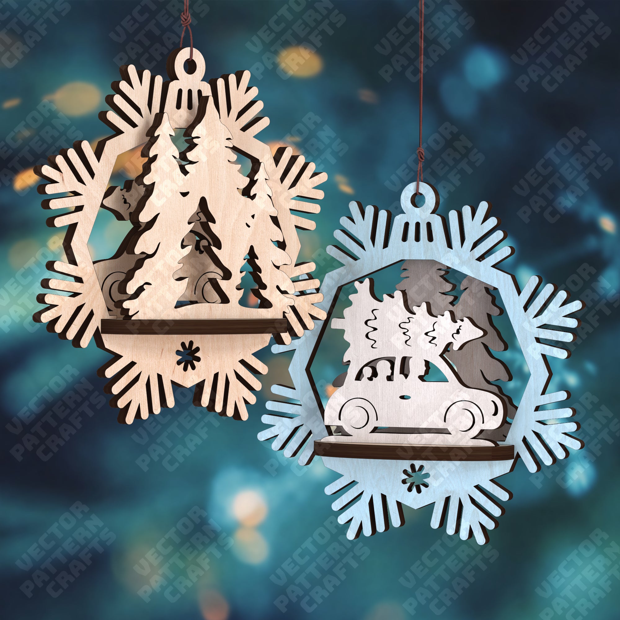Christmas snowflake ornaments 4 bundle laser cut svg file