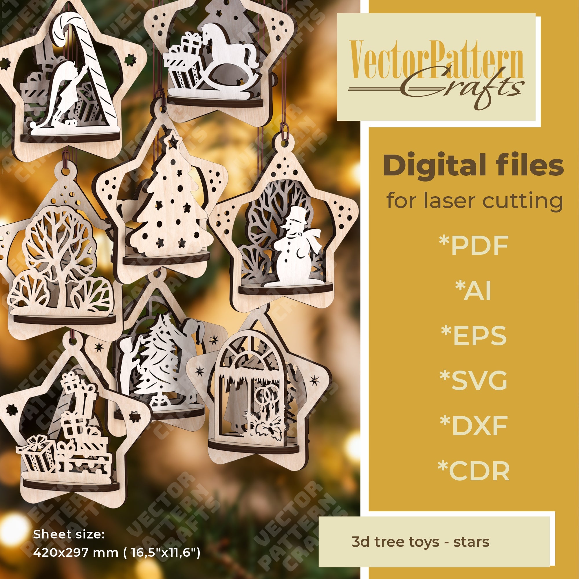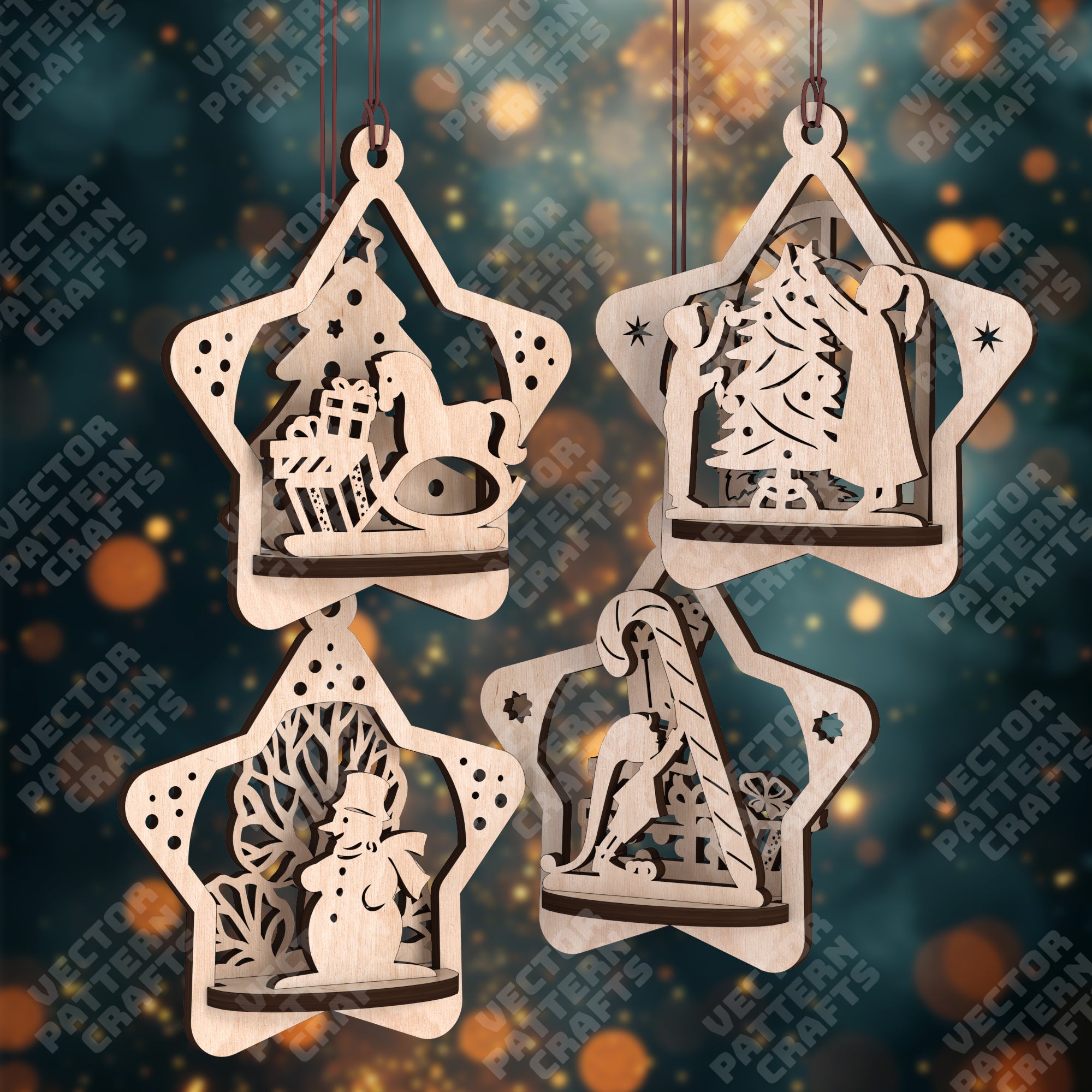 Christmas star ornaments 4 bundle laser cut svg file