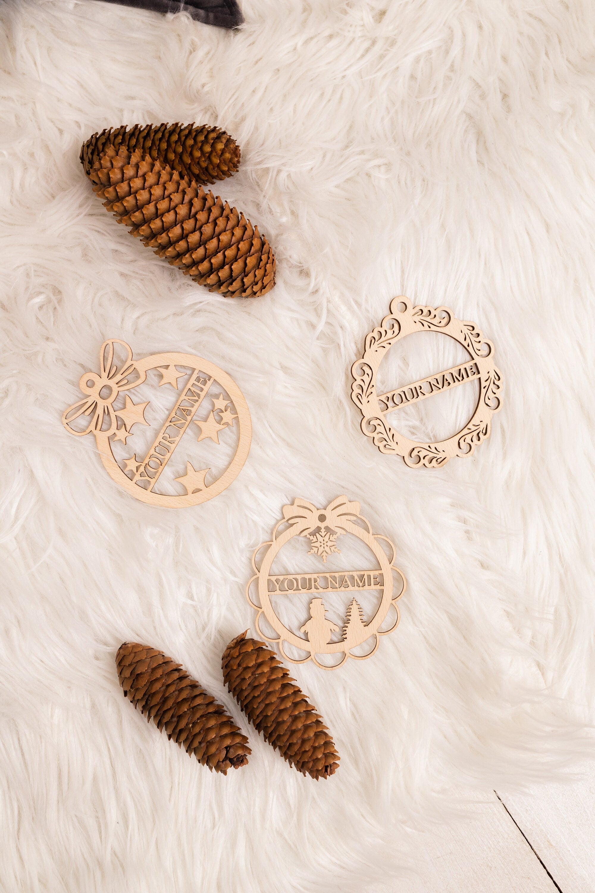 Christmas tree custom name ornaments 3 bundle laser cut svg file