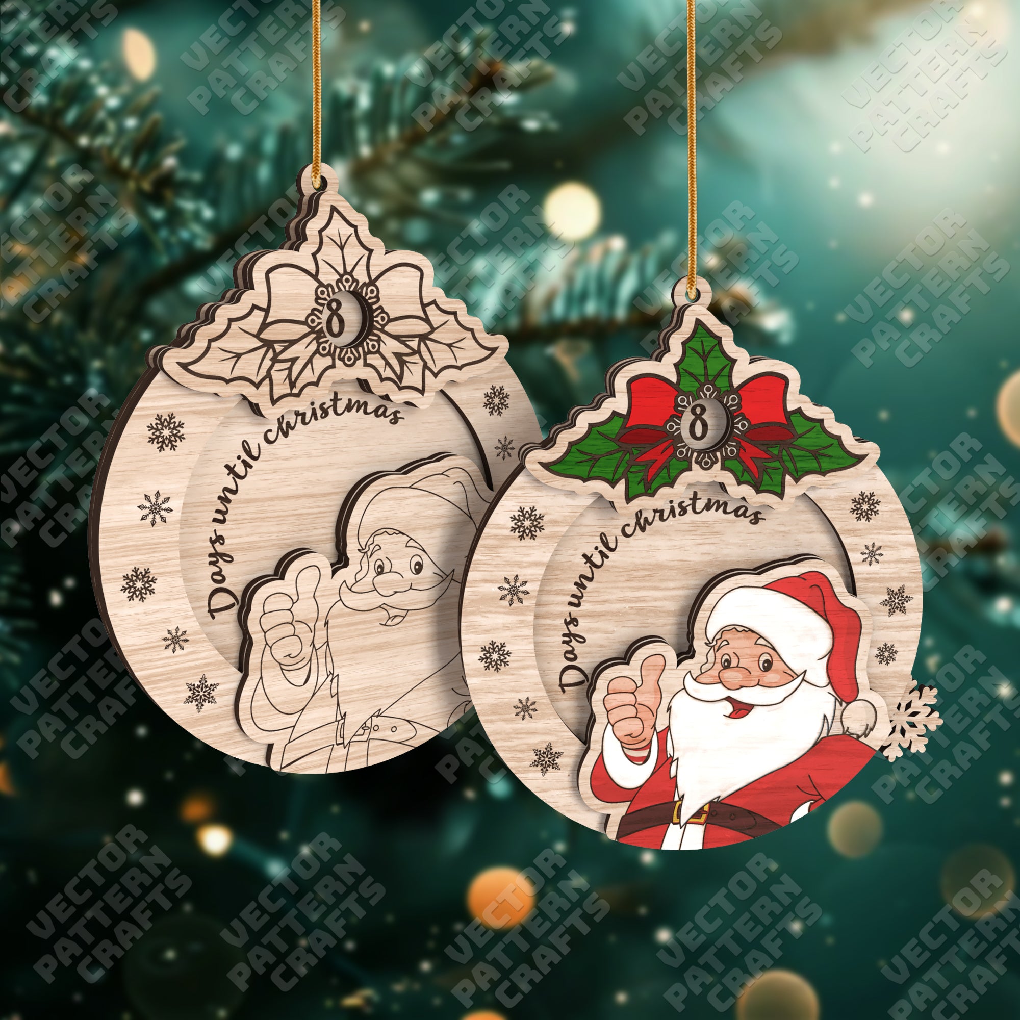 Laser cut Santa Christmas Countdown Calendar ornament svg file