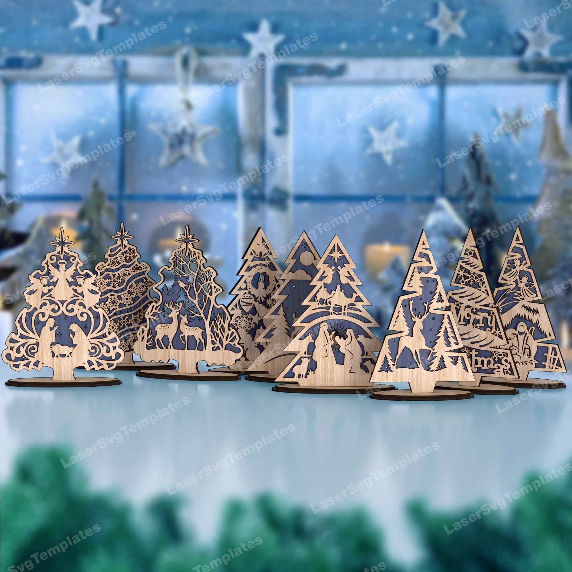 — Laser cut Standing Christmas tree ornaments 9 bundle svg file