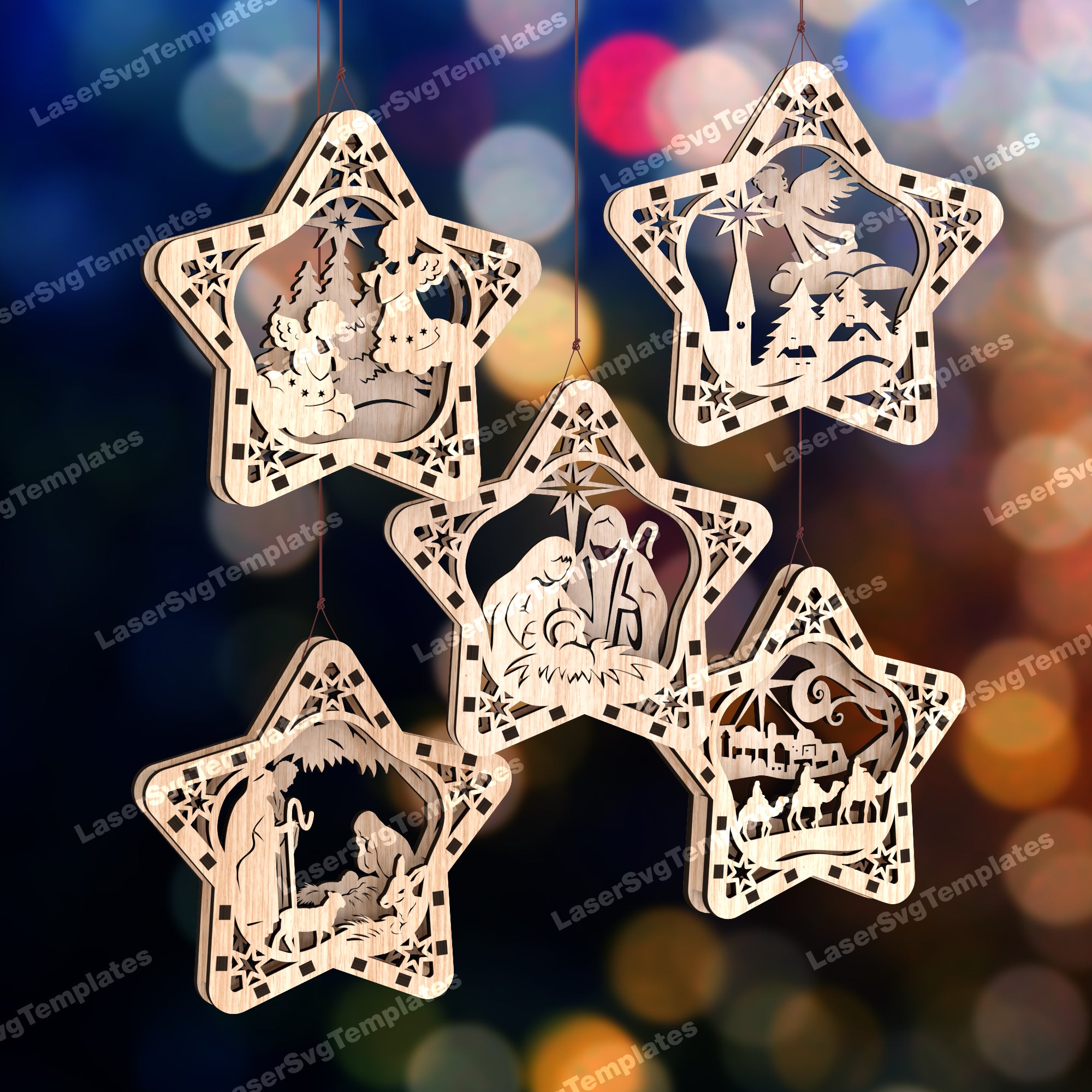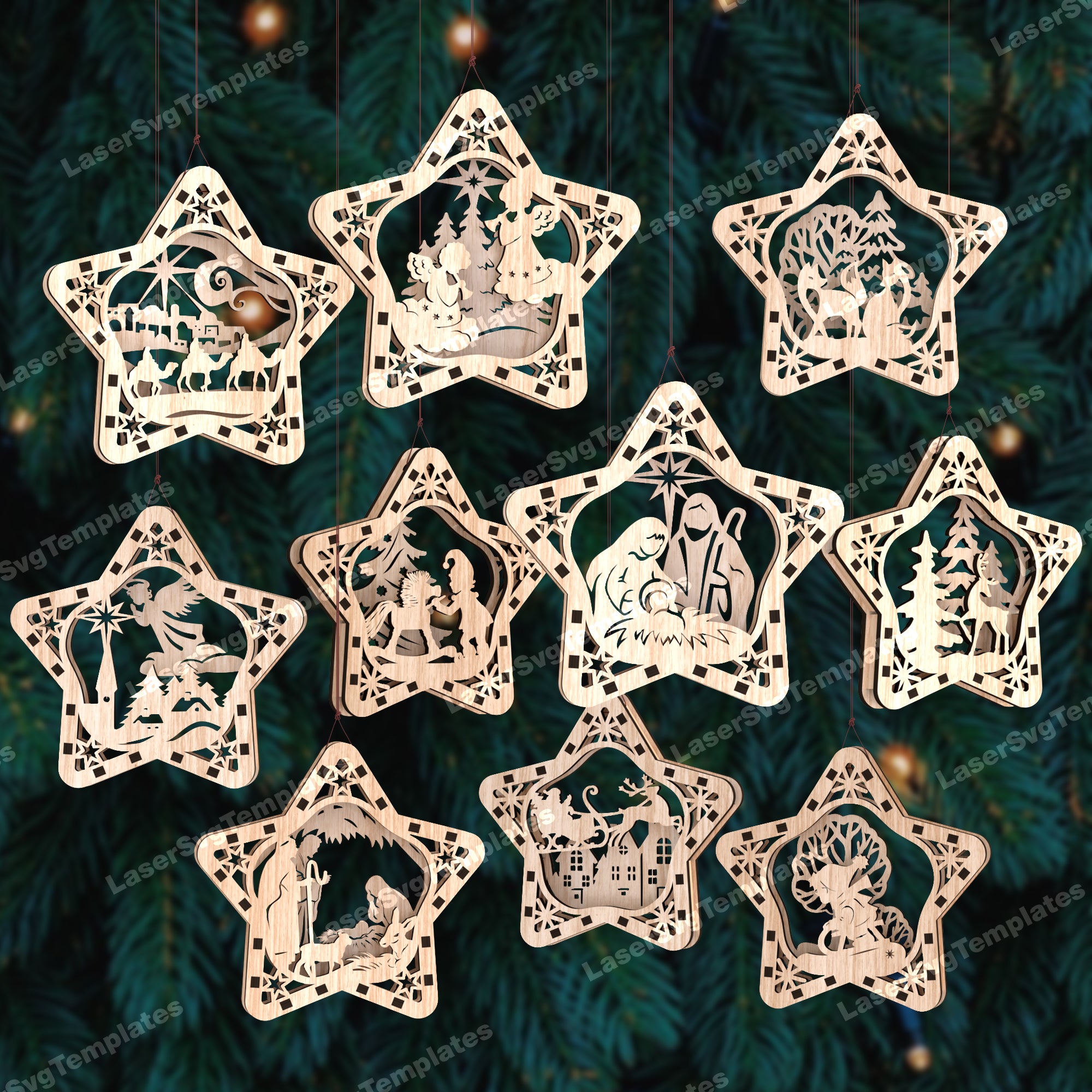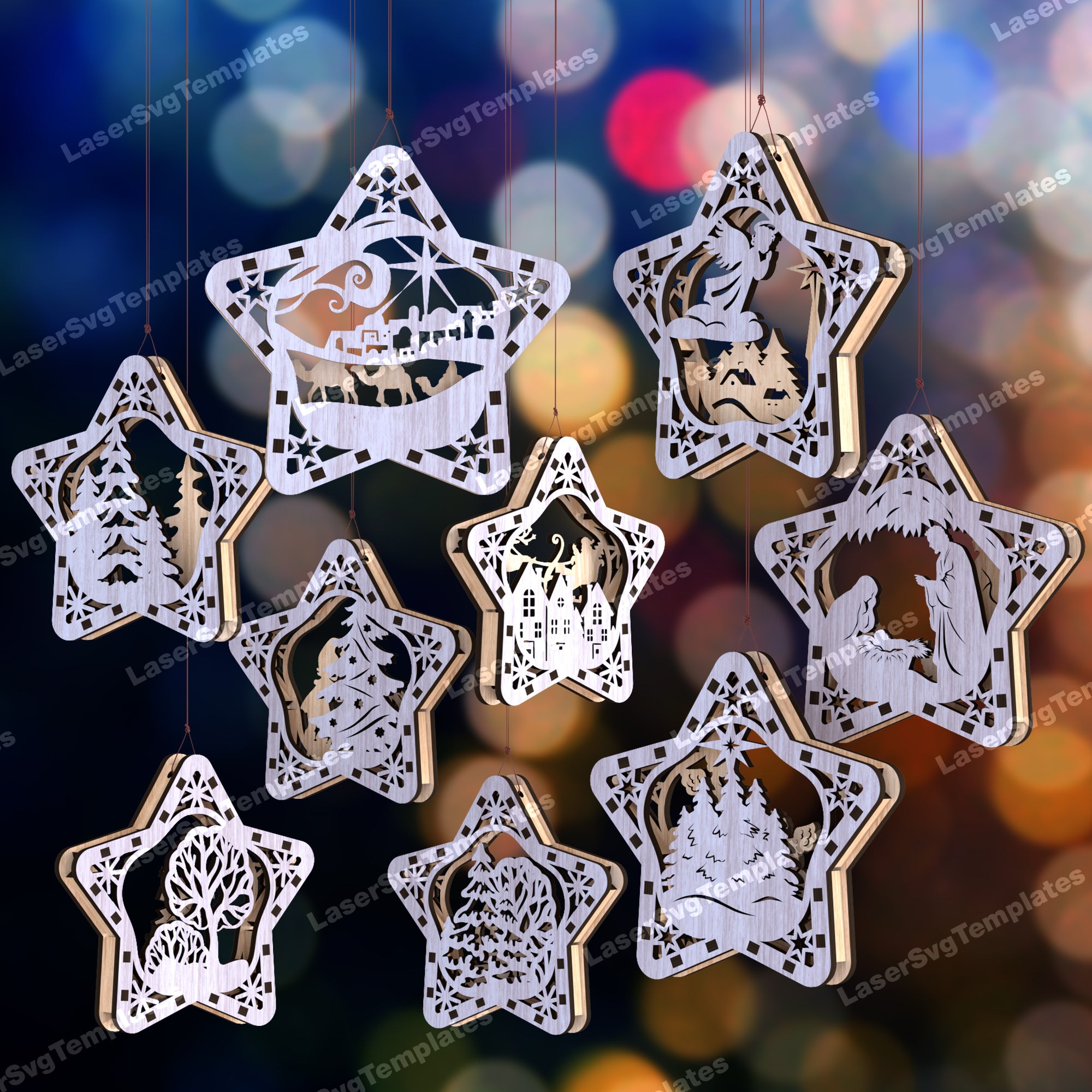 Christmas Star ornaments 10 bundle svg laser cut file