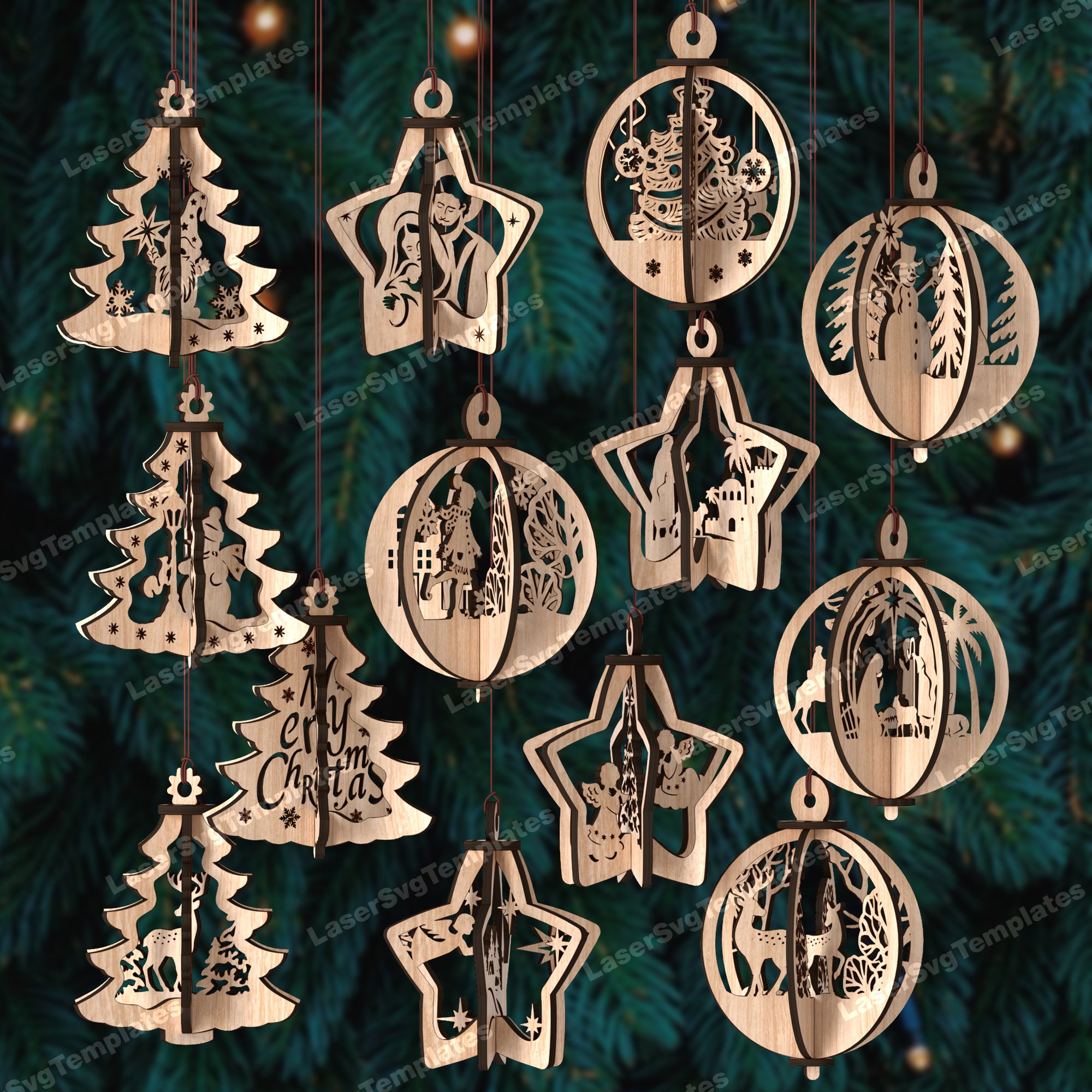 3D Christmas tree ball ornaments 13 bundle laser cut svg file