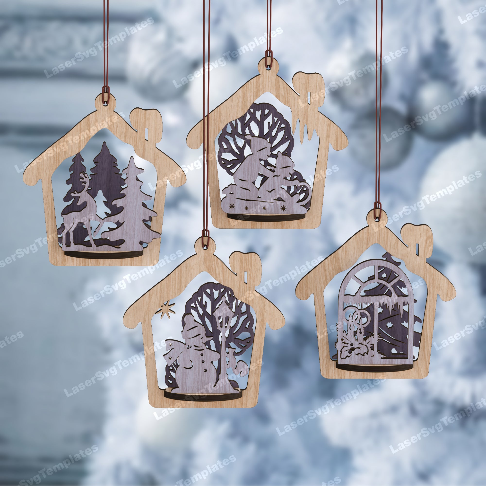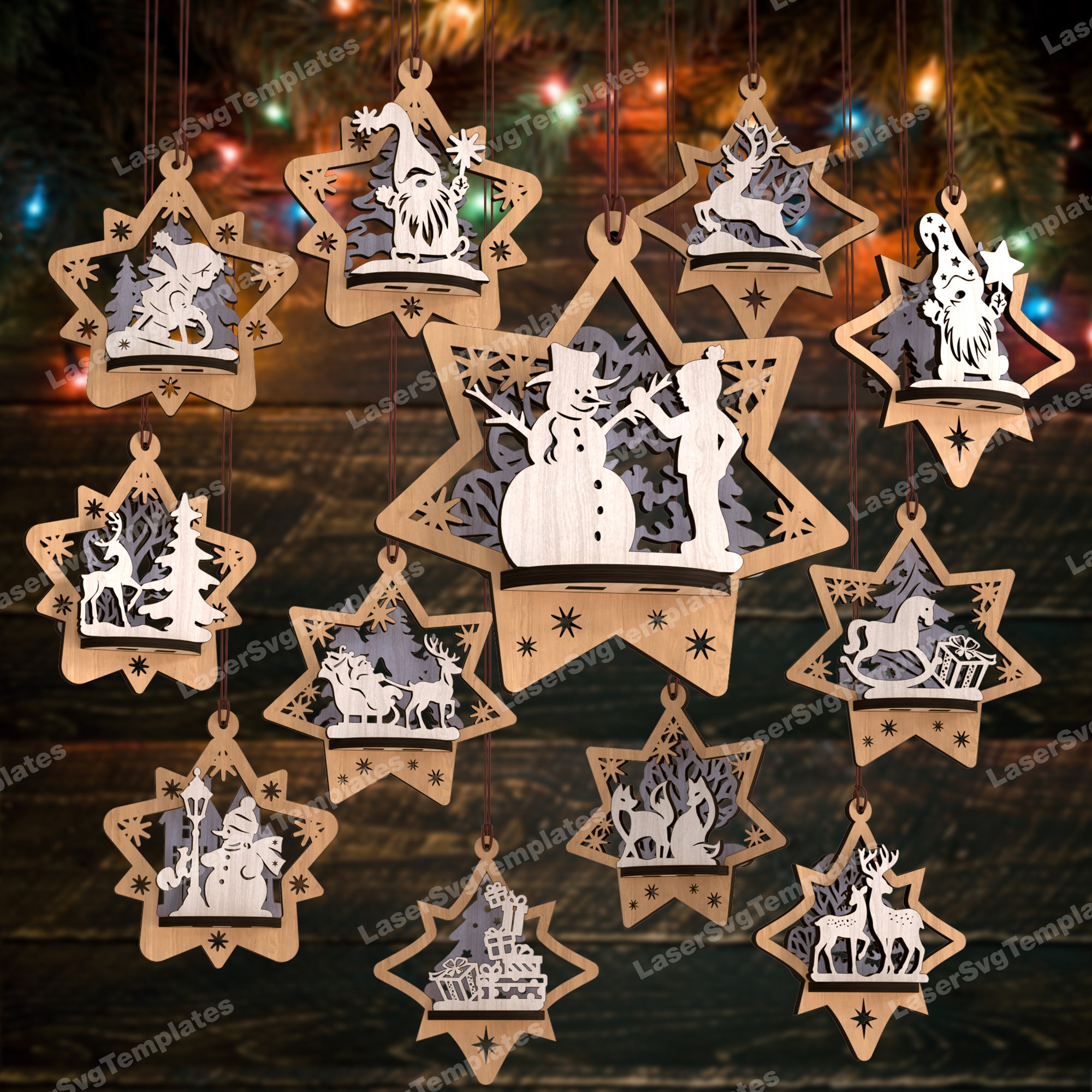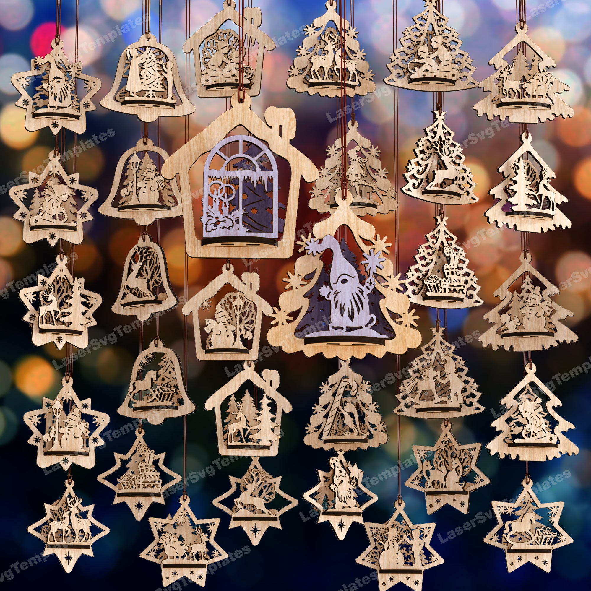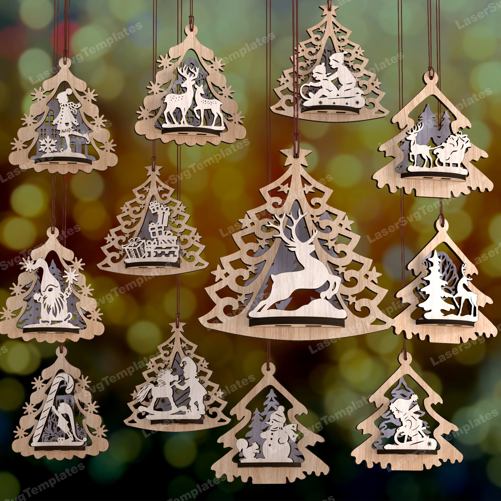 3D Christmas tree ornaments 32 bundle laser cut svg file
