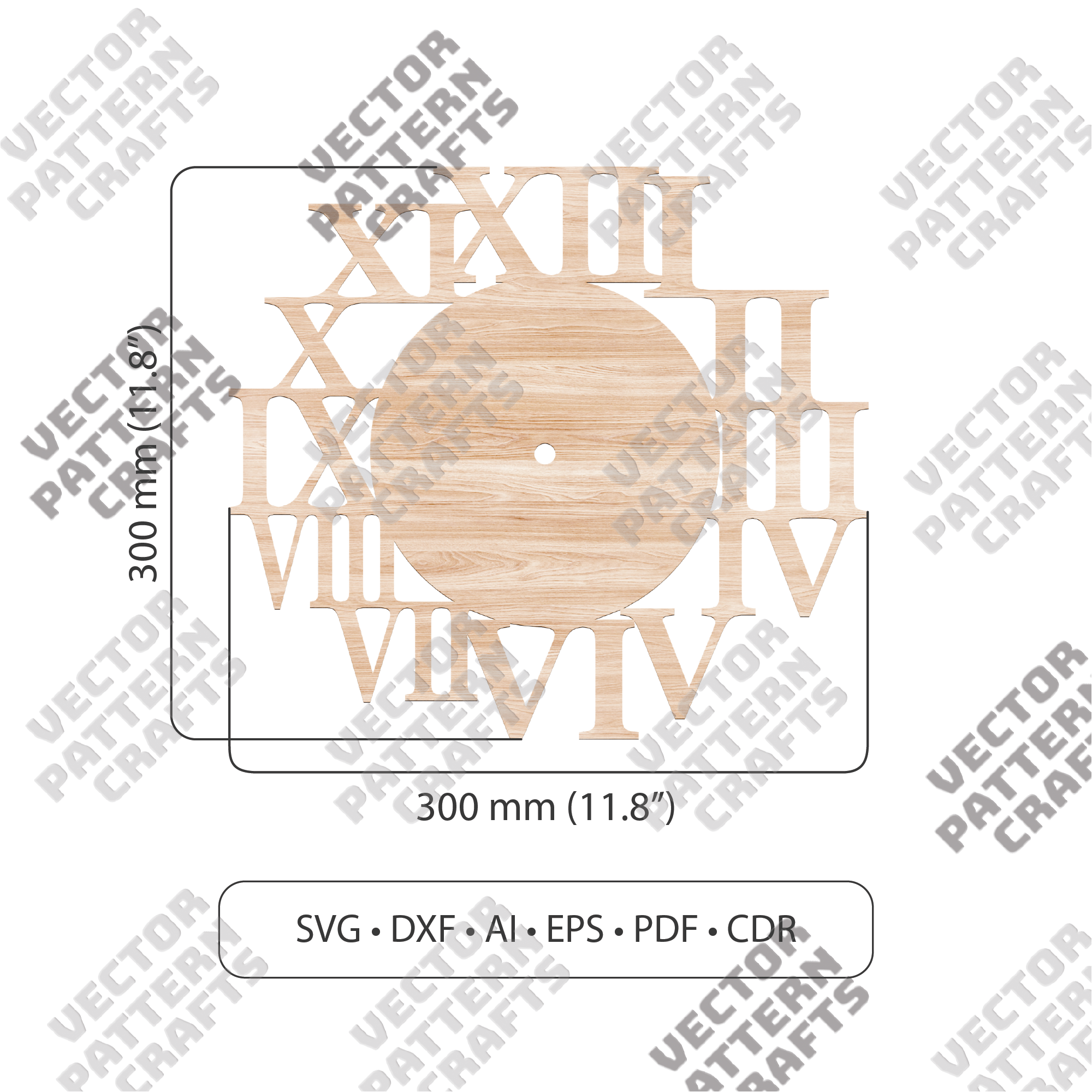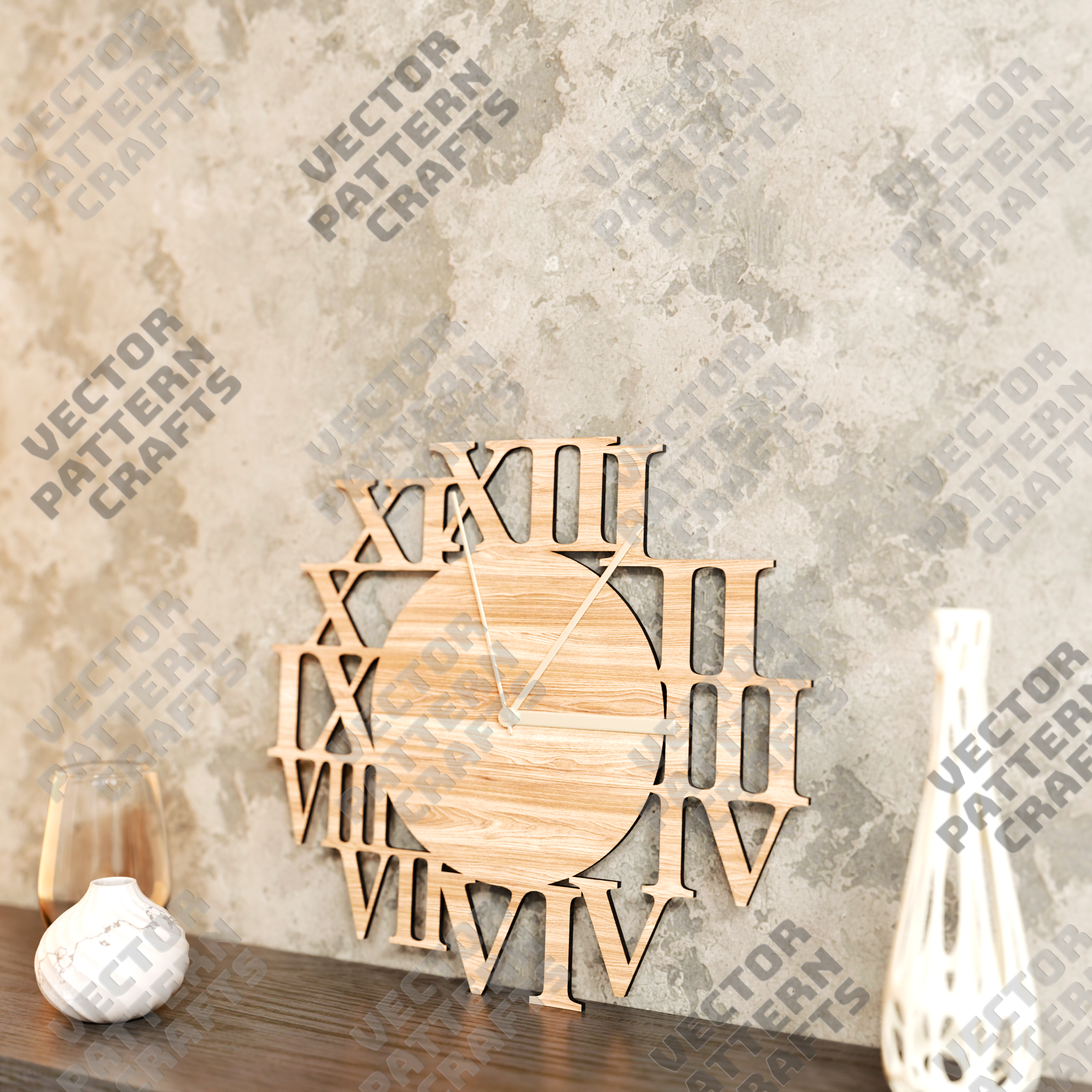 🔹 Laser cut wooden wall clock roman numbers file svg