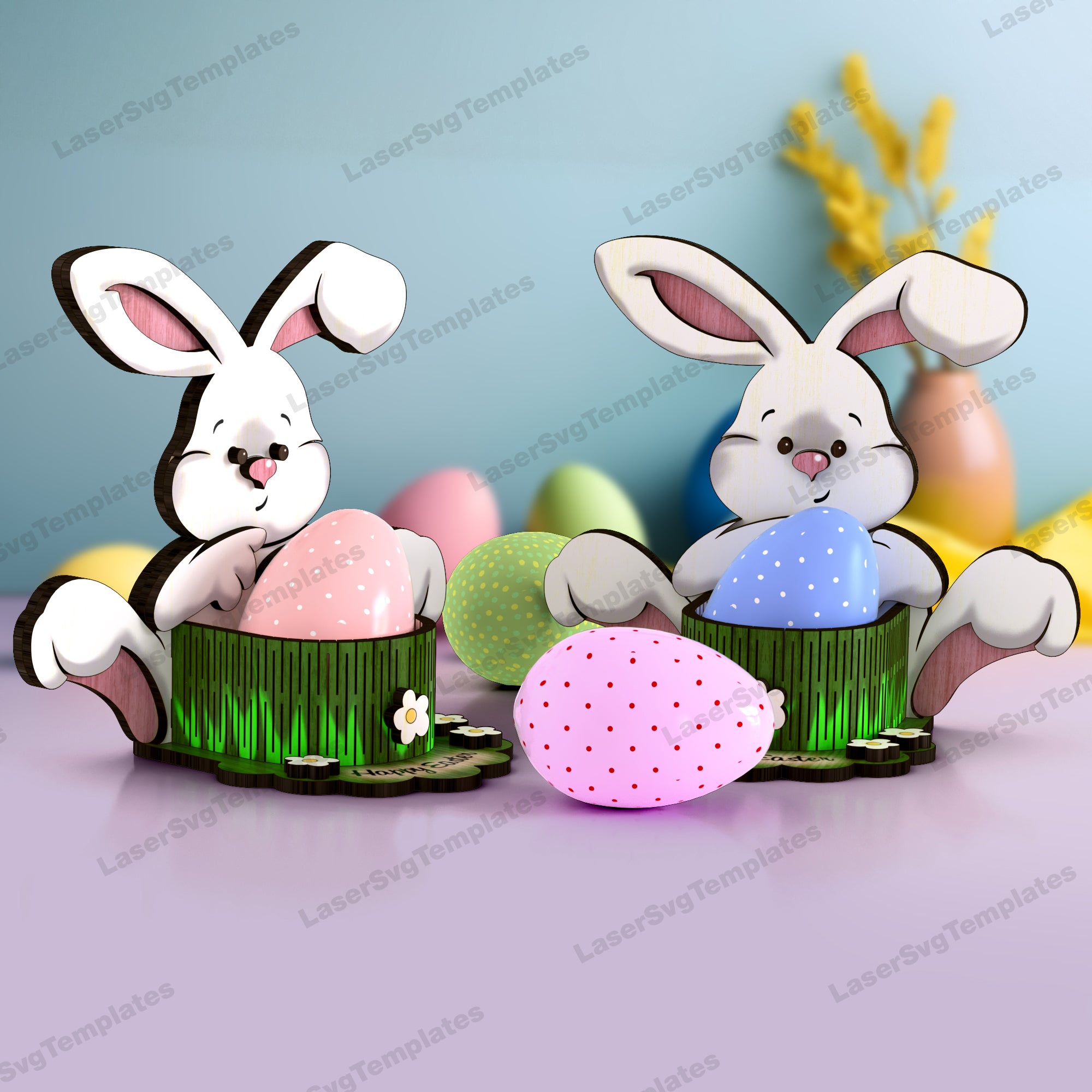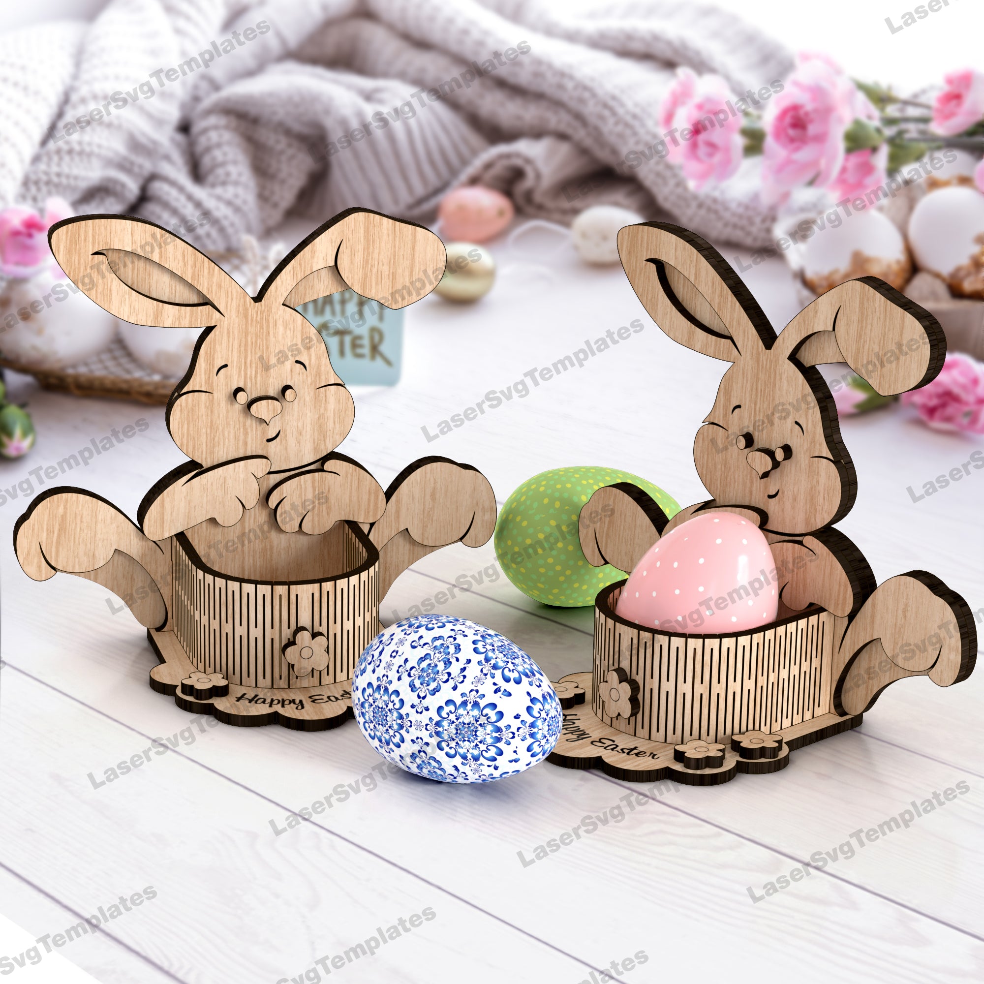 Laser cut Easter bunny egg holder svg file