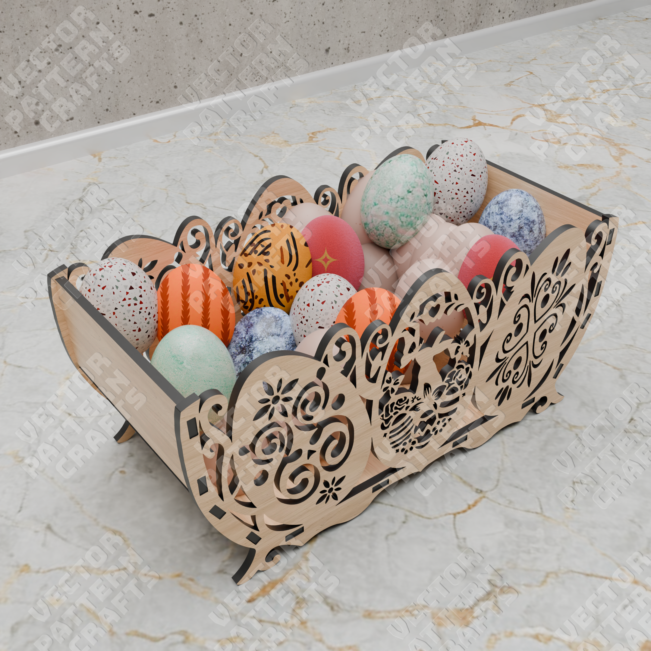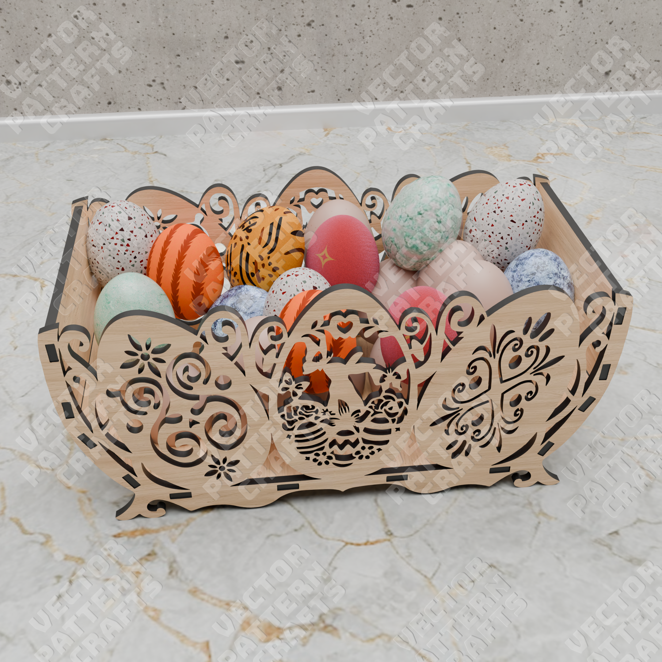 Decorative Easter egg basket laser cut svg file