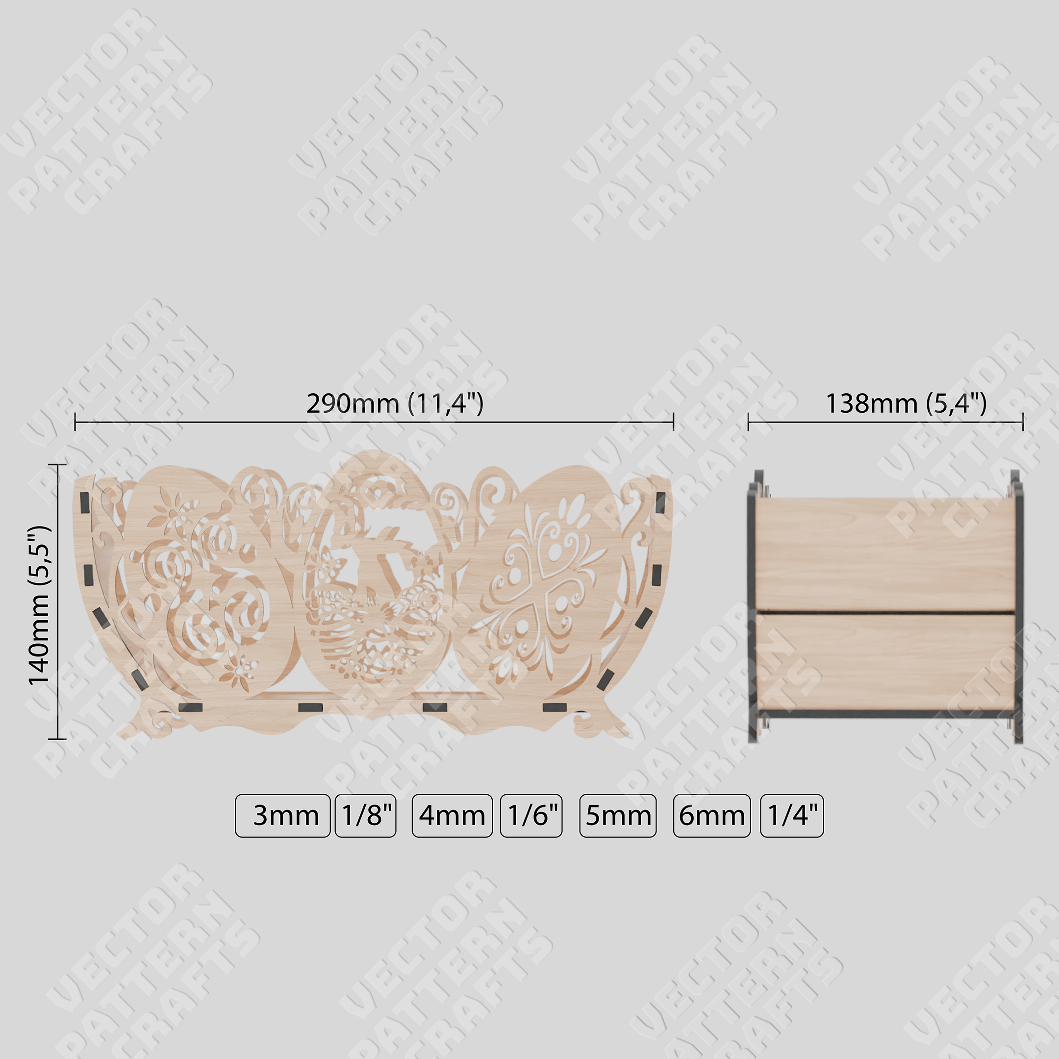 This file is specifically optimized for materials with thicknesses of 3 mm, 0.125 ", 4 mm, 0.166 ", 5 mm, 6 mm and 0.25 " offering great flexibility for various projects and preferences. ๐