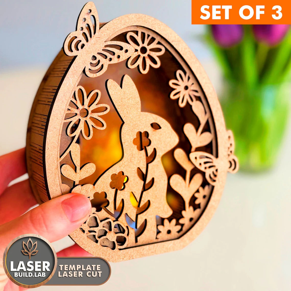 Easter Bunny Candle Holder set of 3 Laser Cut Svg File