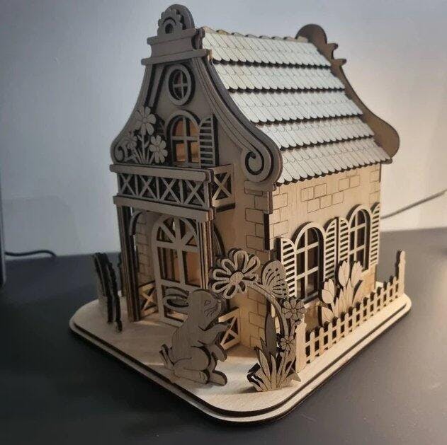 Easter bunny house candle holder laser cut svg file