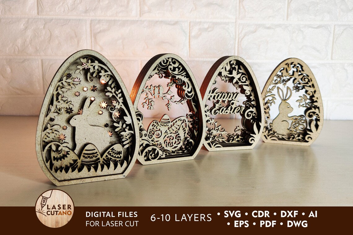 Easter Eggs multilayer set of 4 Laser Cut Svg File