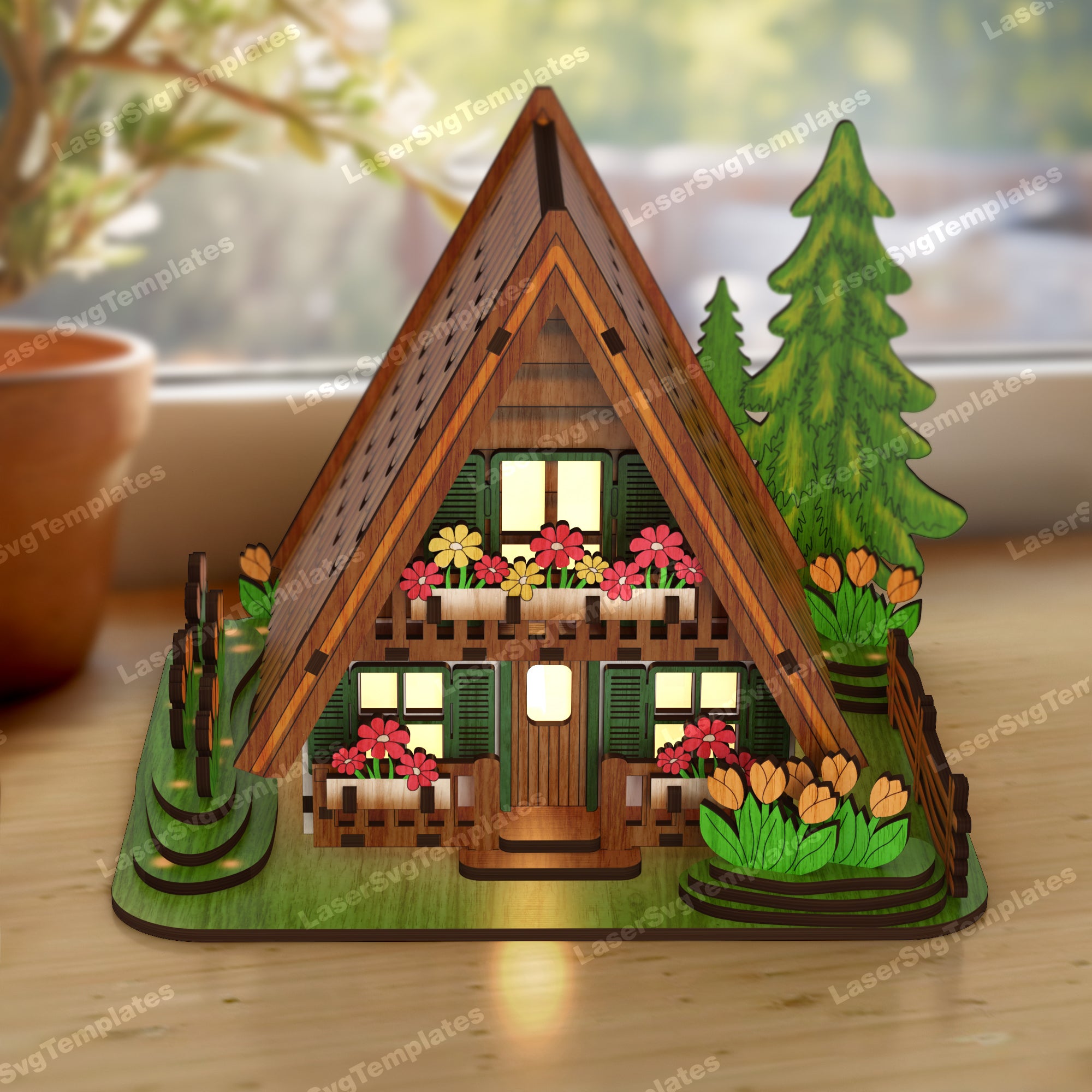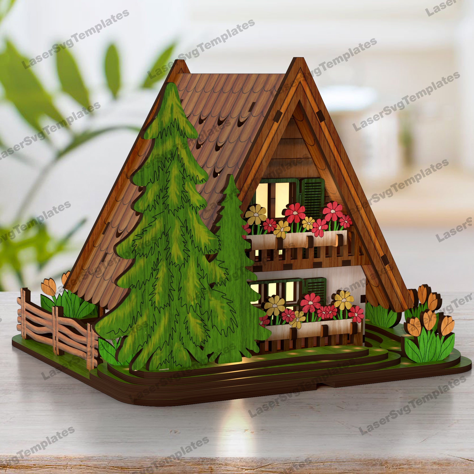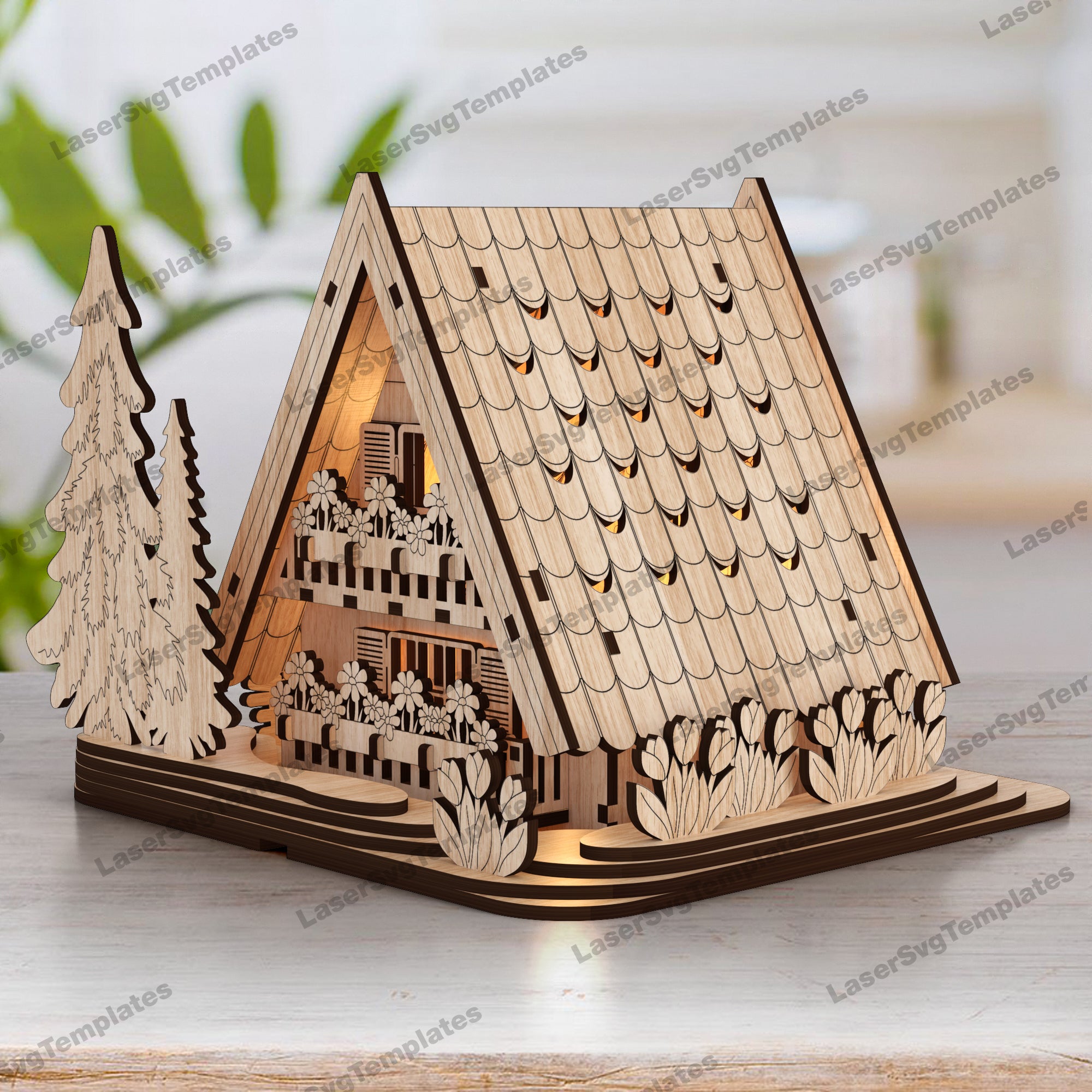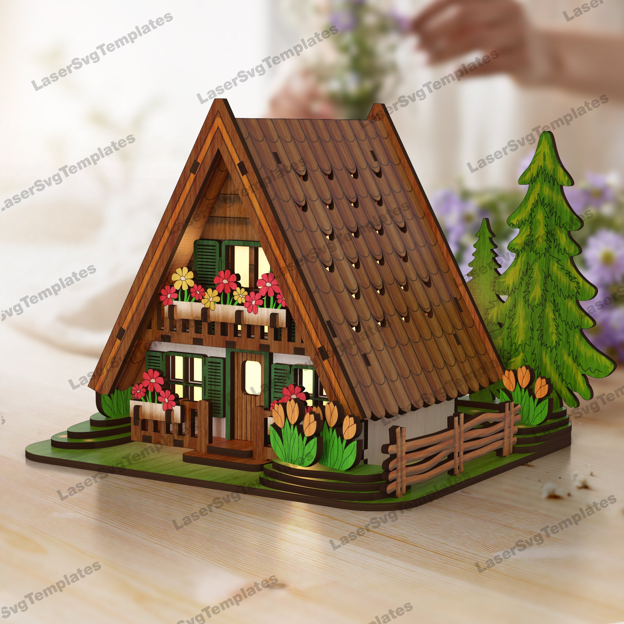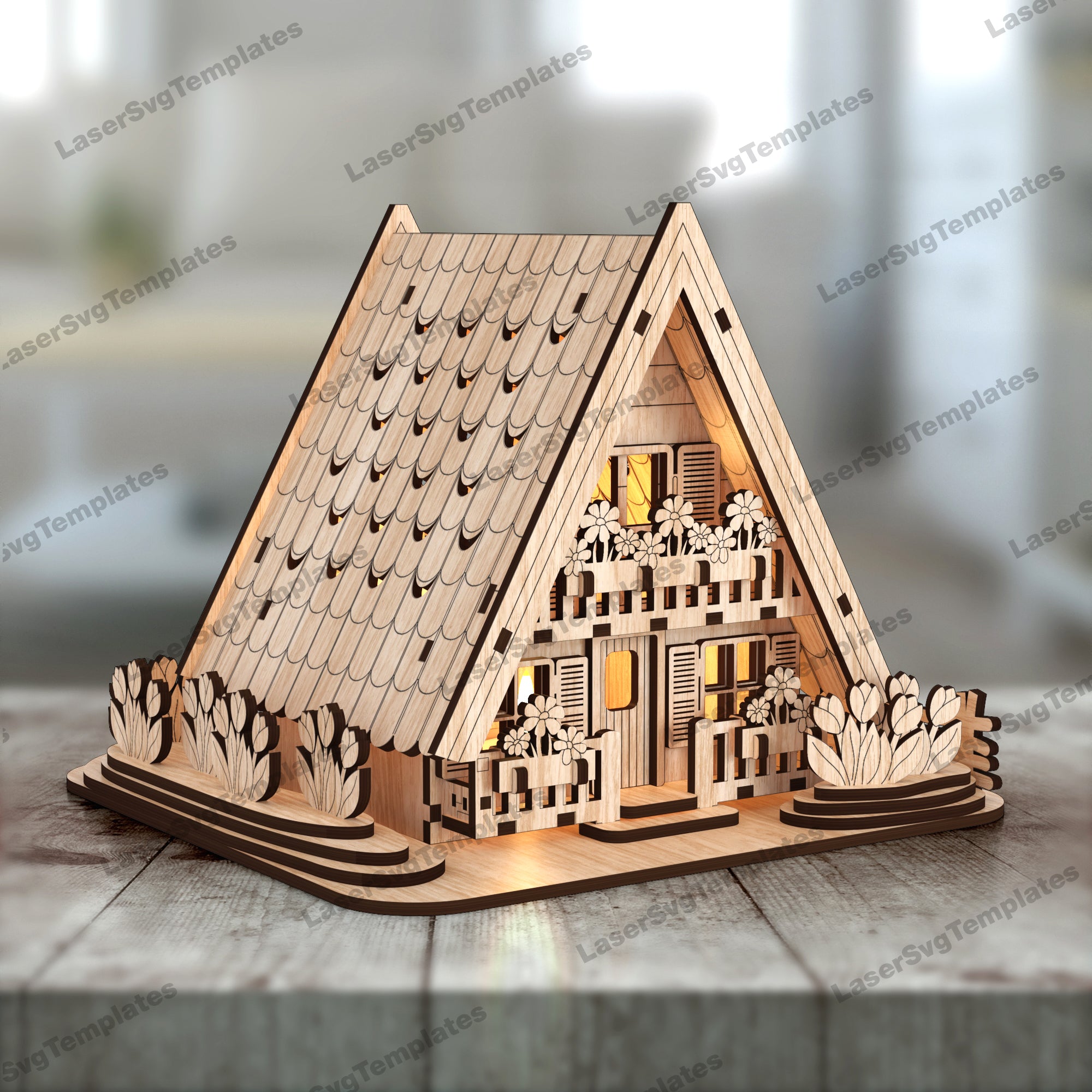 Easter floral house candle holder laser cut svg file