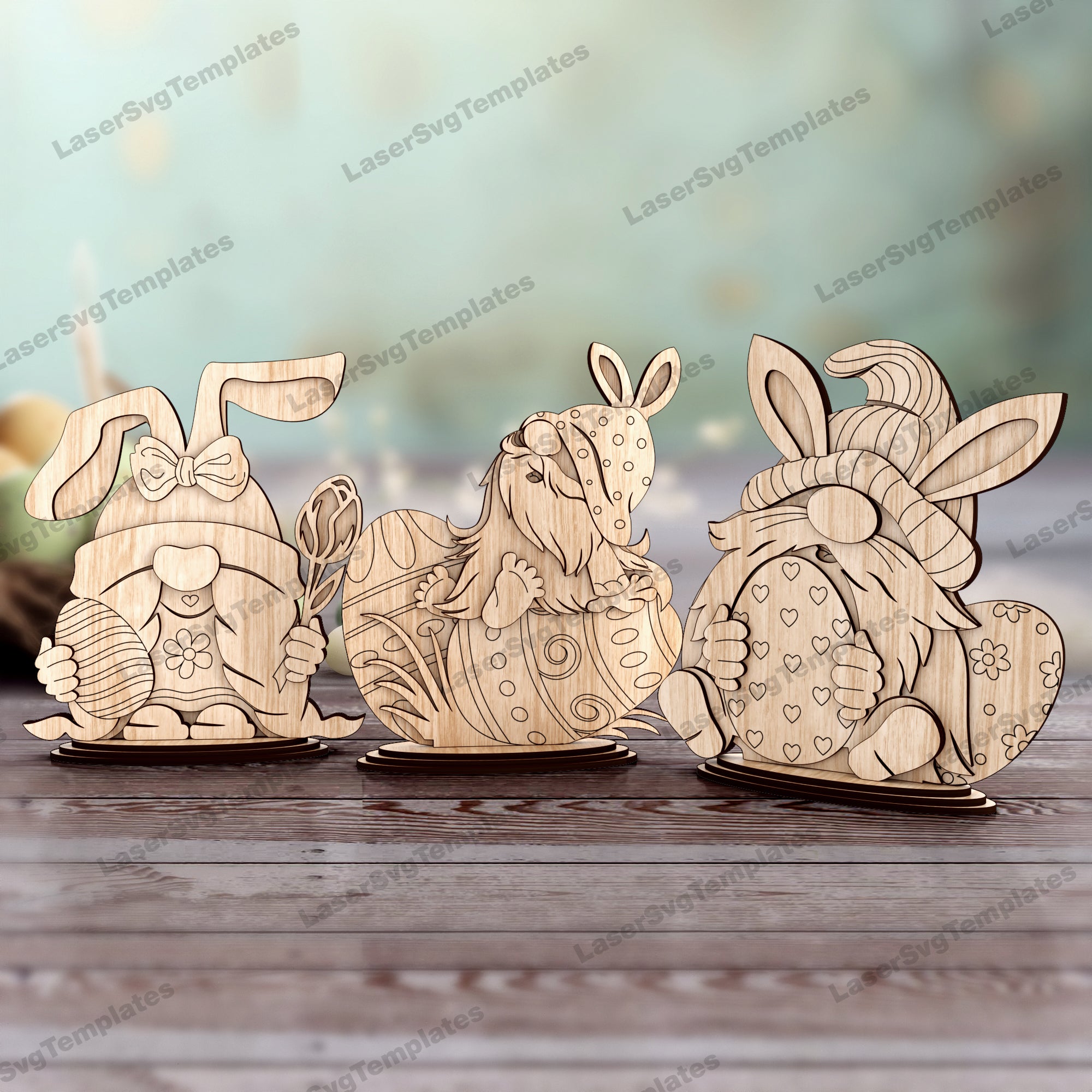 Easter standing Gnomes decoration 3 bundle laser cut svg file