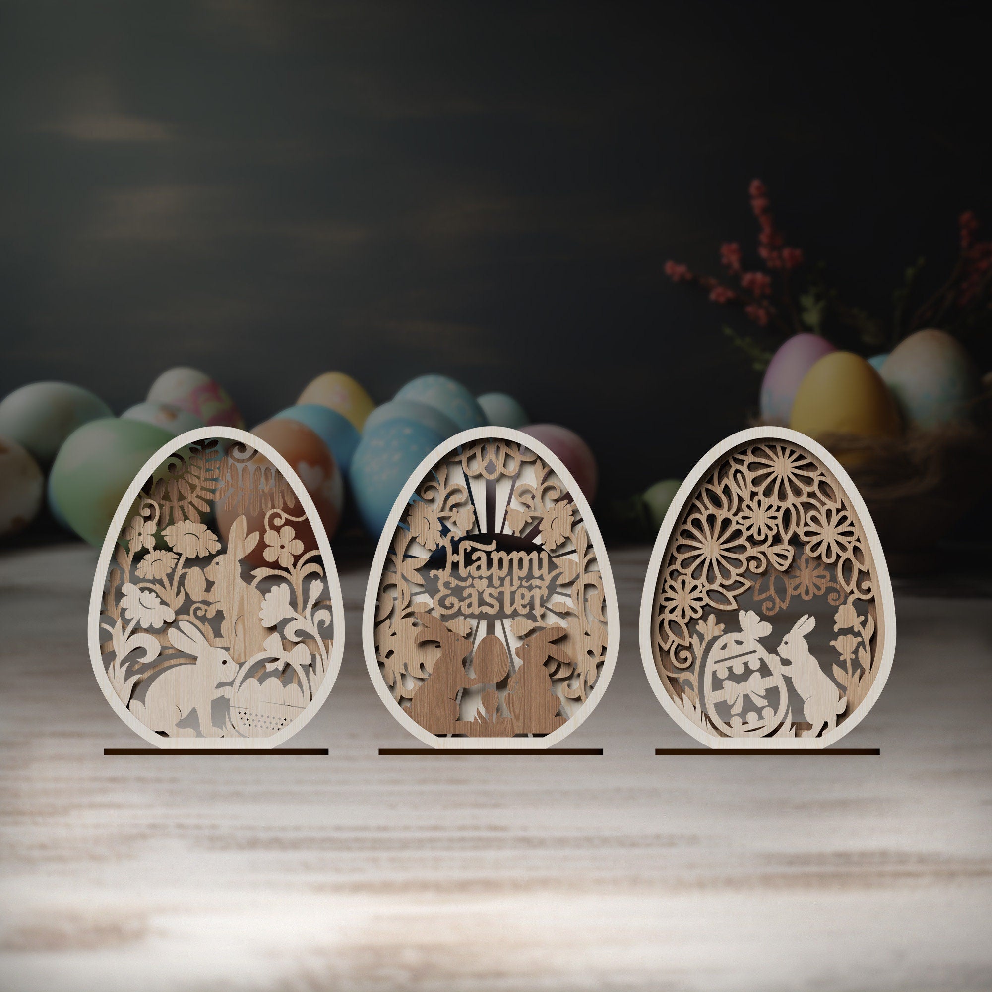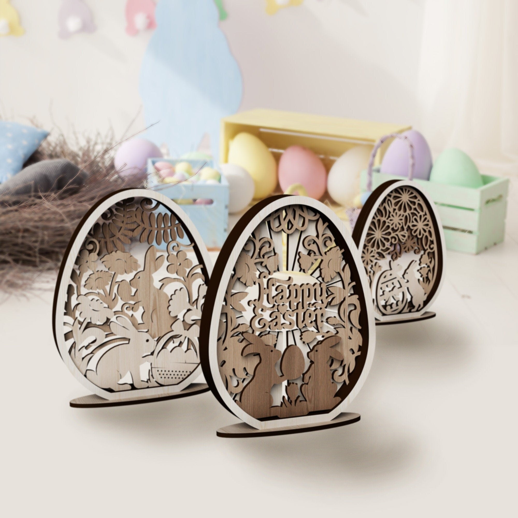 — Laser cut Multilayer Easter bunny egg table decor svg template