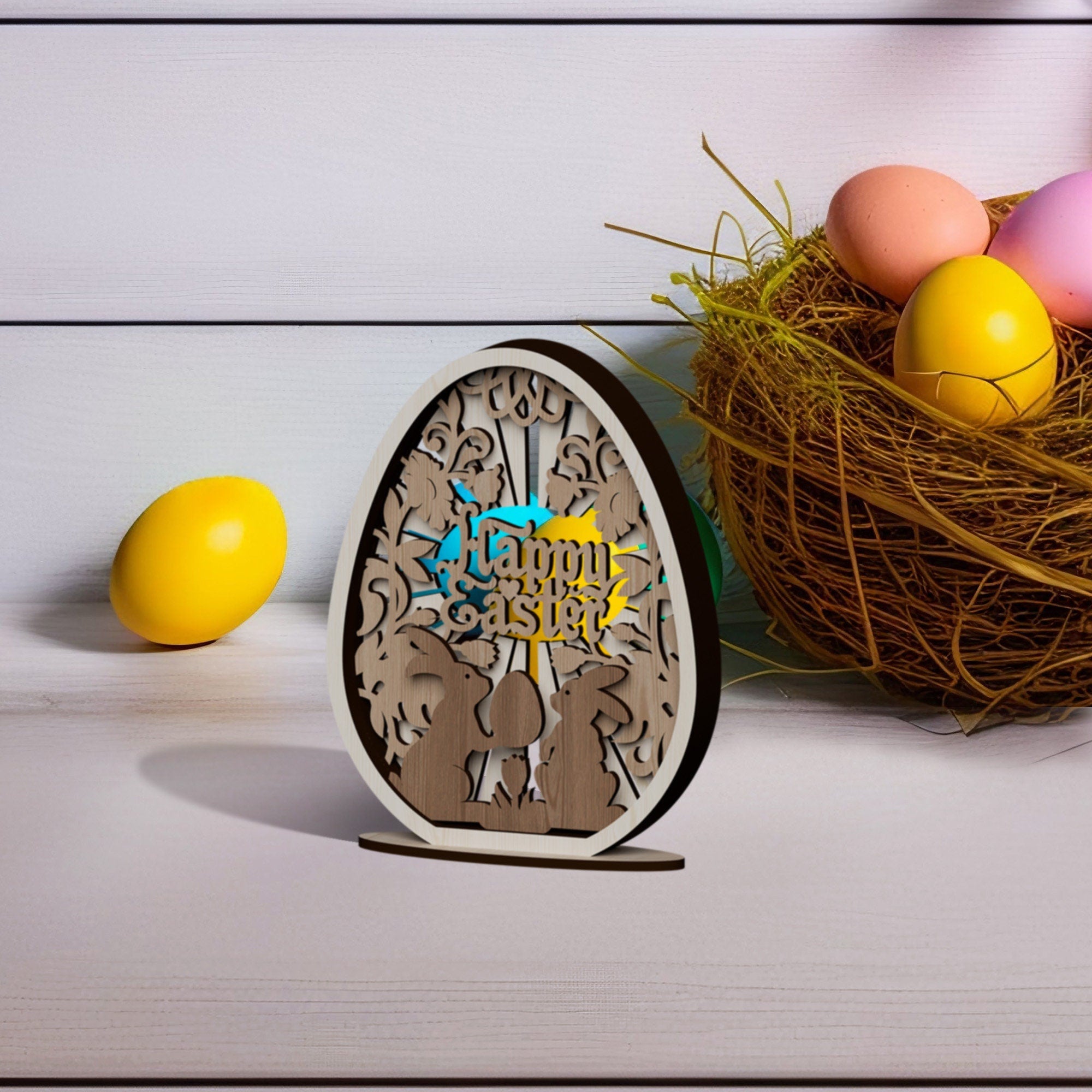 Multilayer Easter bunny egg table decor laser cut svg file