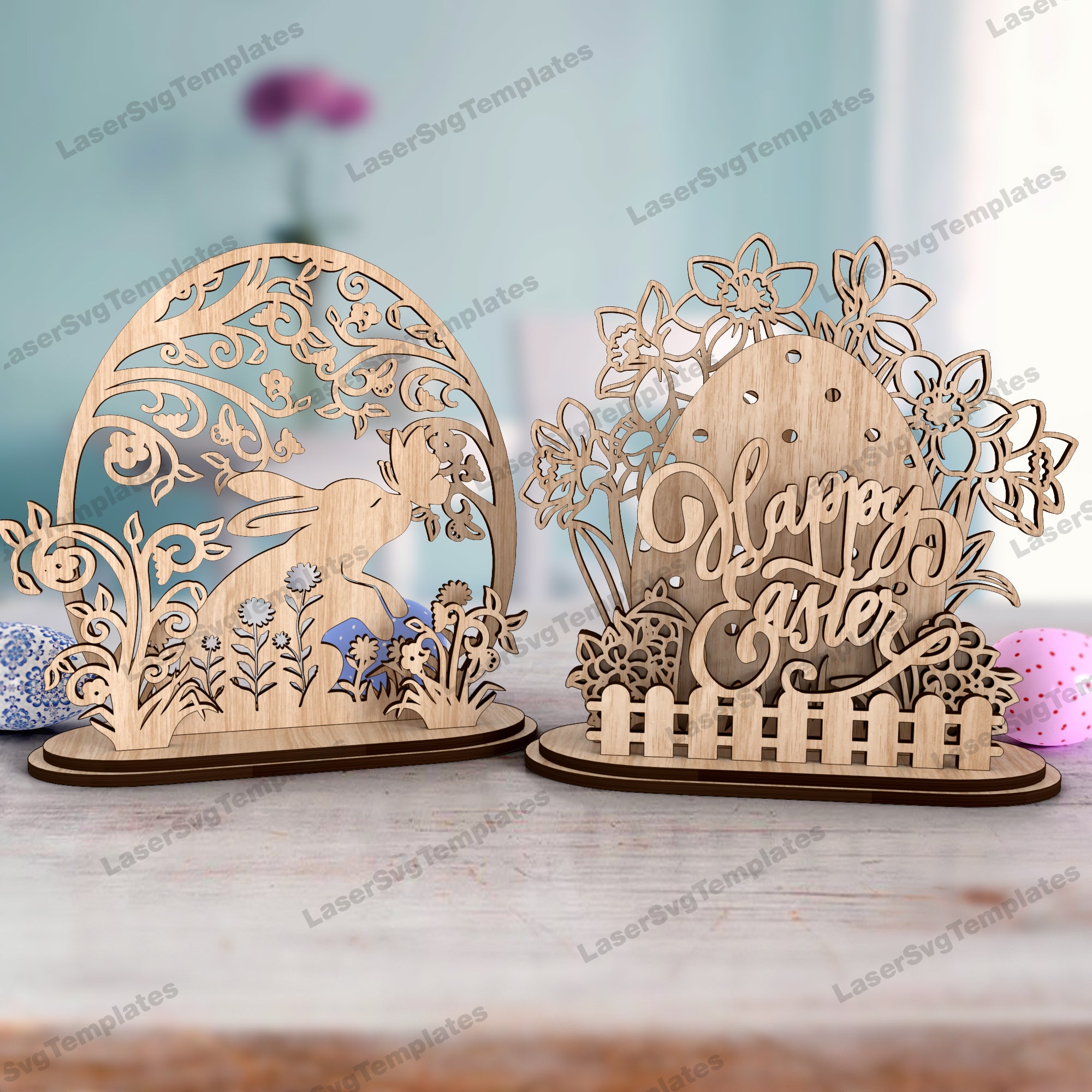 — Easter bunny standing decor 2 bundle laser cut svg file