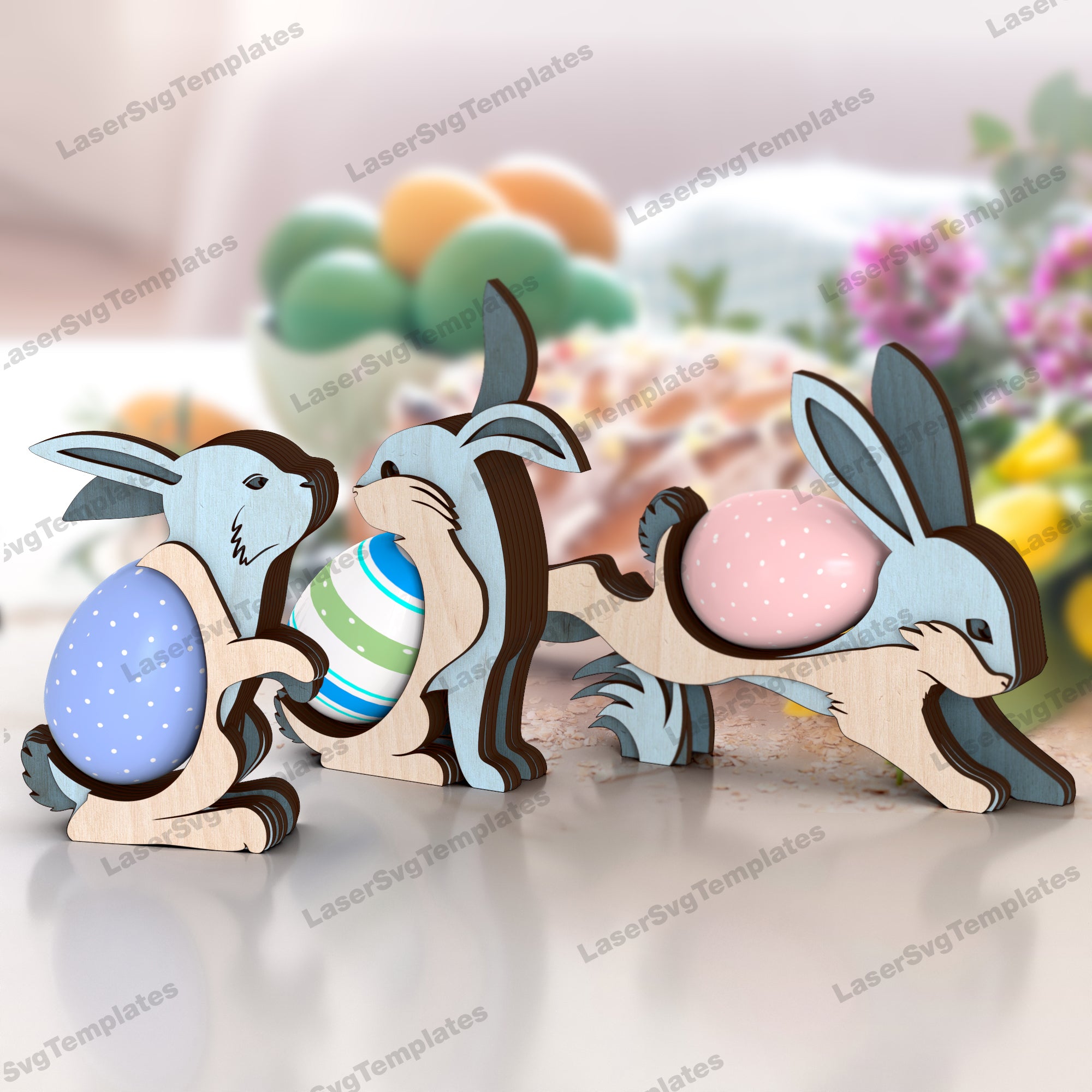 — Multilayer Easter bunny egg holders laser cut bundle svg file