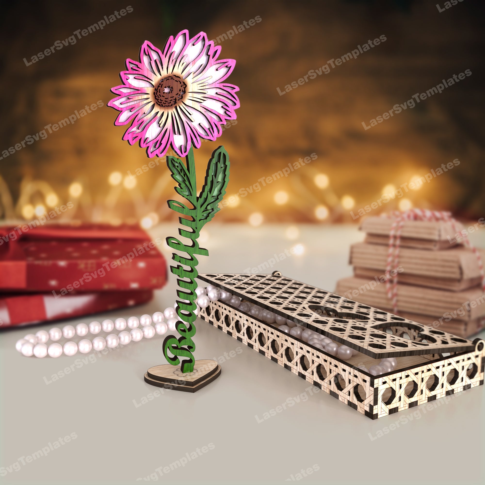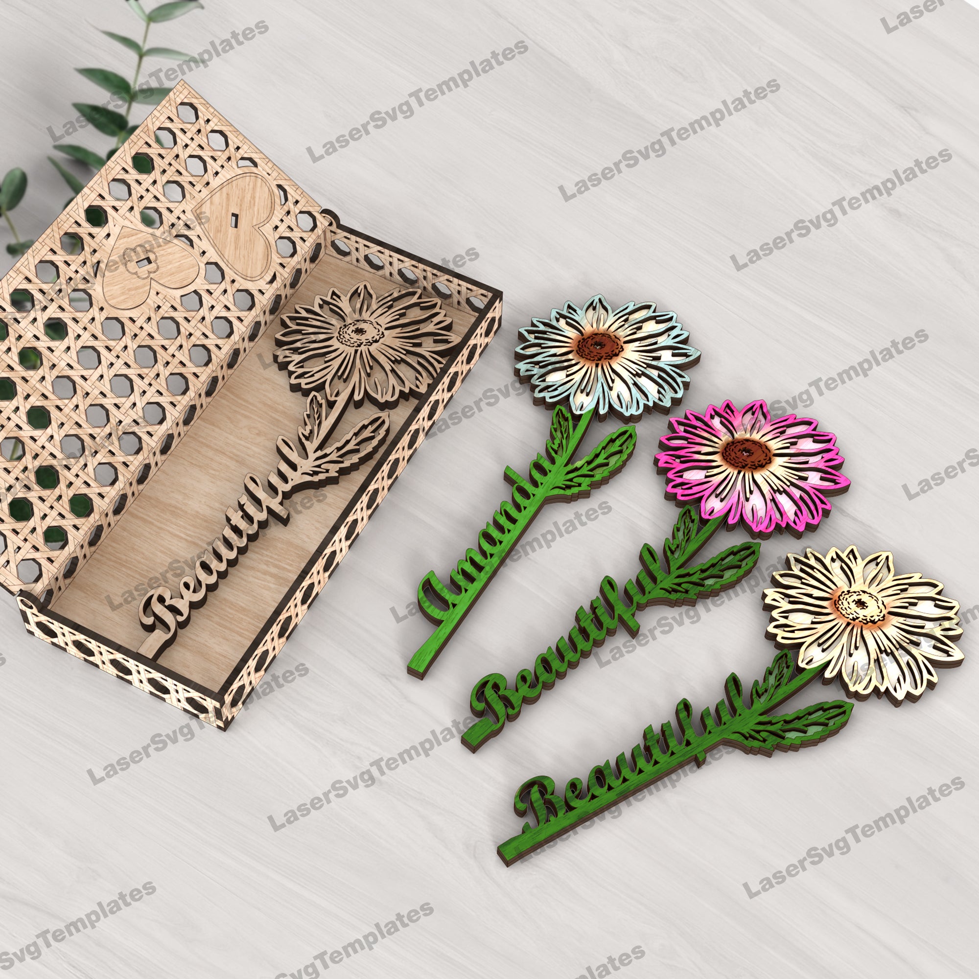 — Laser cut stand flowers with box svg cutting file