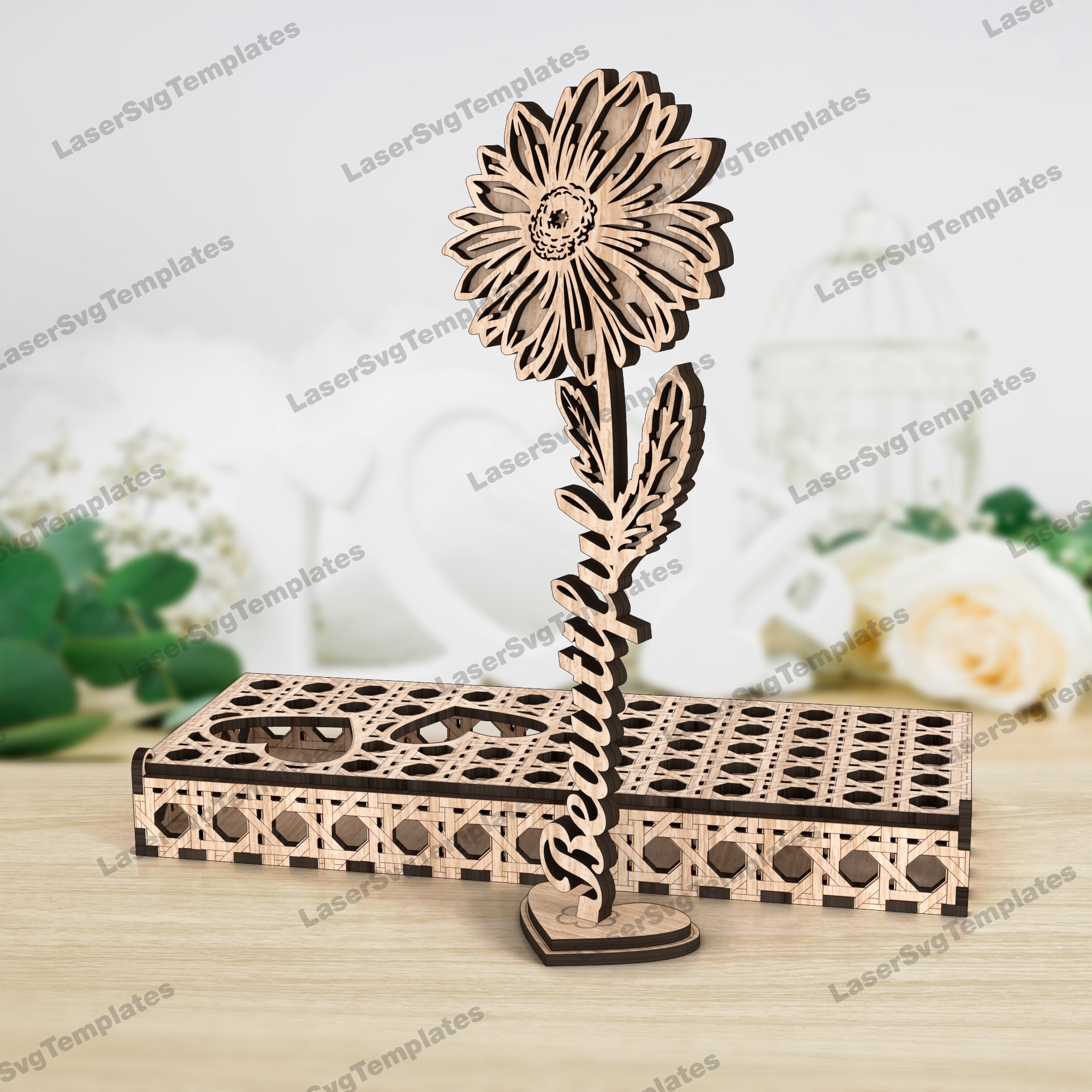 Laser cut stand flowers with box svg cutting file