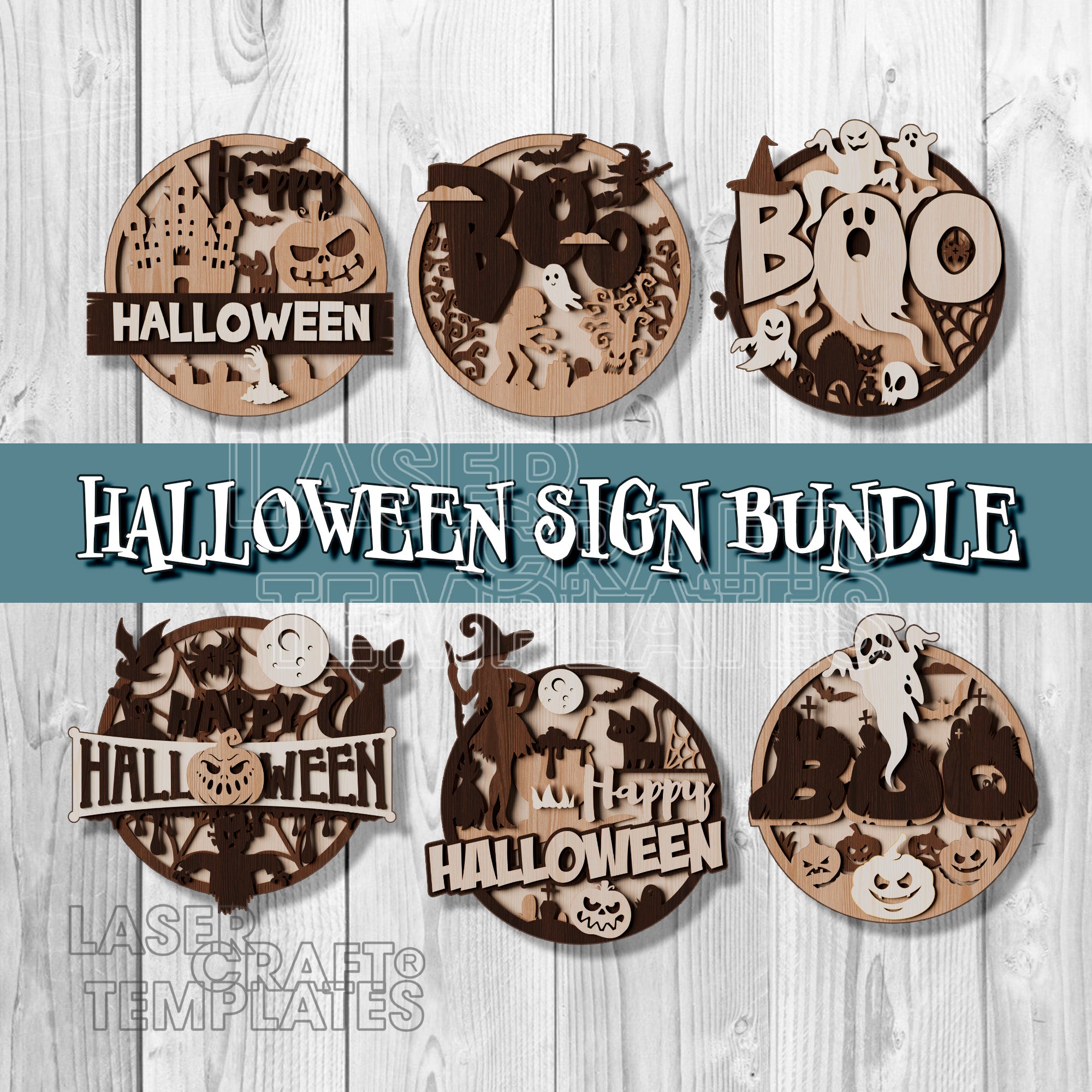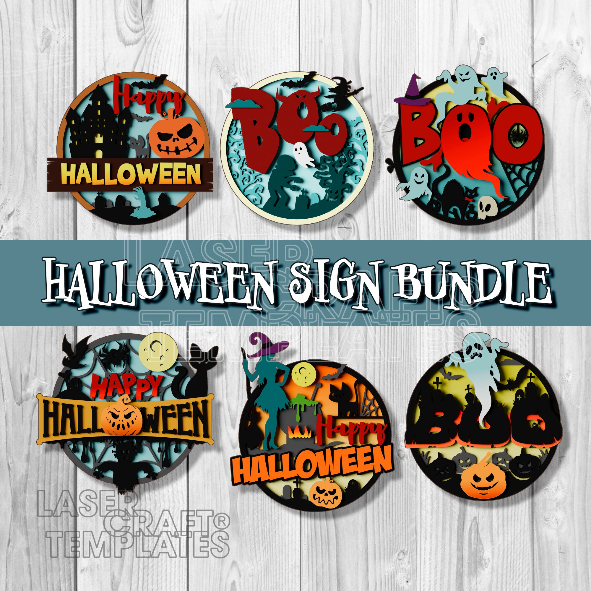 Halloween Boo Round Door Hanger 6 Bundle laser cut svg file