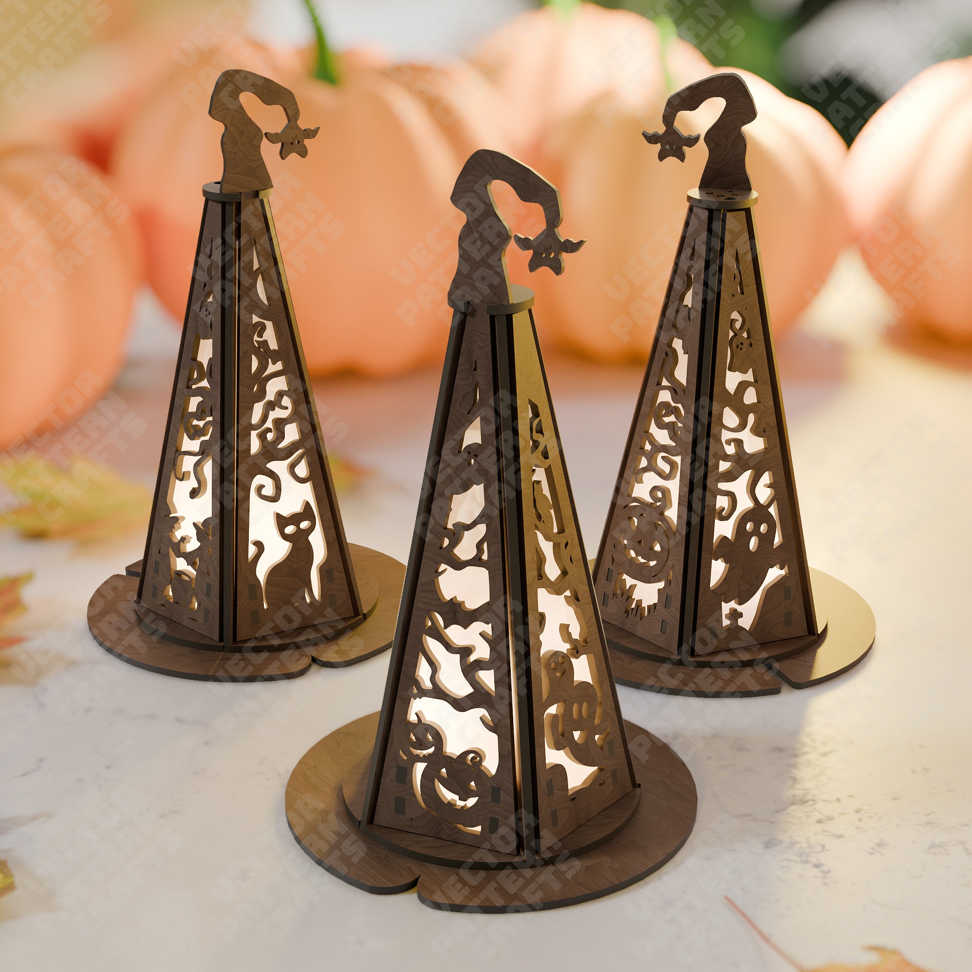 Halloween hats lamps 3 bundle laser cut svg file