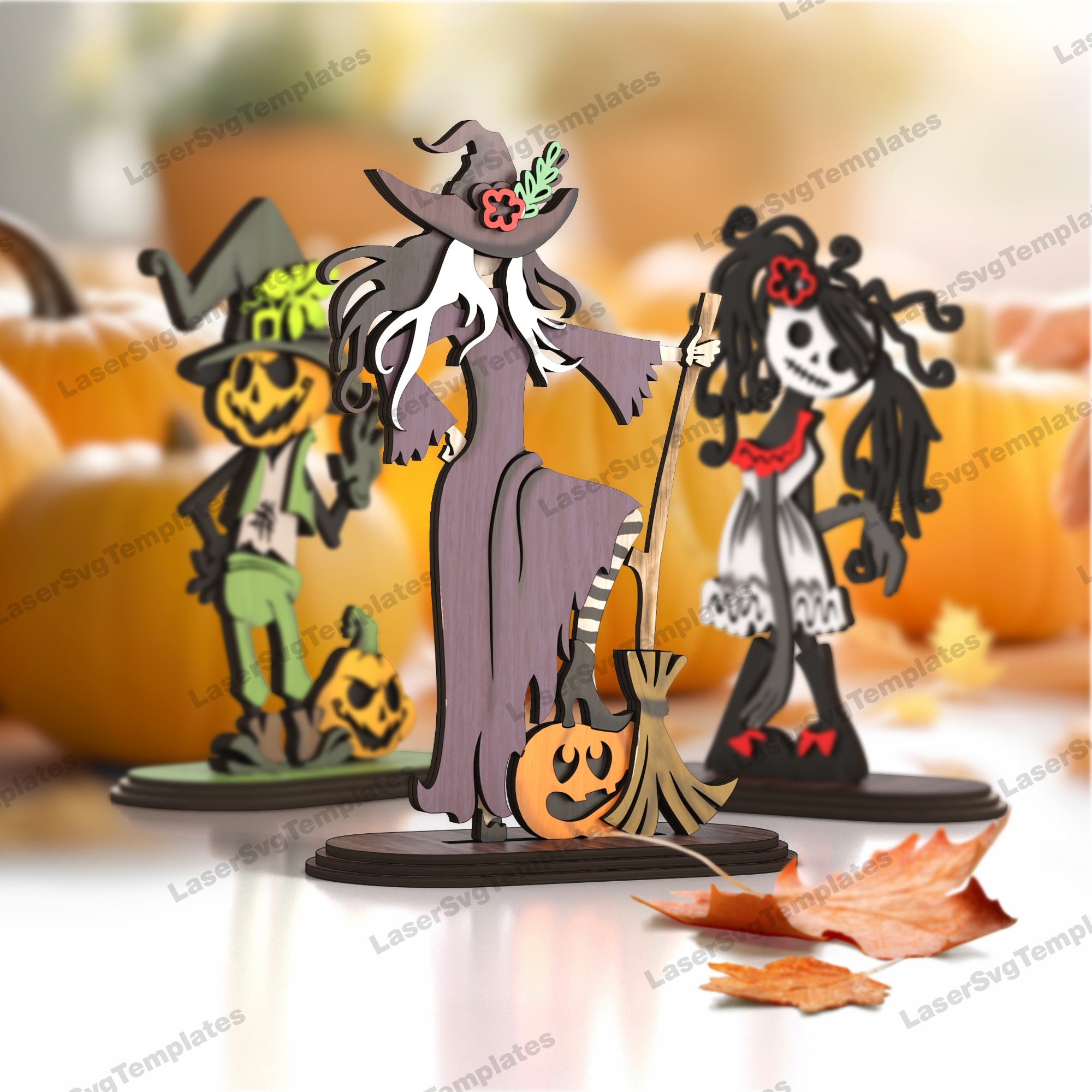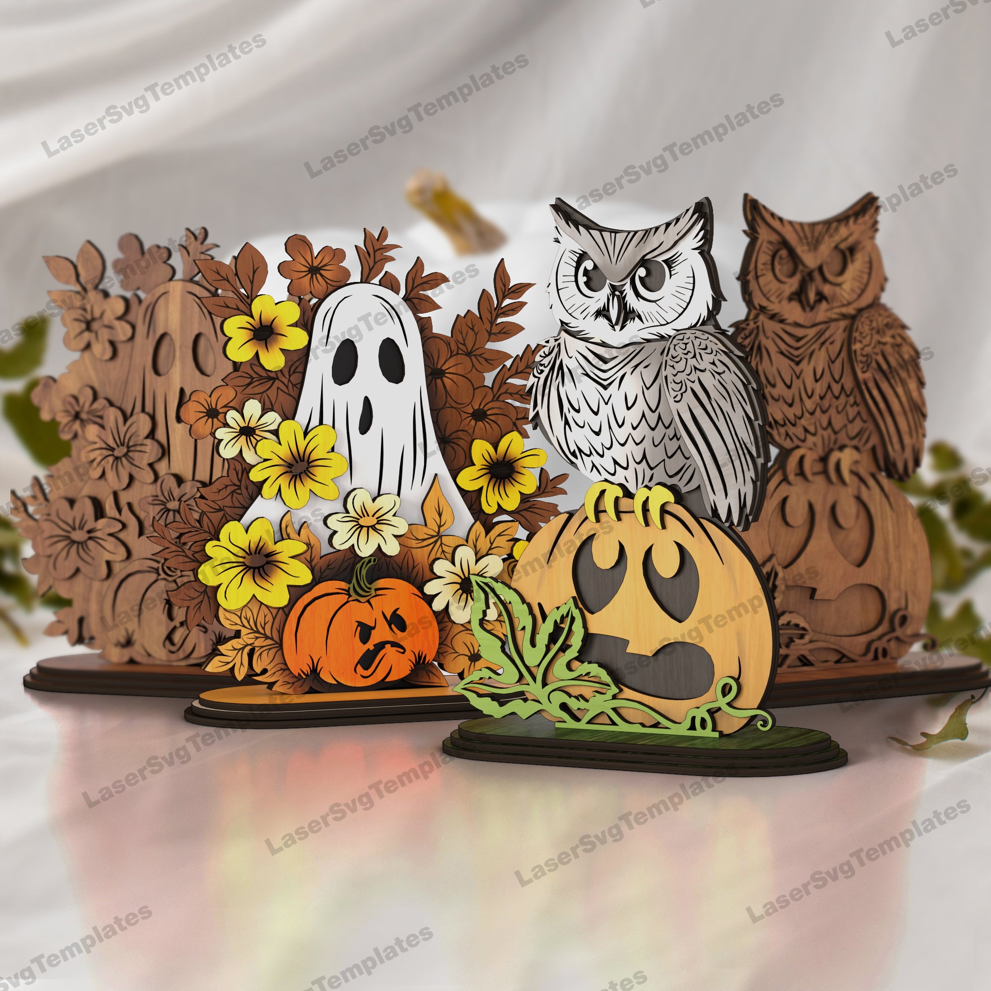 Halloween standing ghost pumpkin witch table decoration laser cut svg file